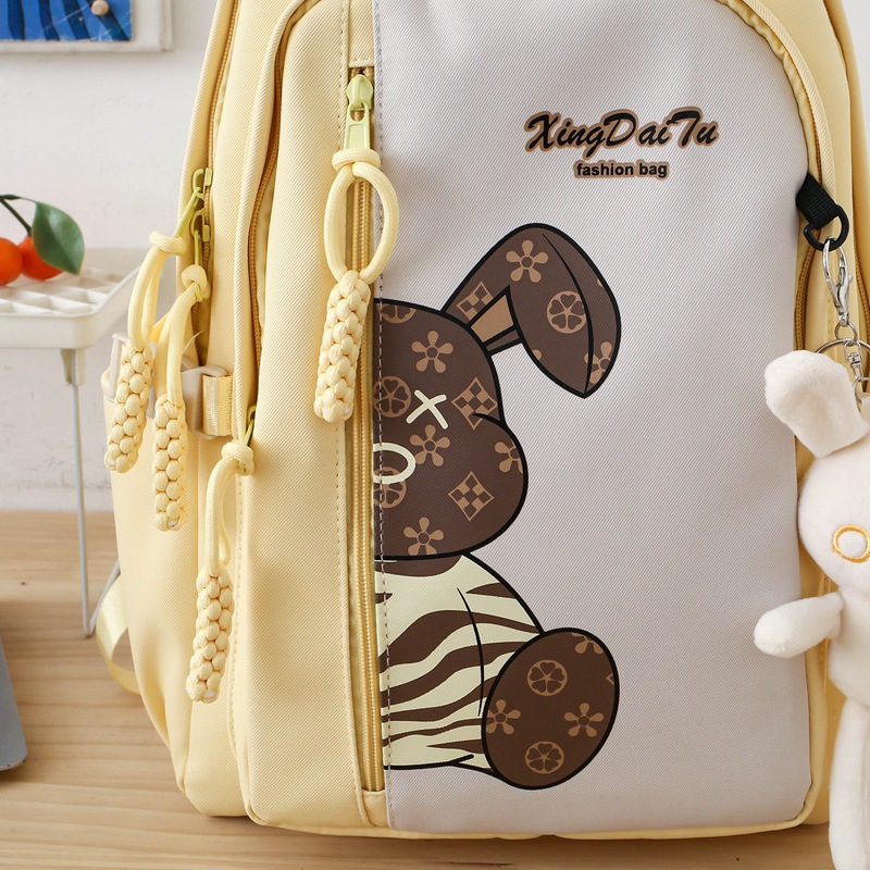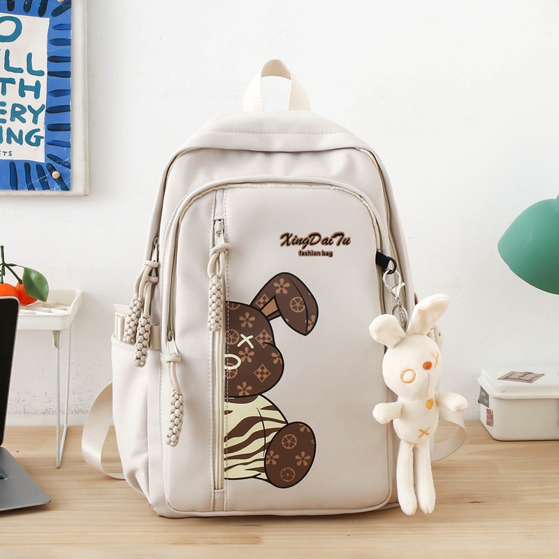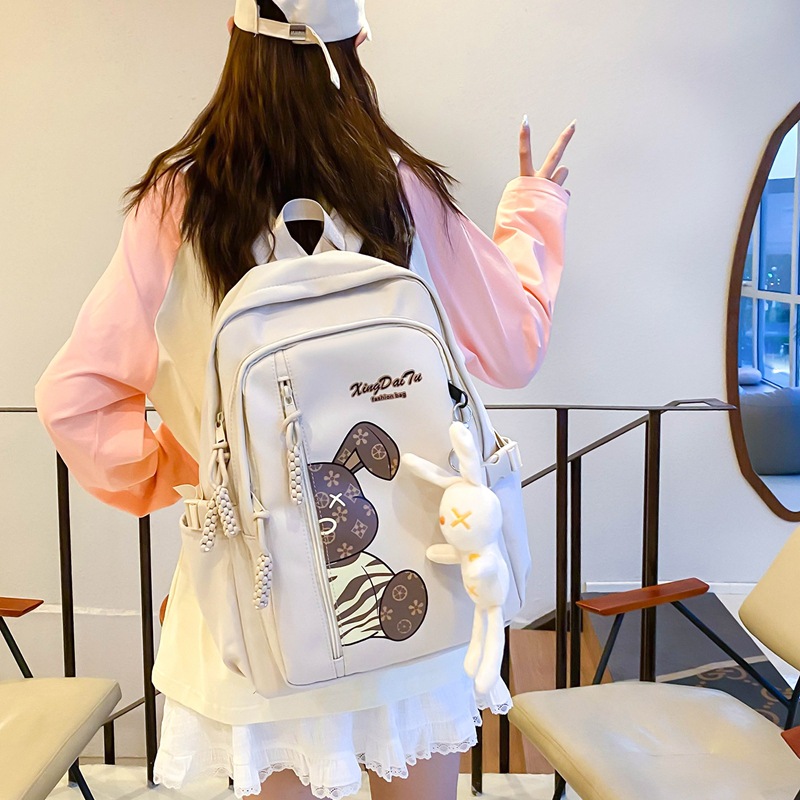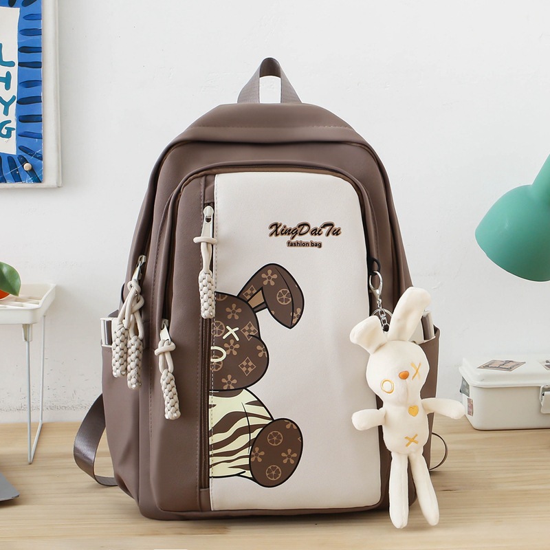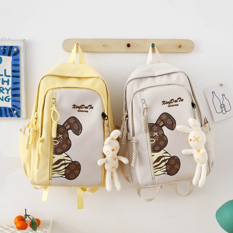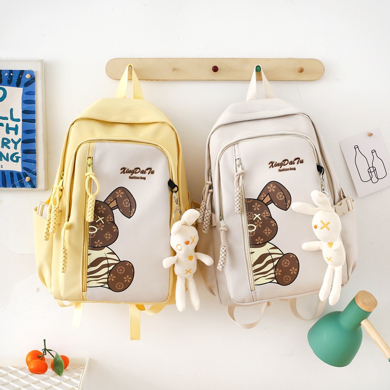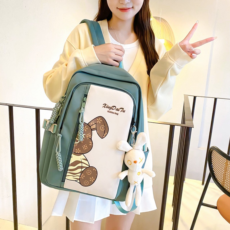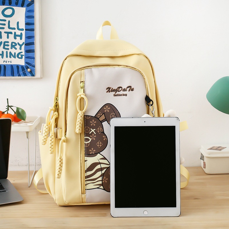 休闲学院风学生书包2024新款撞色小清新帆布双肩包
