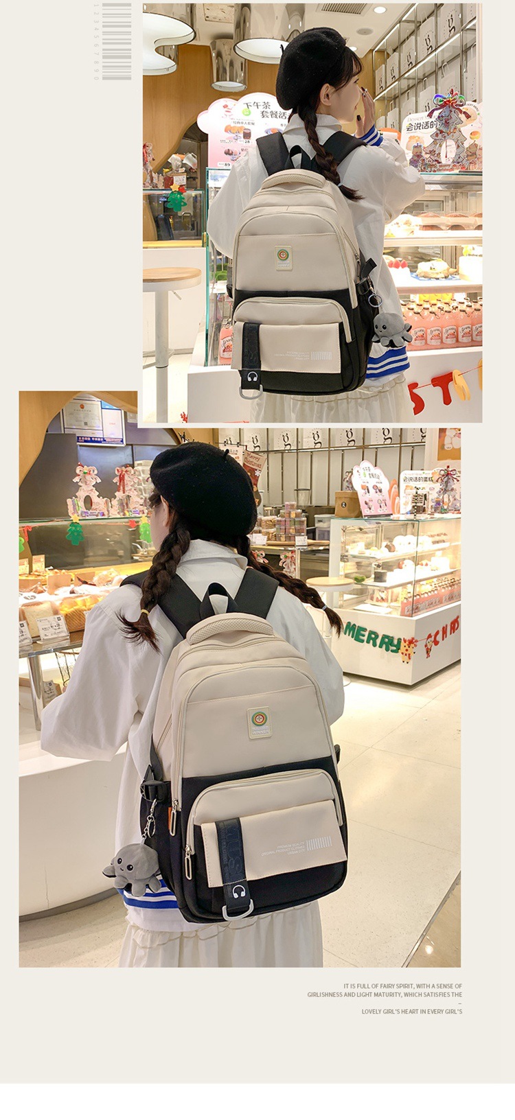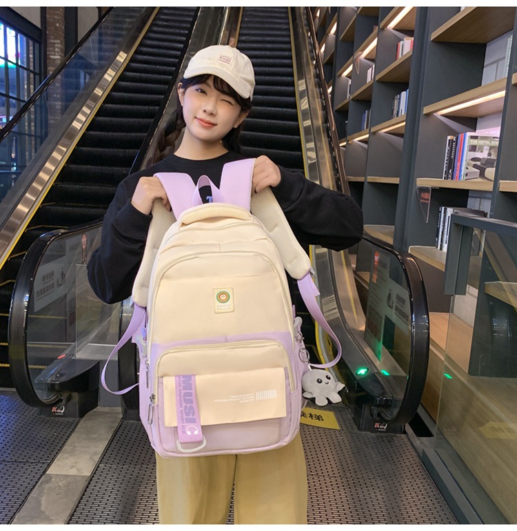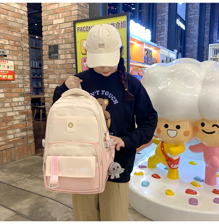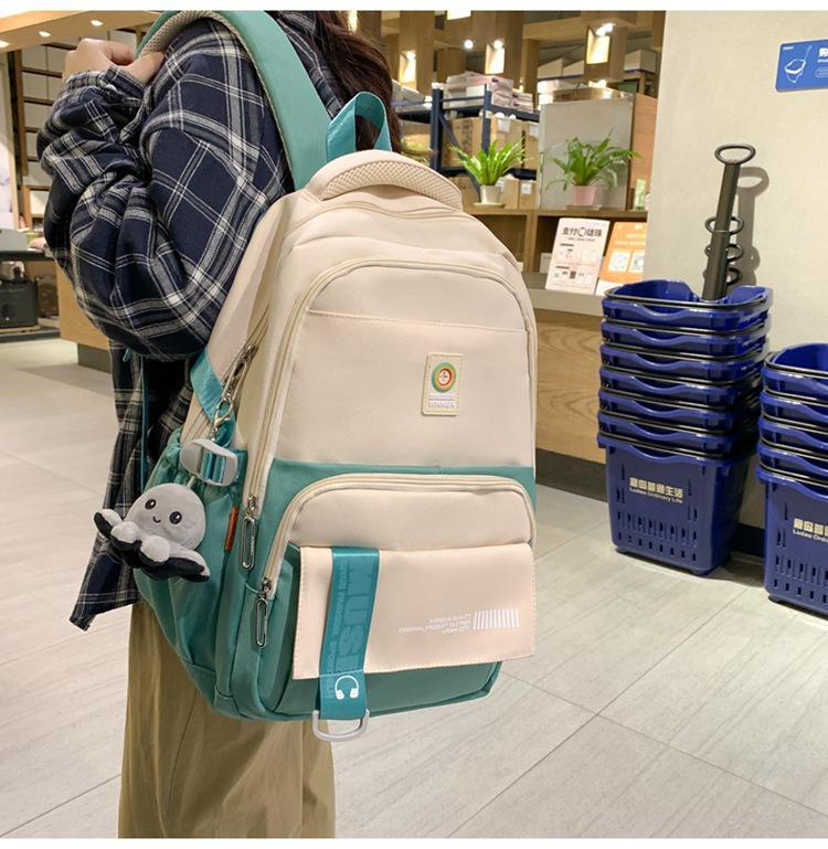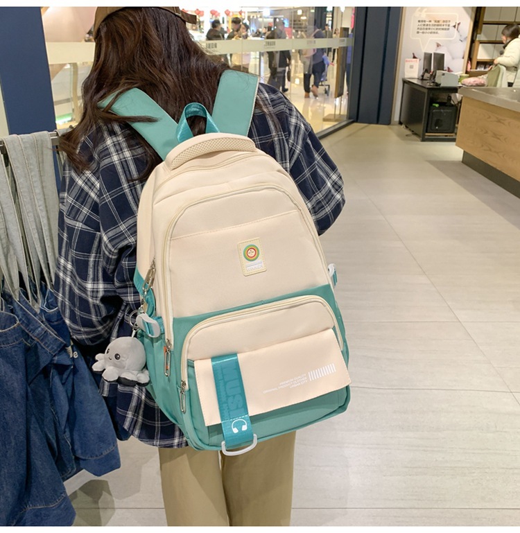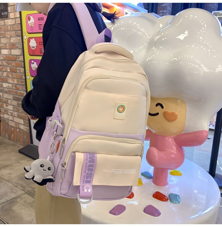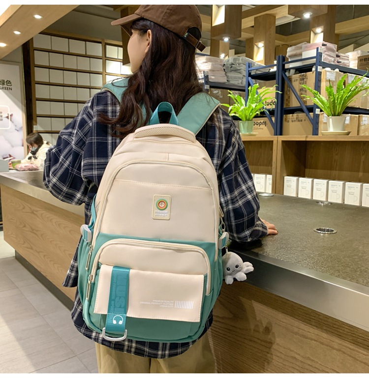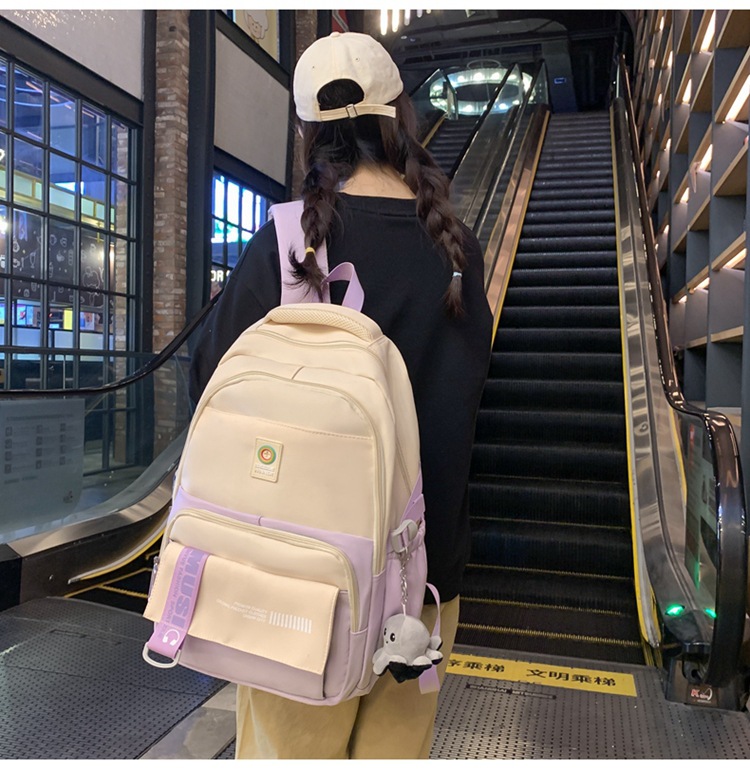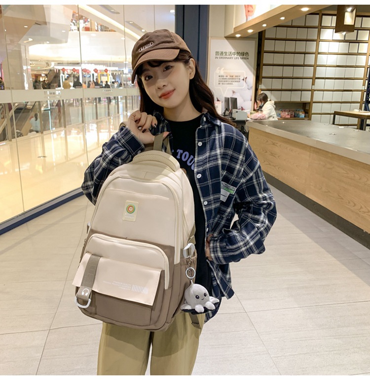 双肩包新款时尚撞色高中生背包潮流拼接校园背包