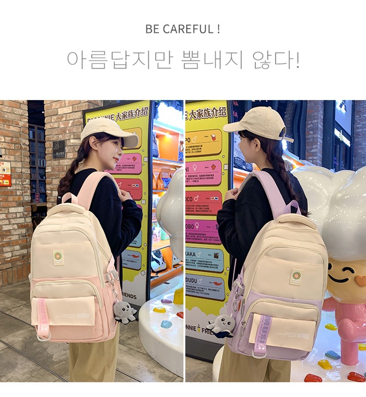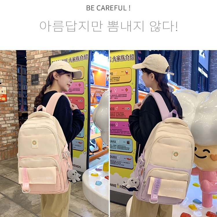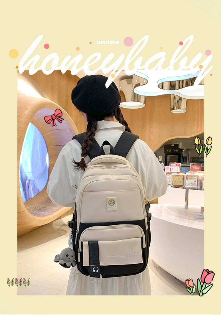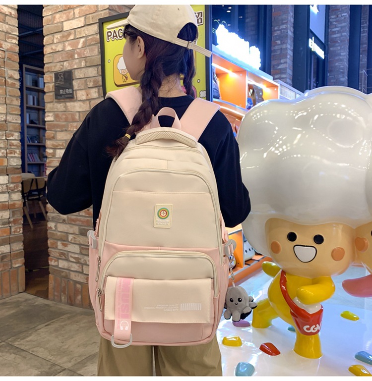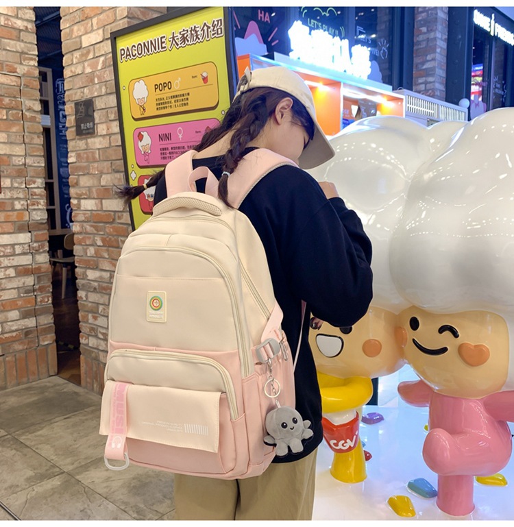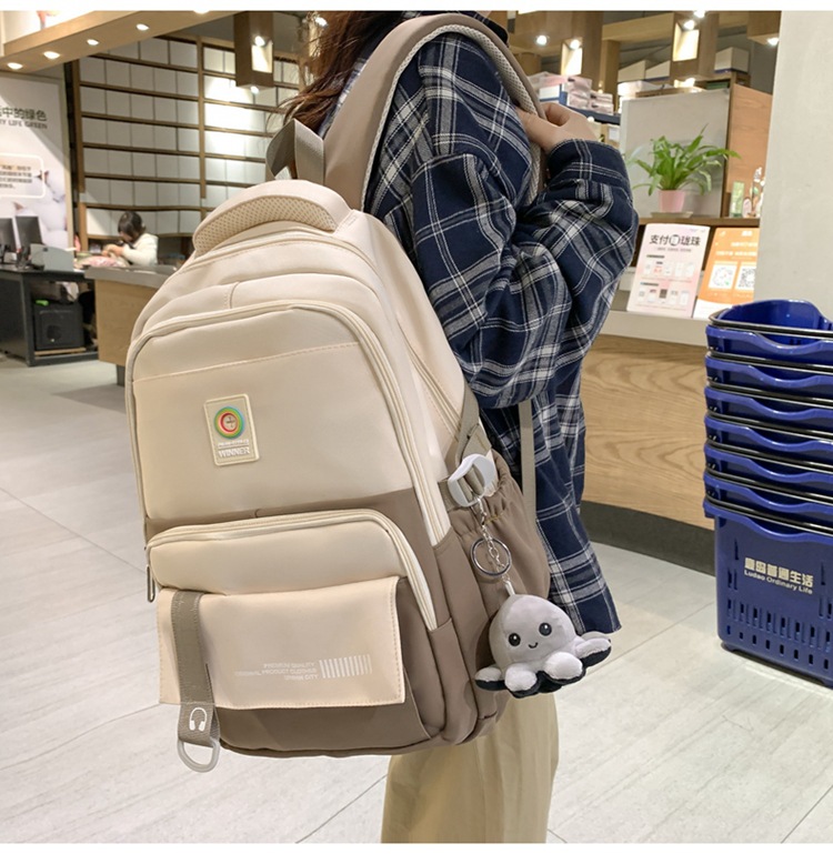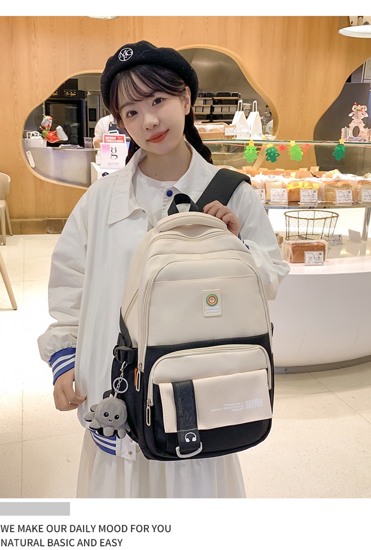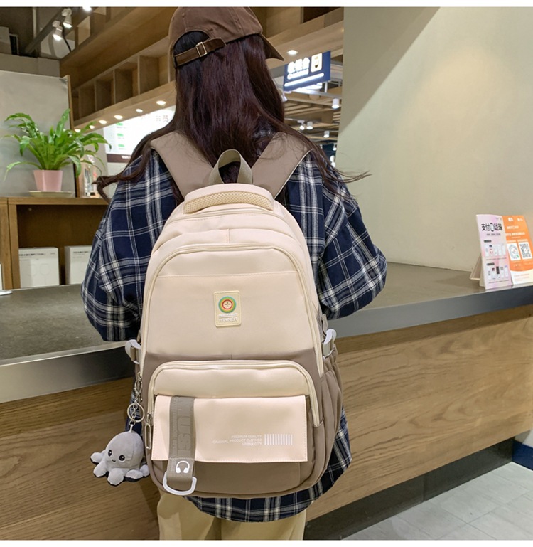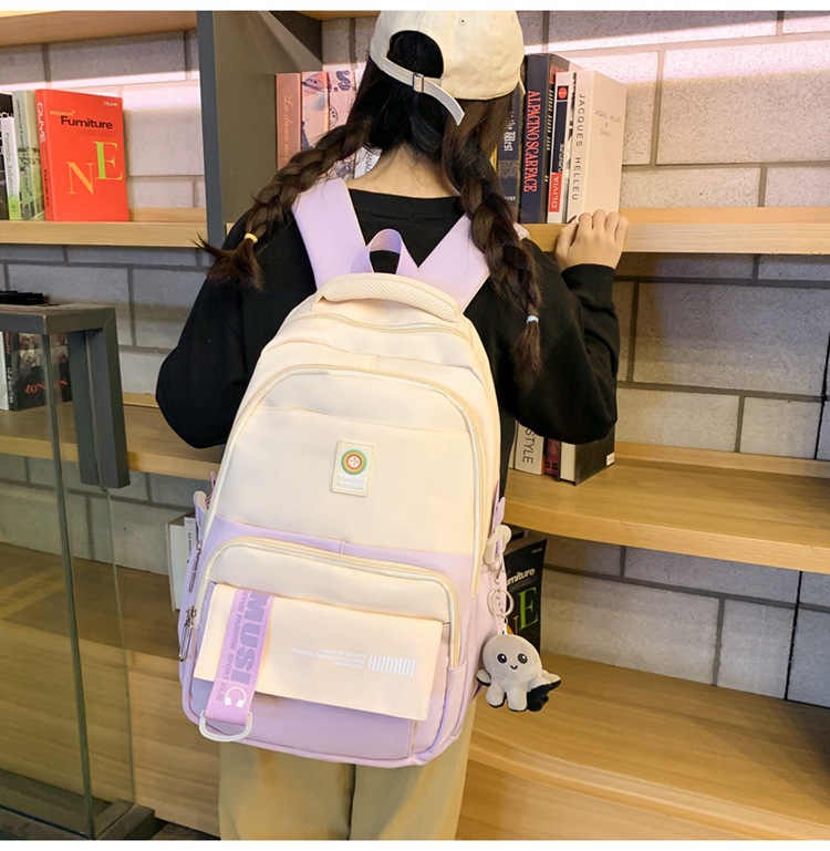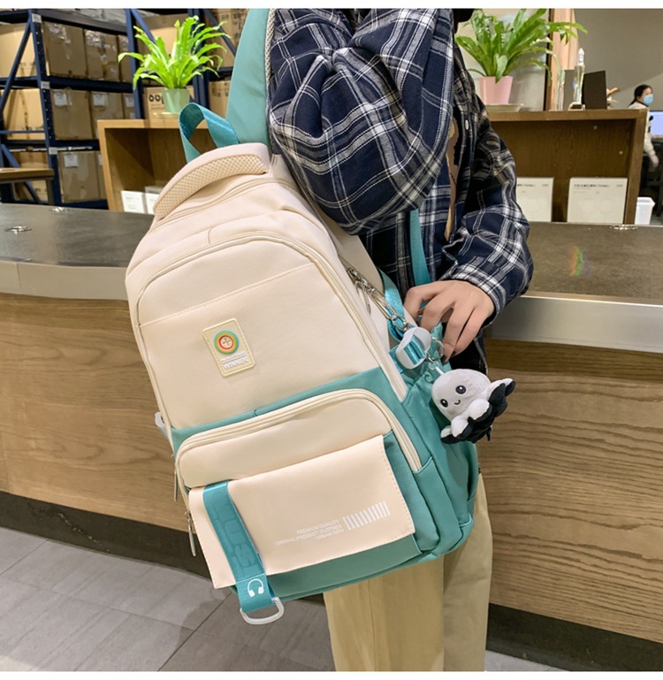 双肩包新款时尚撞色高中生背包潮流拼接校园背包
