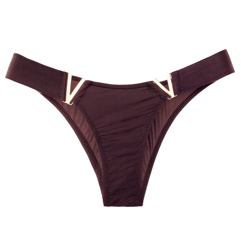 1929/1930欧美性感V字金属饰T裤女运动提臀低腰高叉半包臀女内裤
