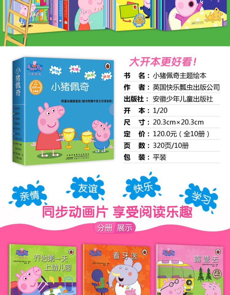 全套小猪佩奇绘本全套中英文主题双语动画故事书0到3岁45-6宝宝早