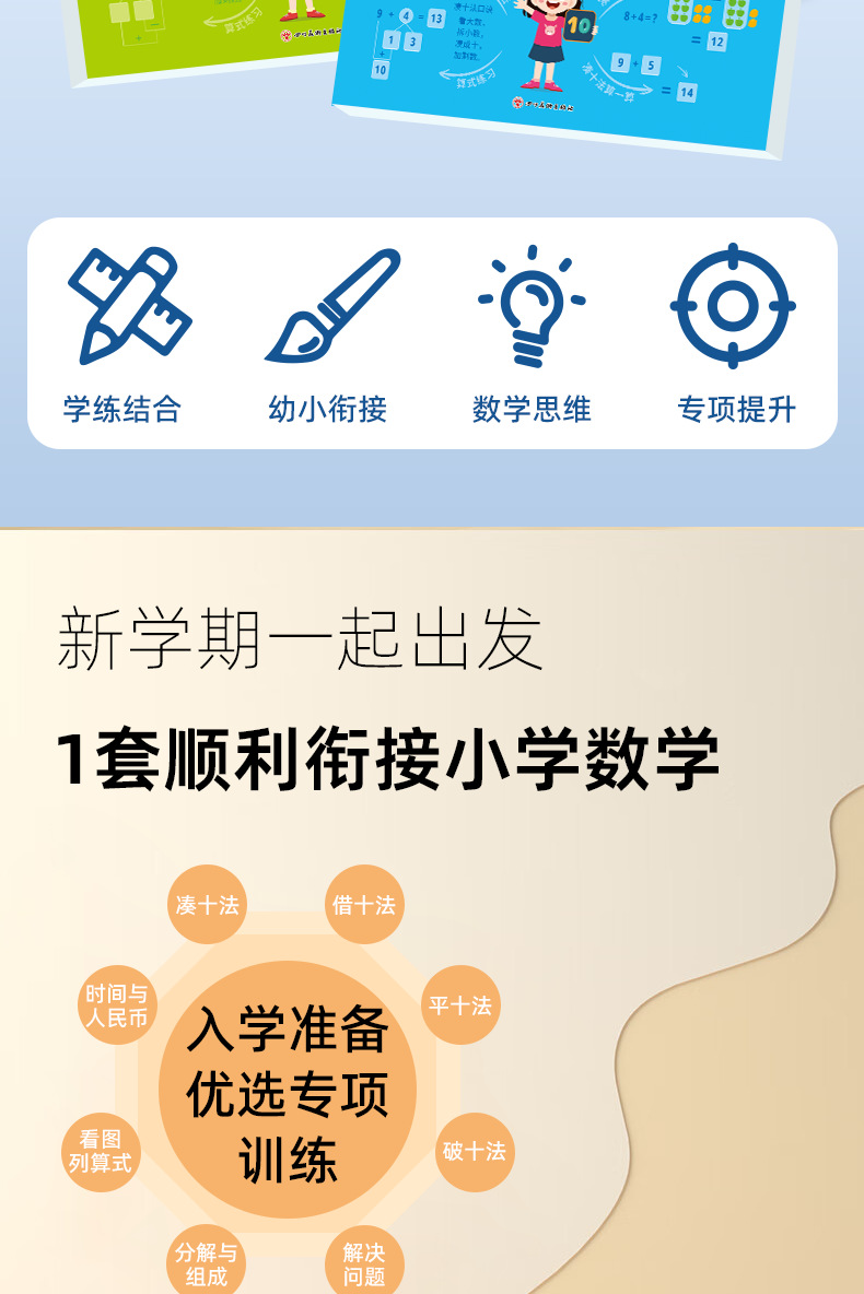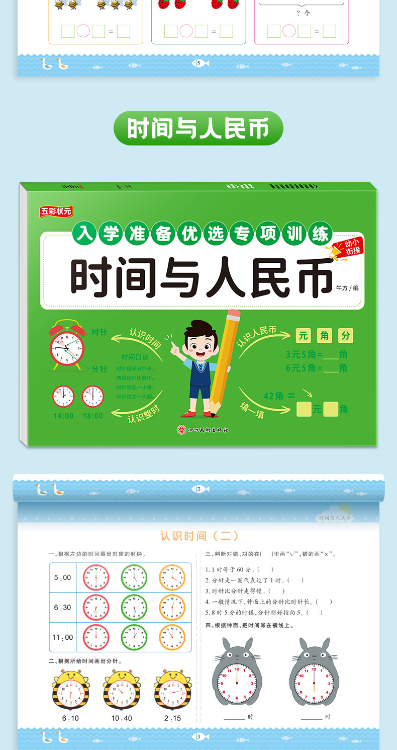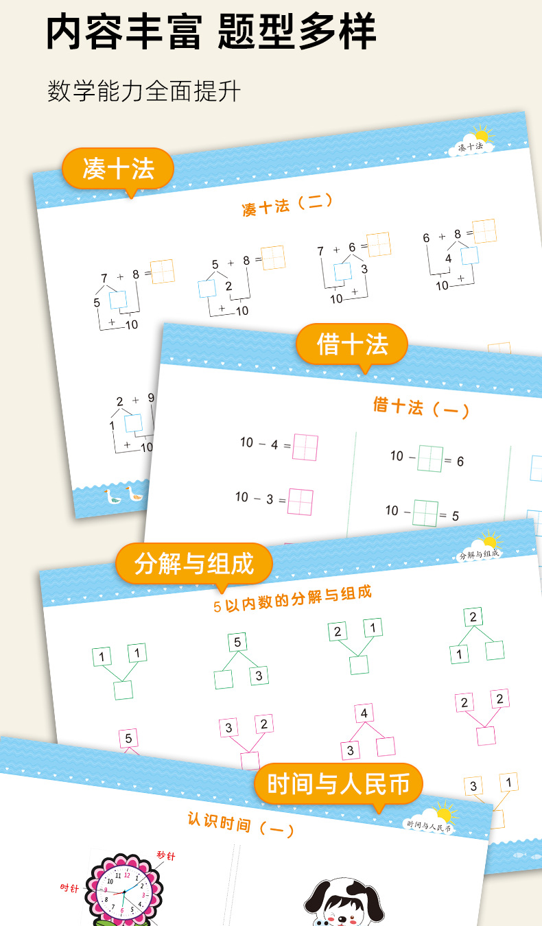 幼小衔接专项训练时间与人民币借十凑十平十破十法解决问题练习册