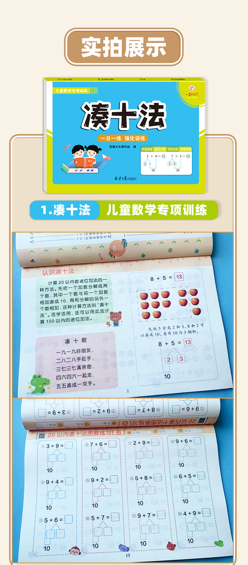 幼小衔接儿童数学专项训练 凑十法借十法思维逻辑练习册一日一练