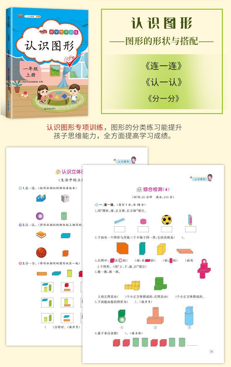 一年级上册数学专项训练认识图形认识钟表思维逻辑开发练习册全套