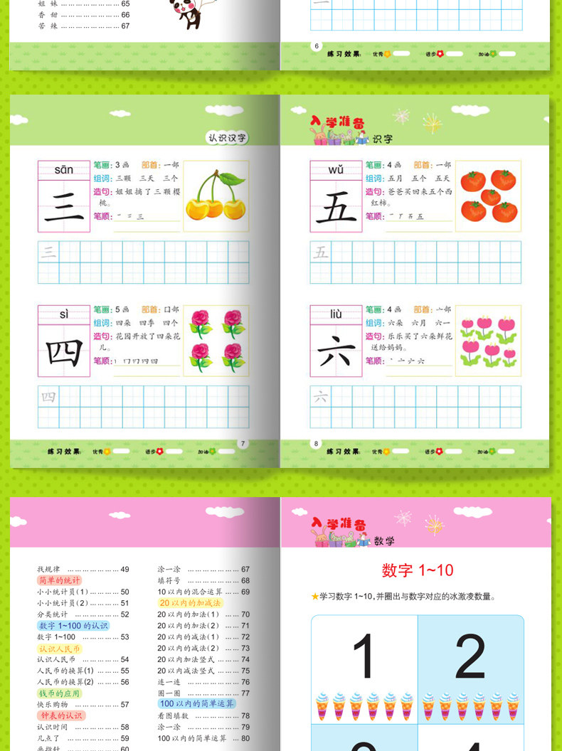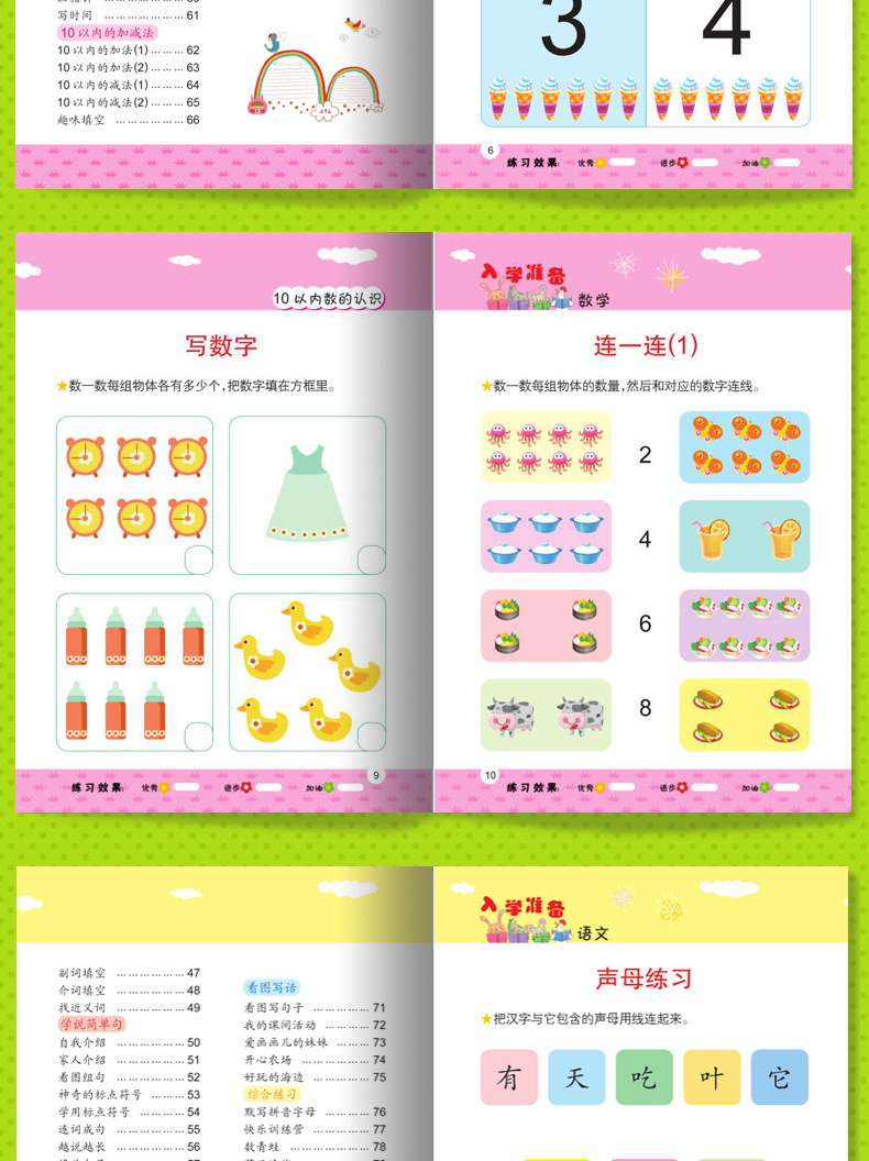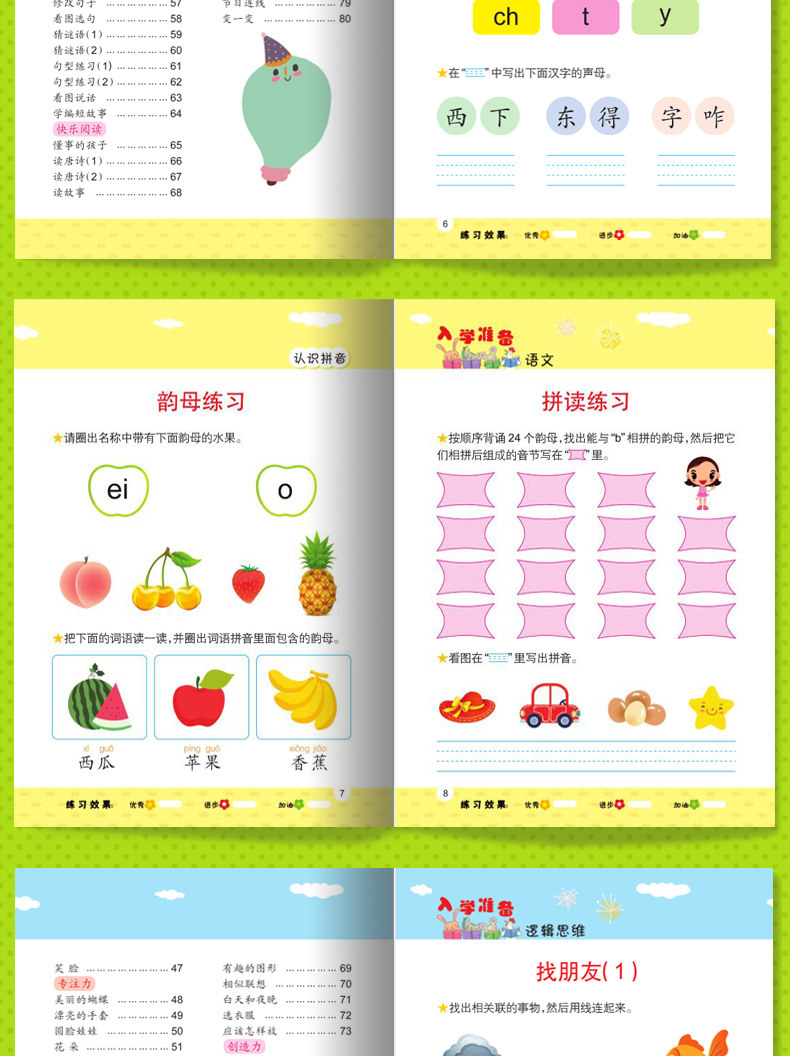 幼小衔接入学准备数学识字语文拼音综合测试题逻辑思维练习册