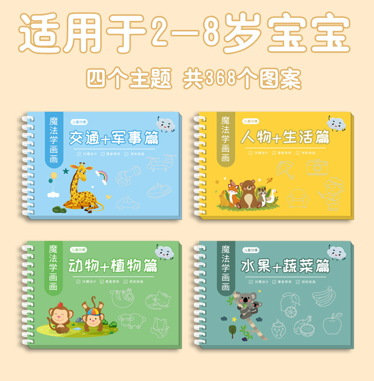 幼儿园控笔训练儿童凹槽魔法学画画练字帖学前班简笔画启蒙绘画本