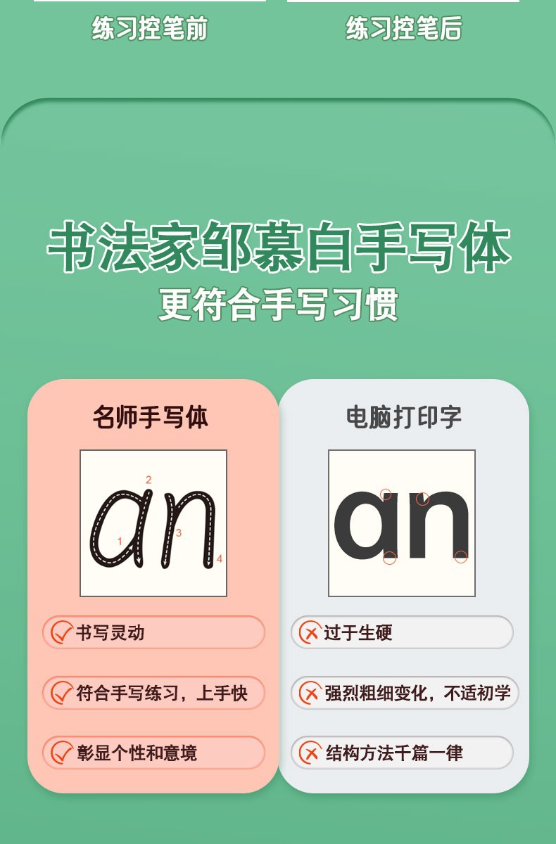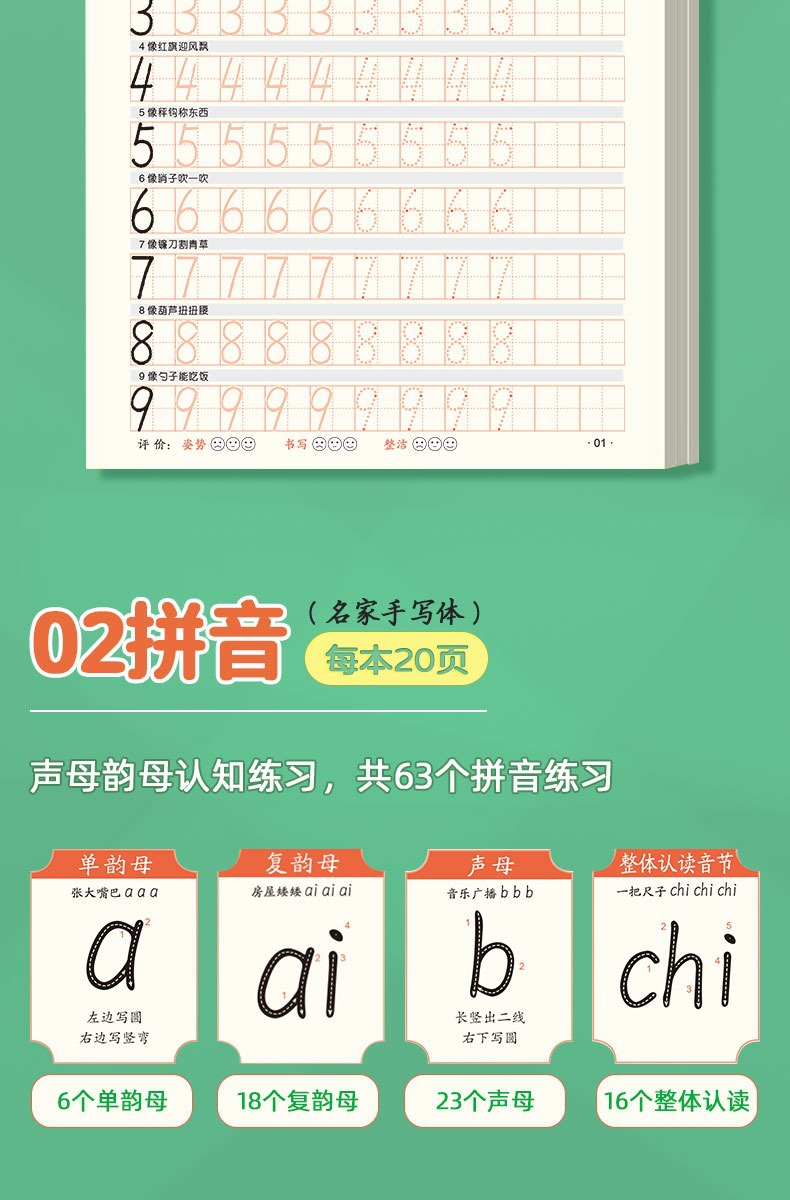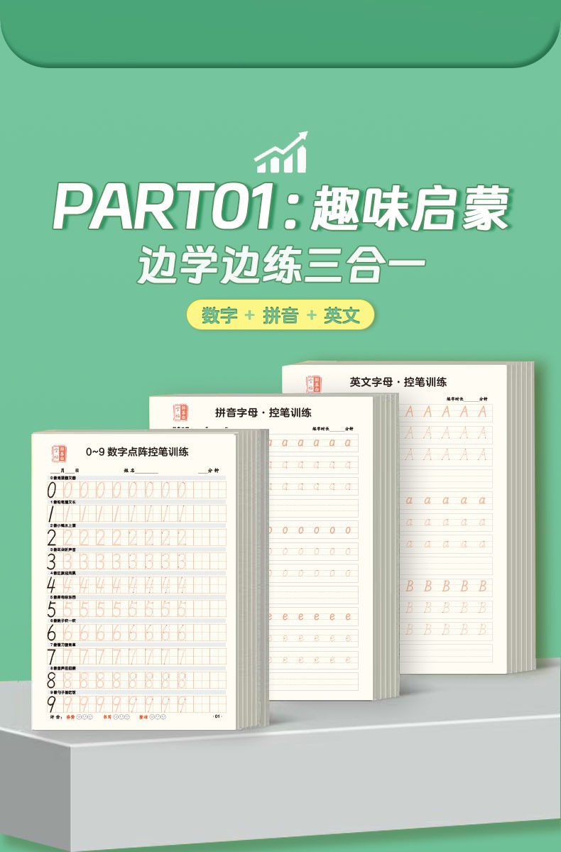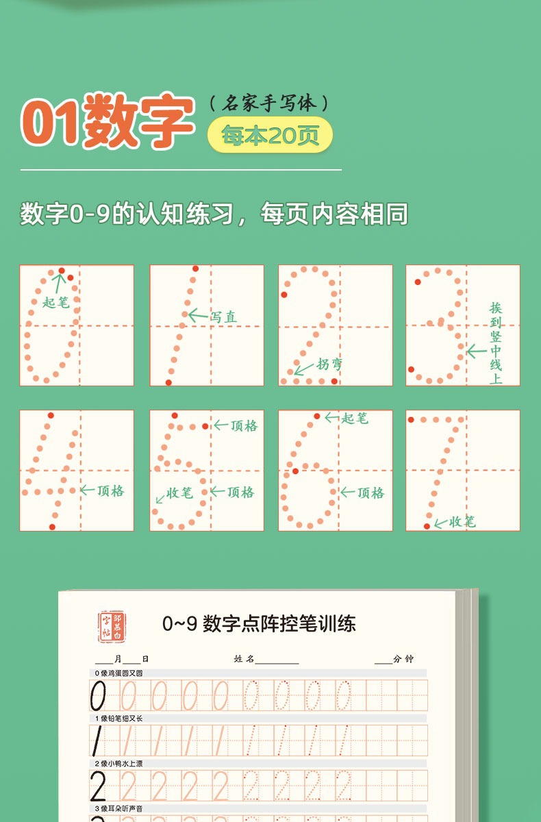 幼儿园学前班0-9数字英文拼音字母线条笔画偏旁点阵控笔练字帖
