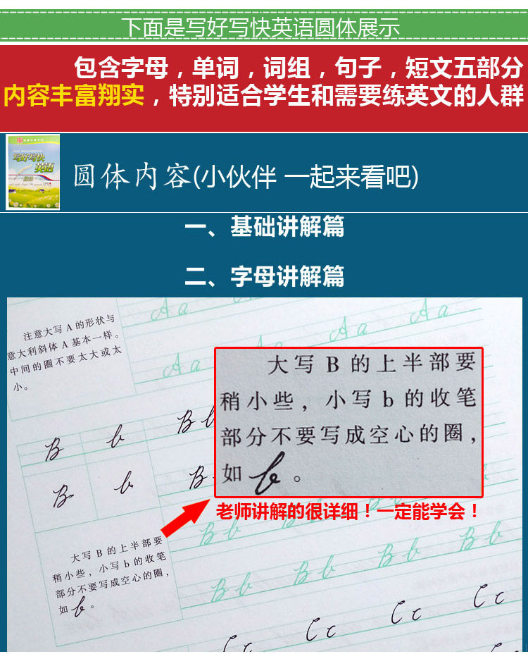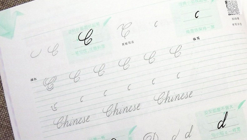圆体英文字帖英语字母花式大学生花体考研于佩安成人英语连笔字