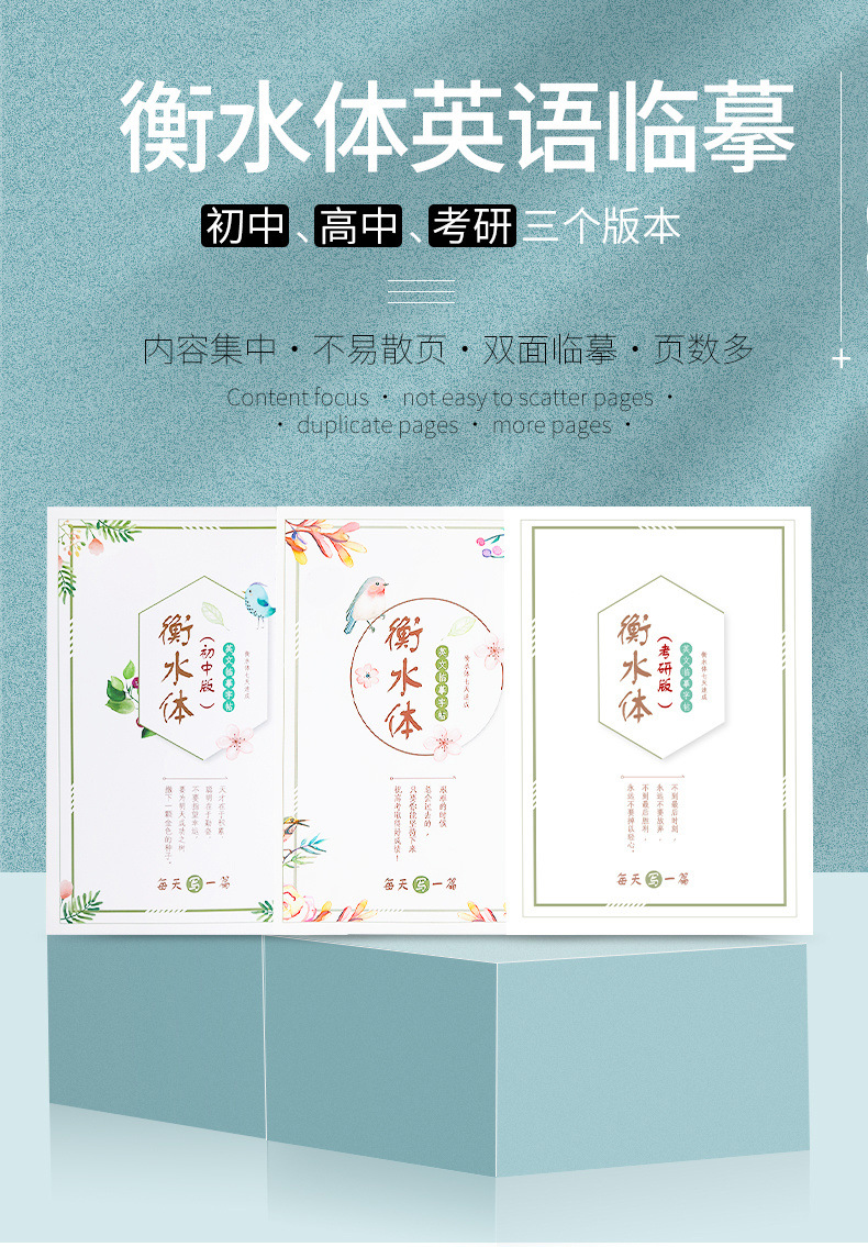 | 60 pages for junior school students/hengshui font words * sentence patterns * model text(60页初中版/衡水体单词*句型*范文) | USD $6.2 | 5501 piece available |