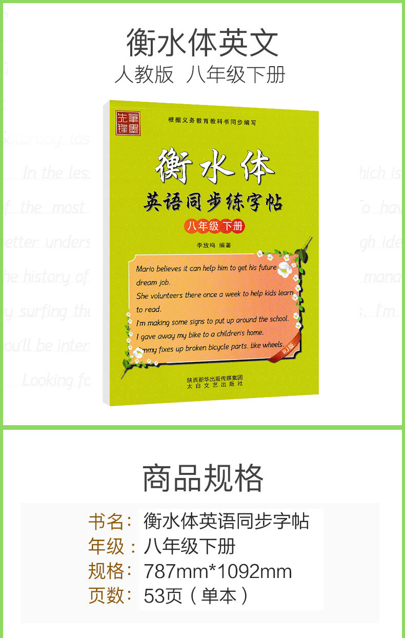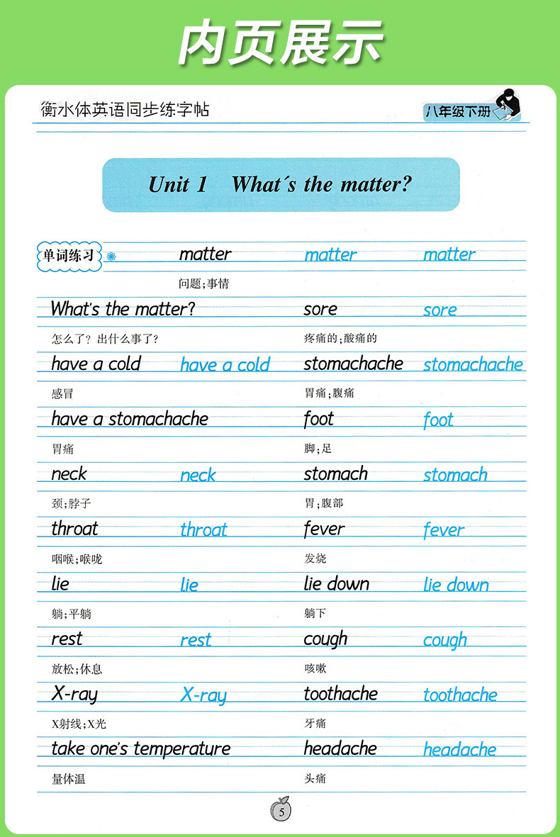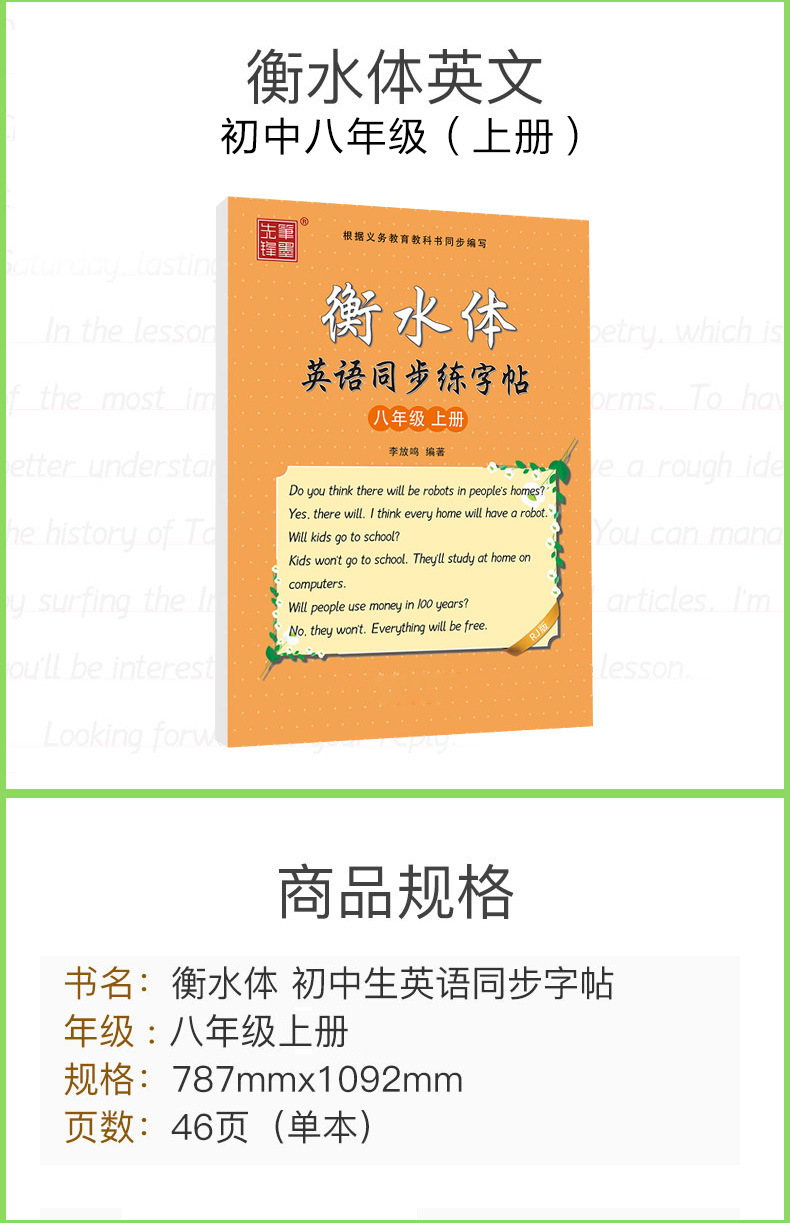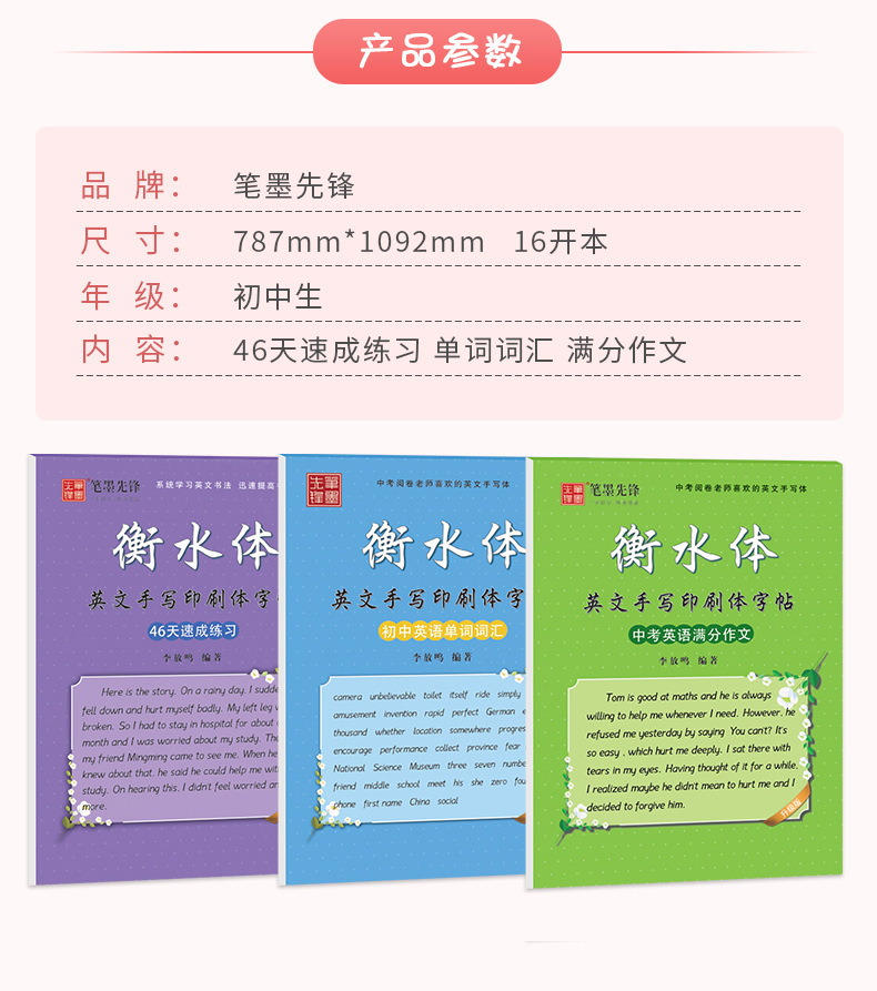 笔墨先锋衡水体英文字帖初中生手写印刷体同步英语字帖78上下册