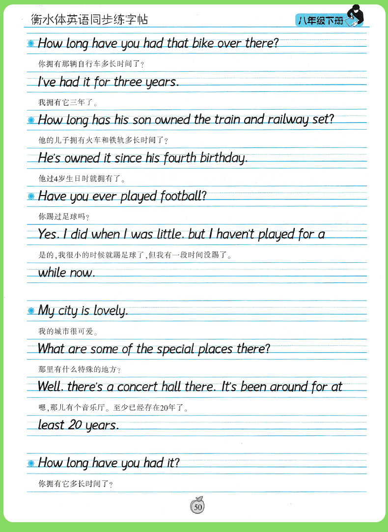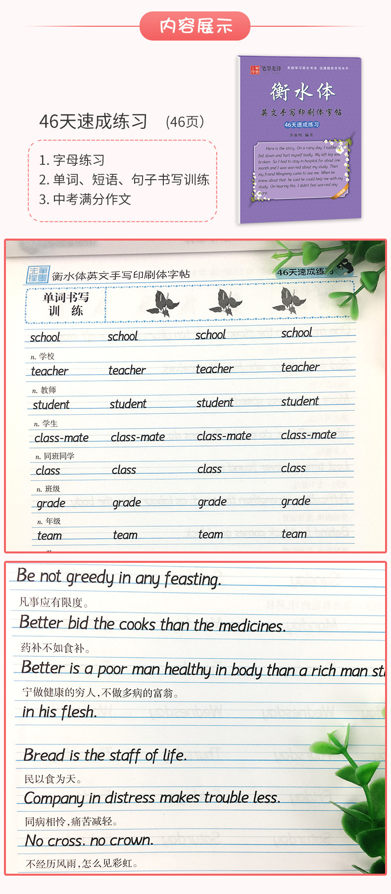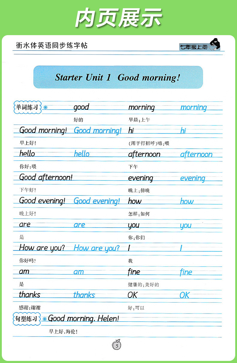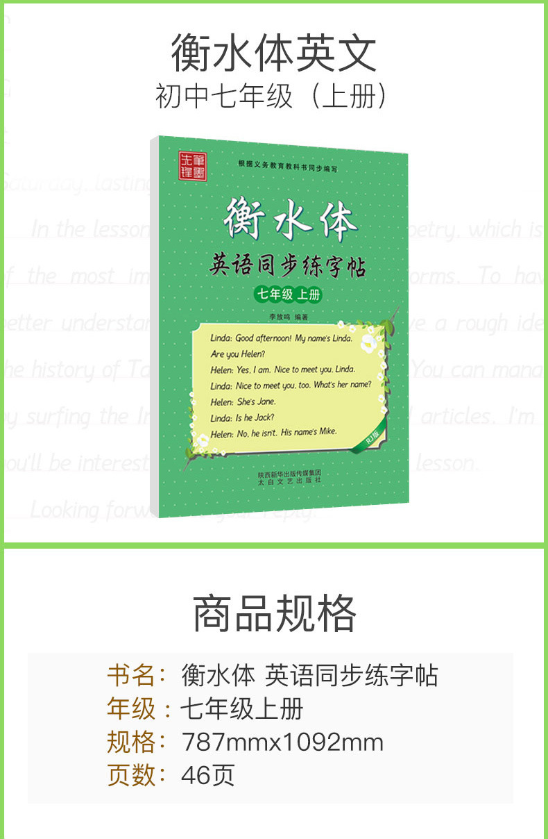 笔墨先锋衡水体英文字帖初中生手写印刷体同步英语字帖78上下册