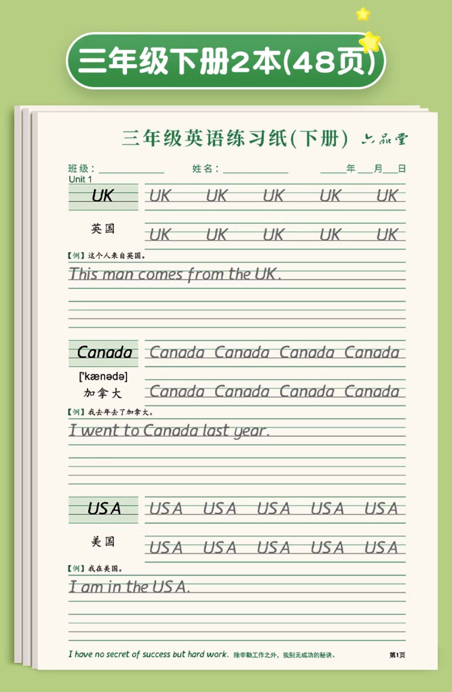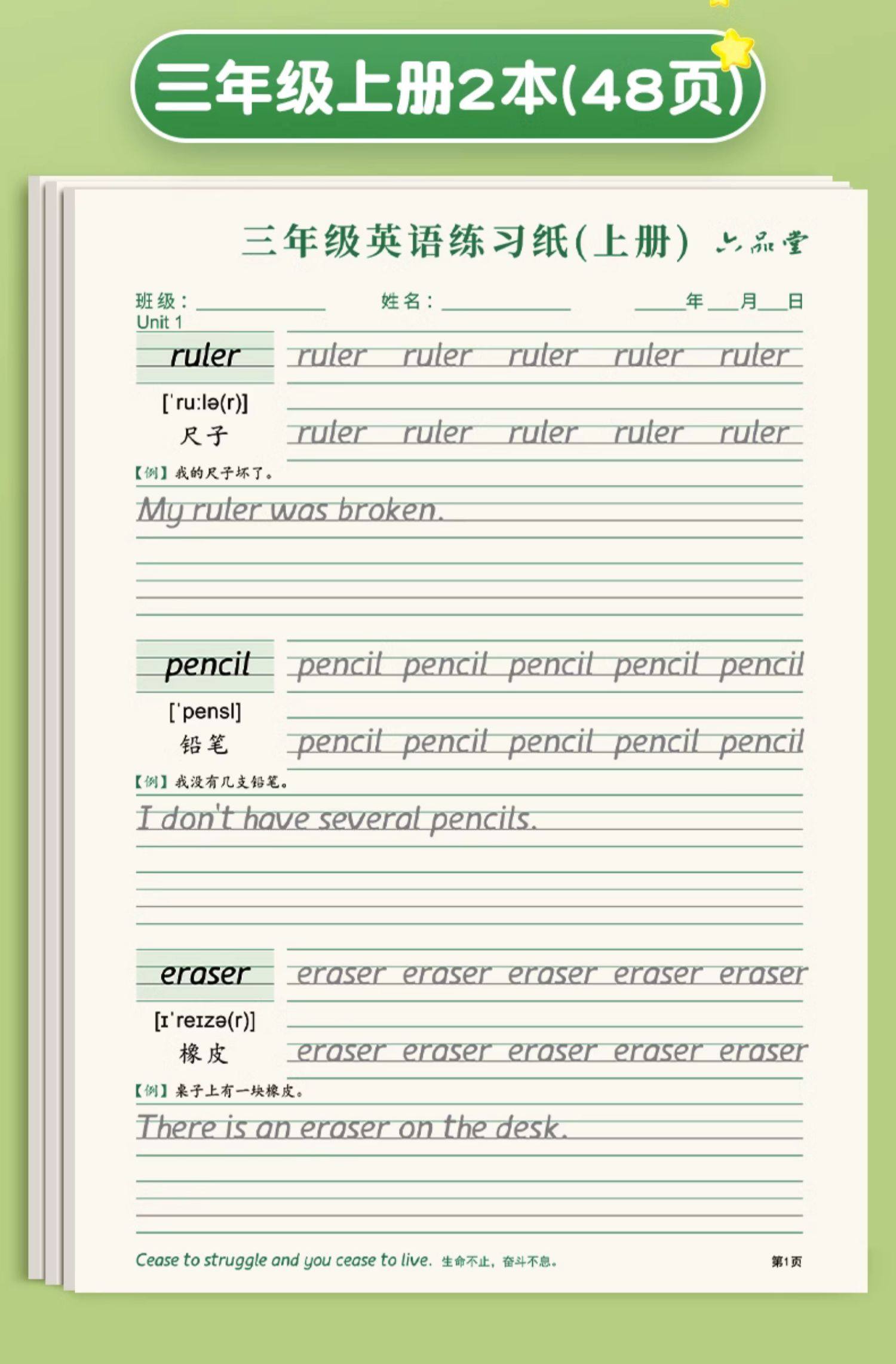 三年级衡水体英语字帖上册下册人教版同步课本英文单词字母四五六