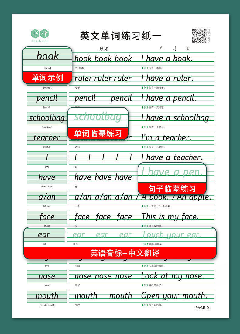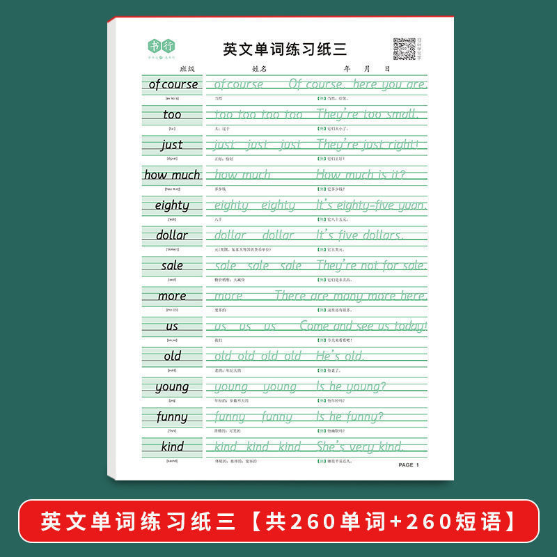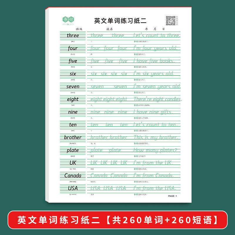 英语字帖英语单词练习本幼儿童英文帖小学生一二三年级字母描红本