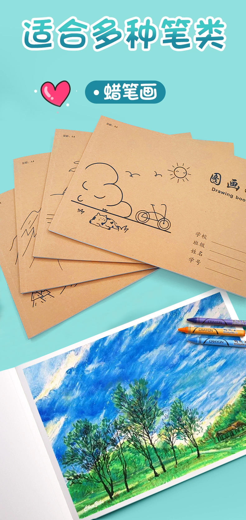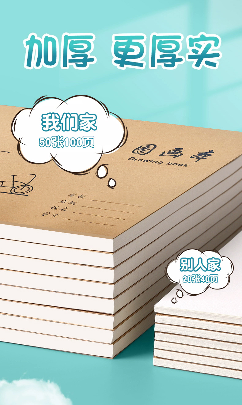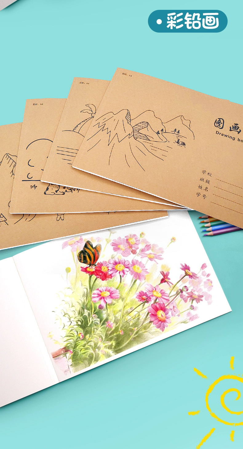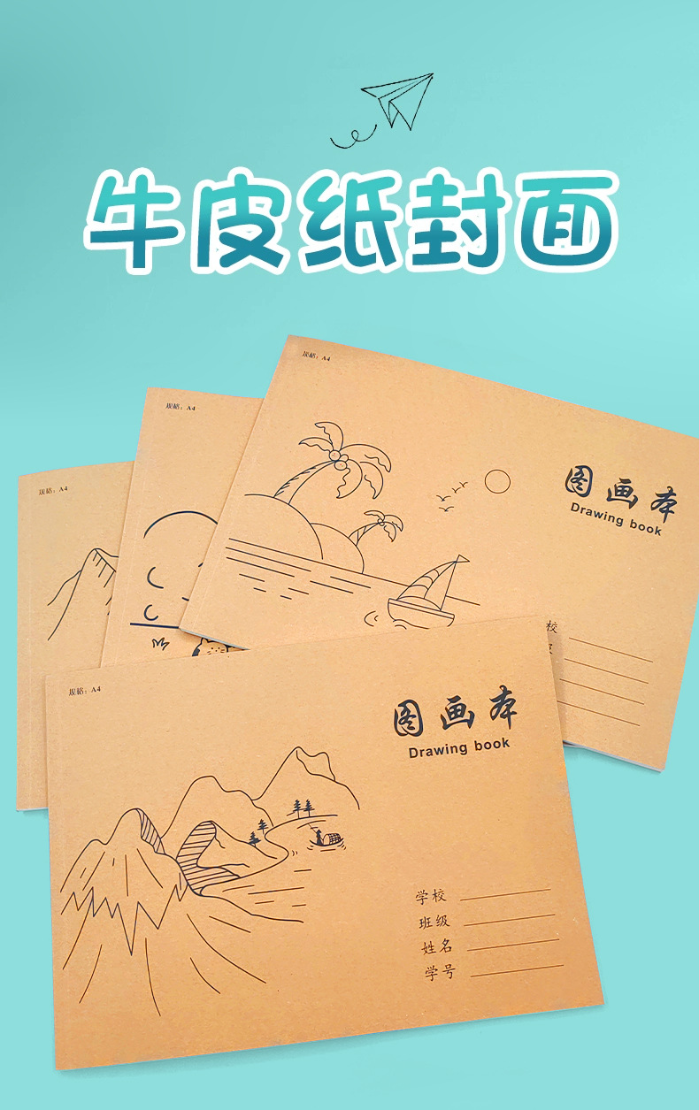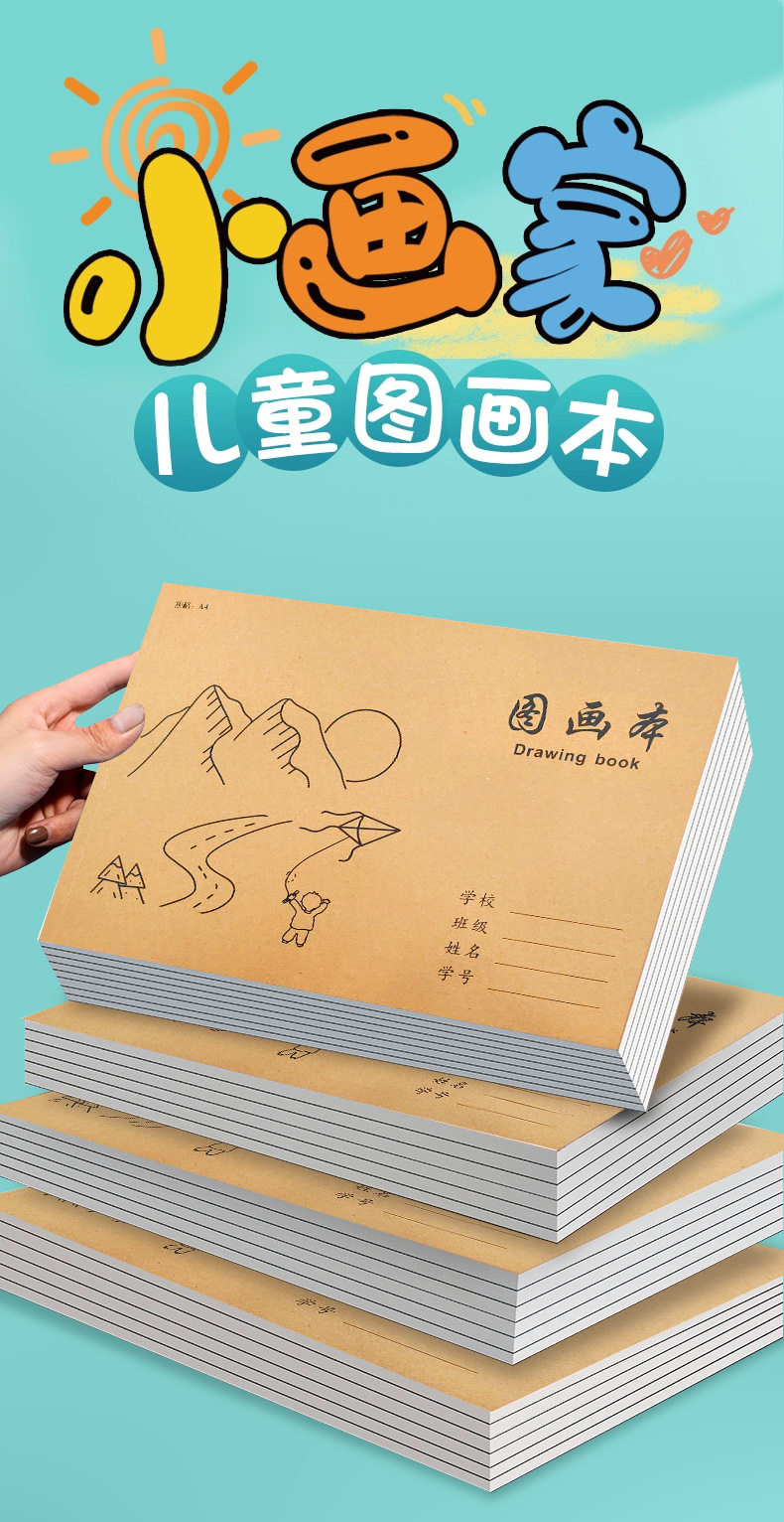 A4加厚牛皮纸图画本胶包款儿童画本小学生速写美术空白涂鸦本批发