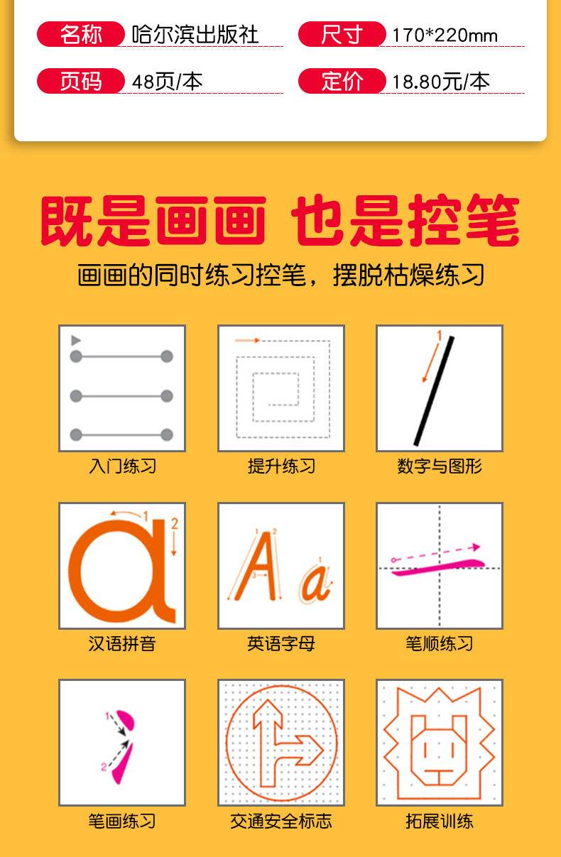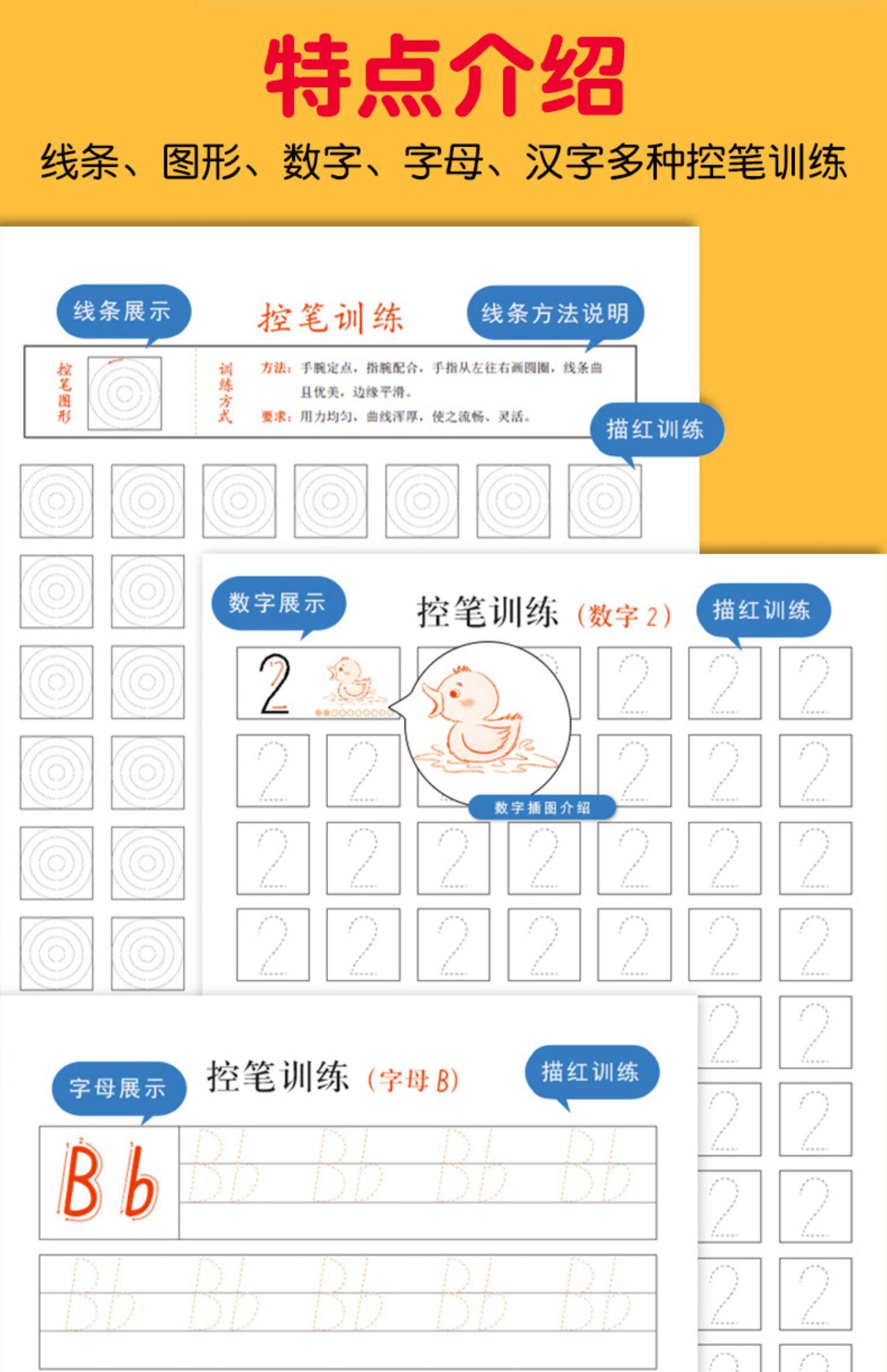 幼儿控笔训练绘画图画幼儿园练字本数字练字帖正姿点阵控笔训练笔