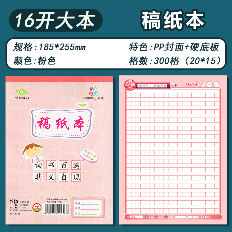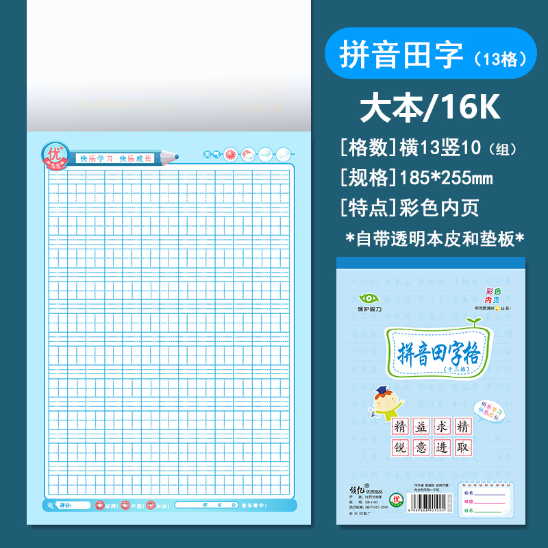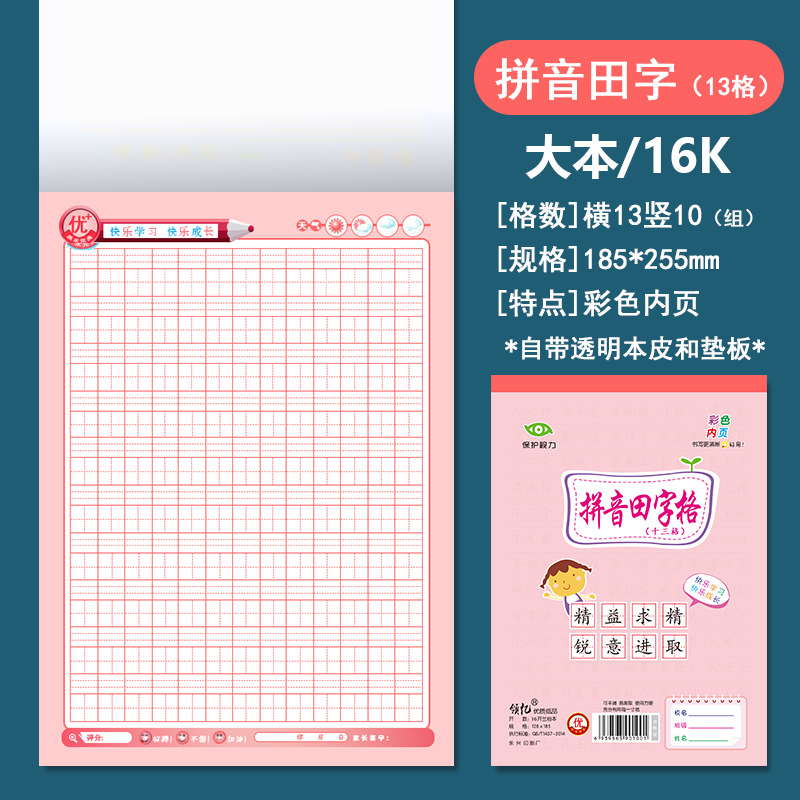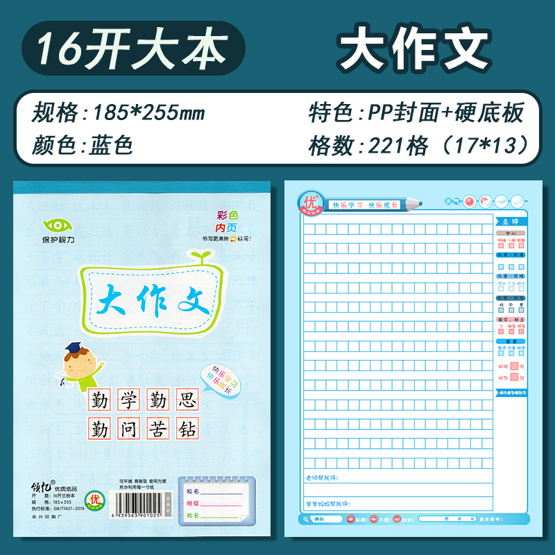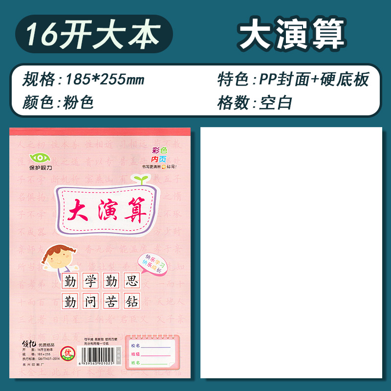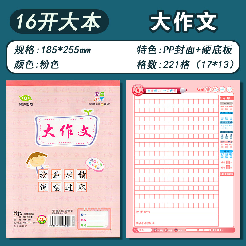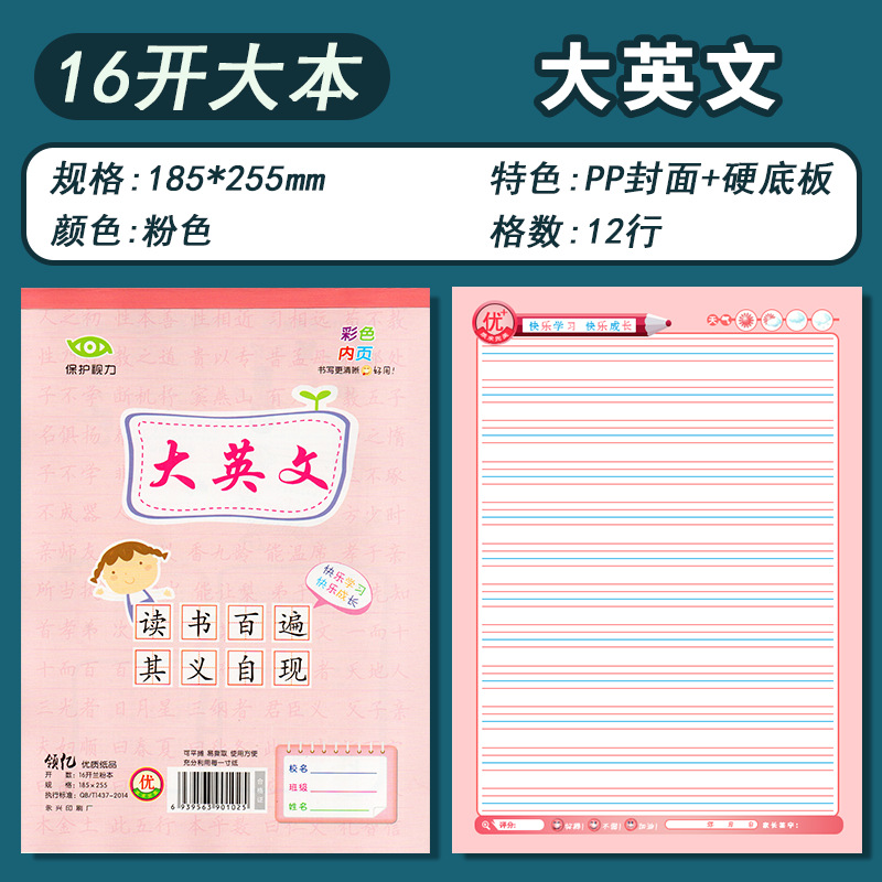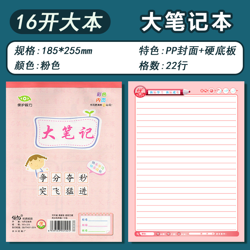 16开大号蓝粉作业本小学生自带塑料本皮笔记英语作文拼音田字格本