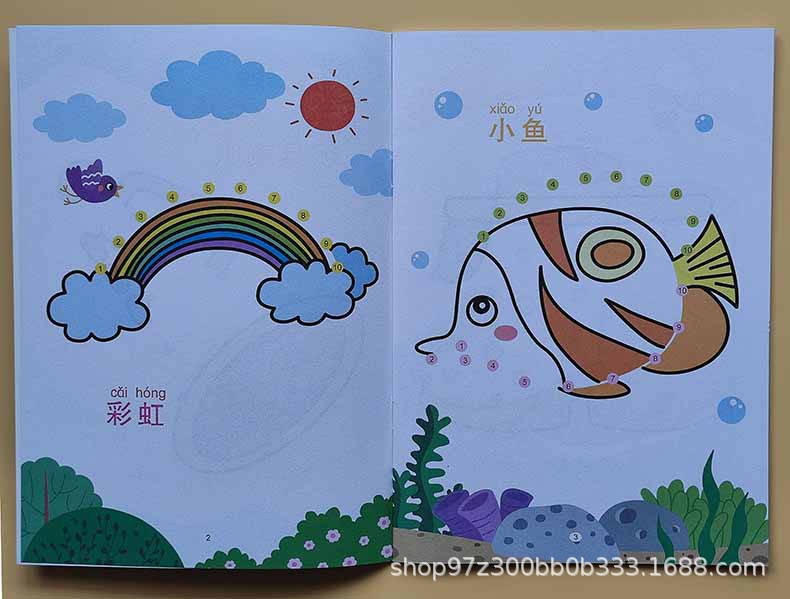视觉训练数字连线涂色画本 2-4岁宝宝点对点连线控笔训练学画画书