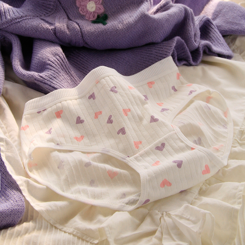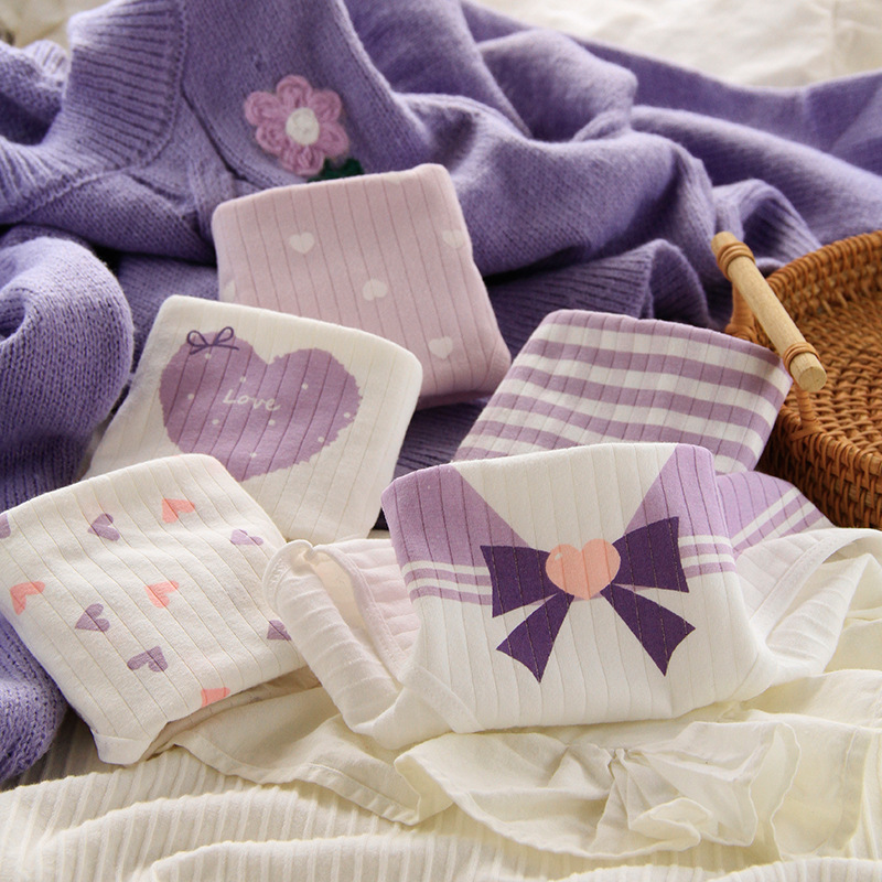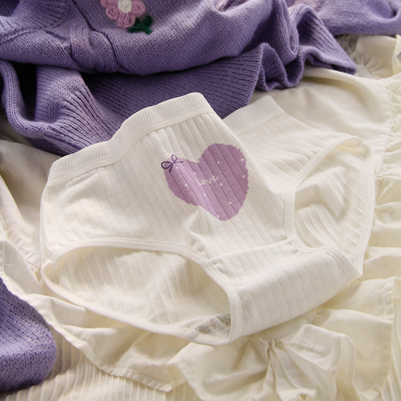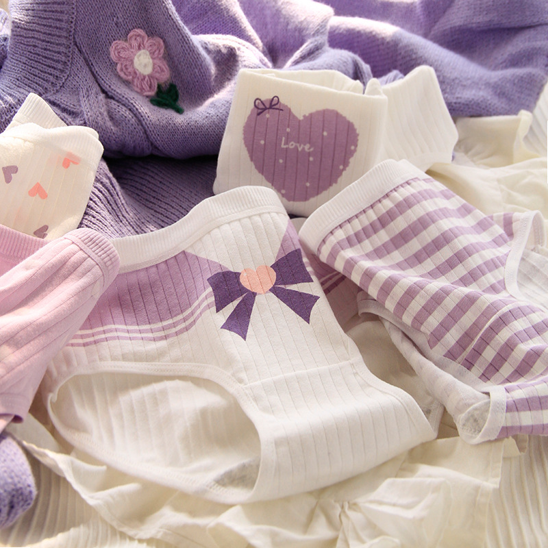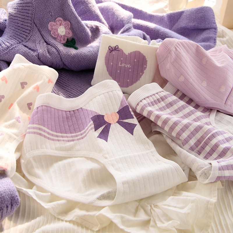 多巴胺女孩紫色爱心纯棉裆女士内裤少女棉质透气学生三角短裤015