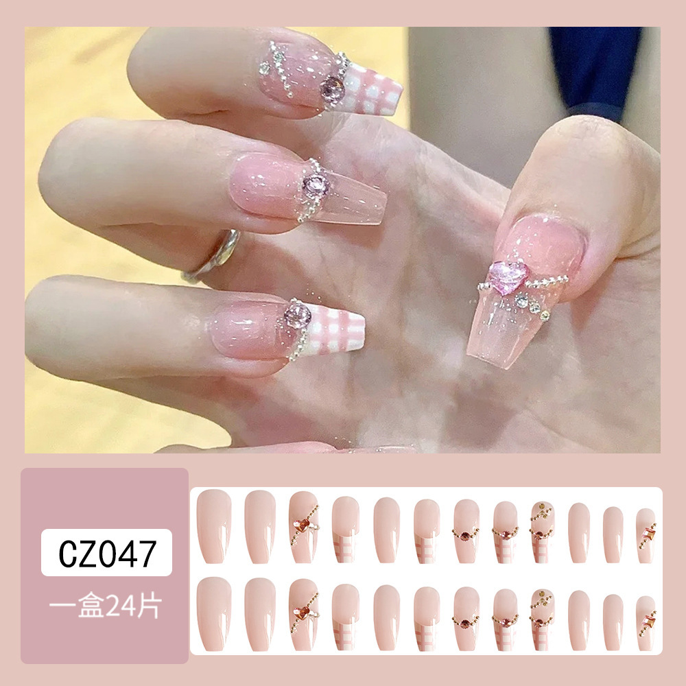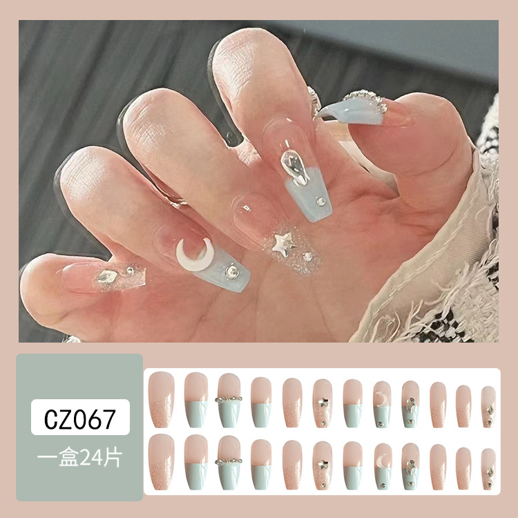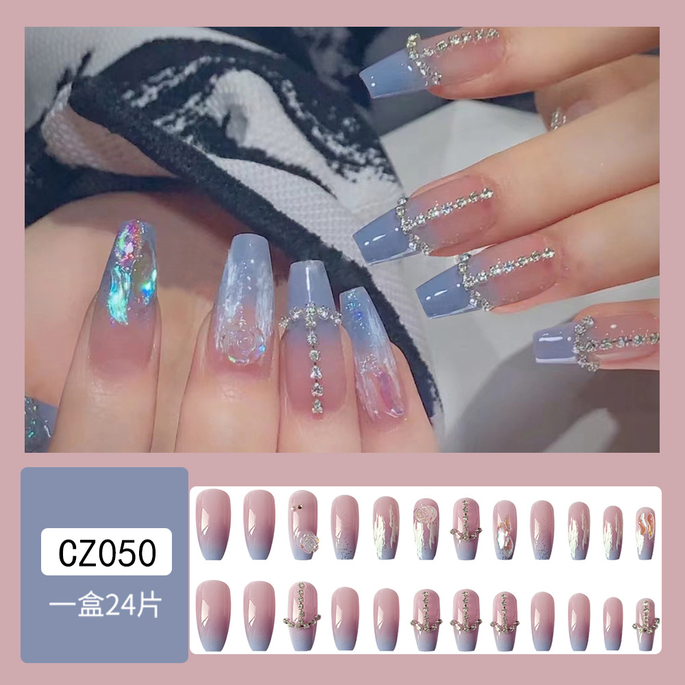 抖音畅销镶钻指甲片美甲 假指甲贴片 高级手工穿戴甲长款成品批发