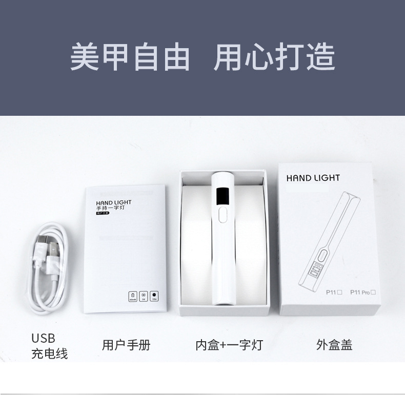 跨境美甲一字灯手持灯蓄电款便捷式迷你光疗灯甲片美甲手持一指灯