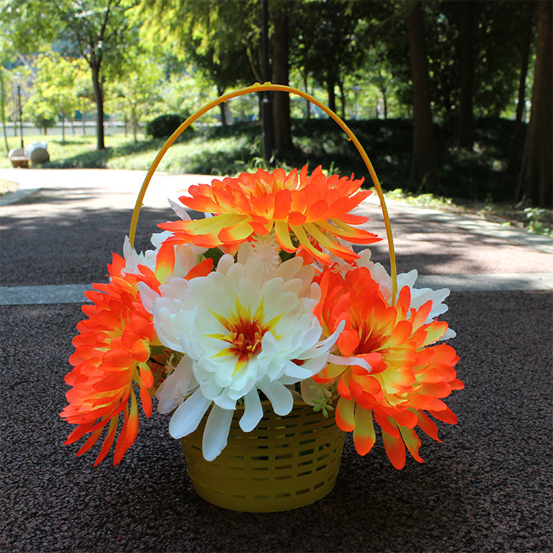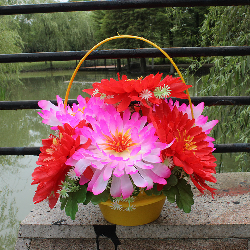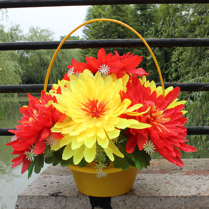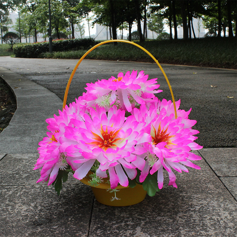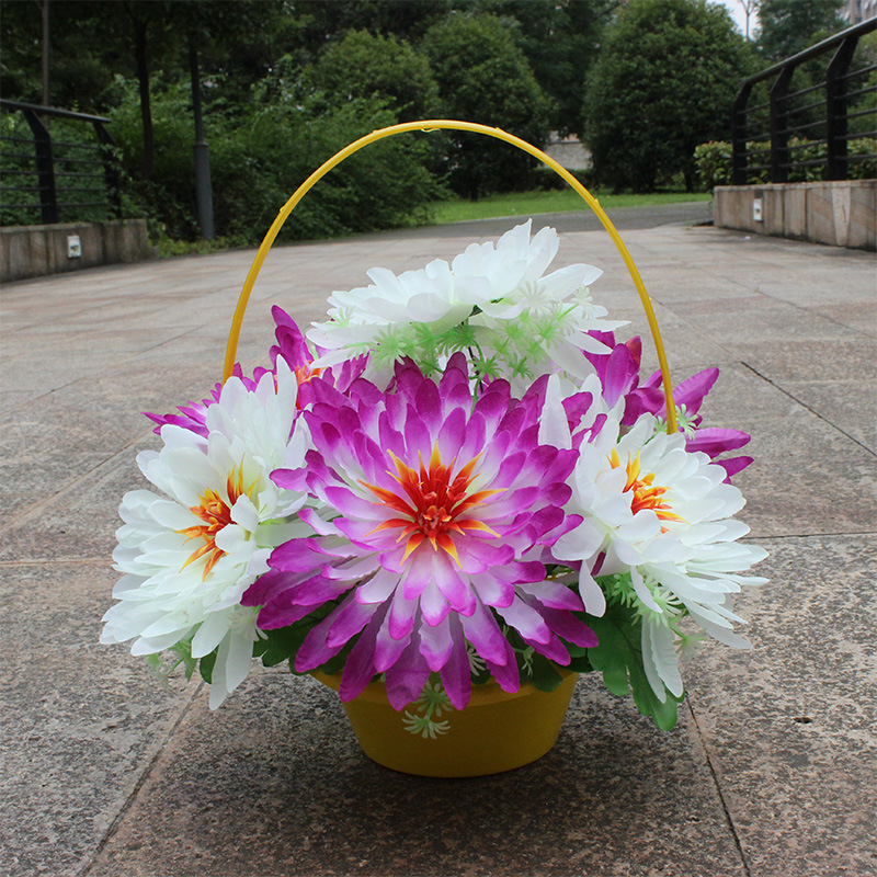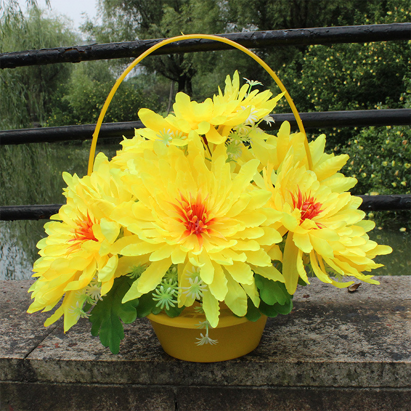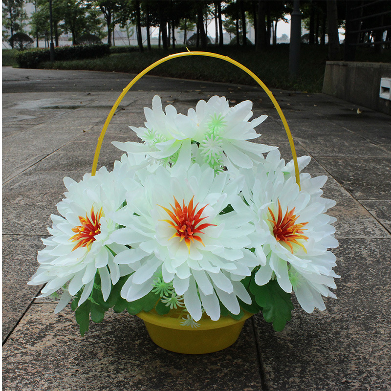 便宜绢花菊花篮清明花仿真花扫墓花假花篮祭祀花盘景花公墓装饰花
