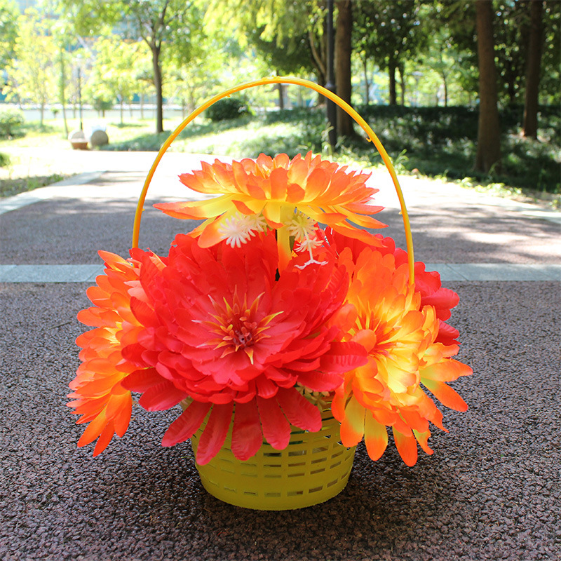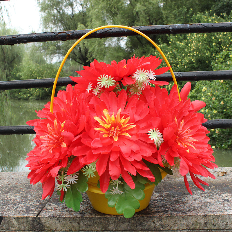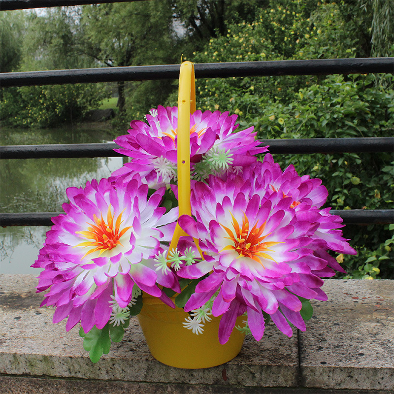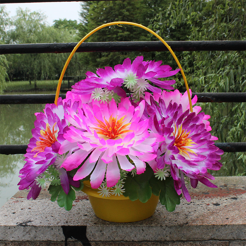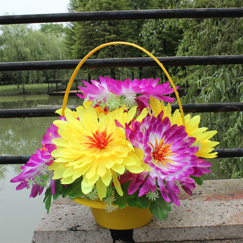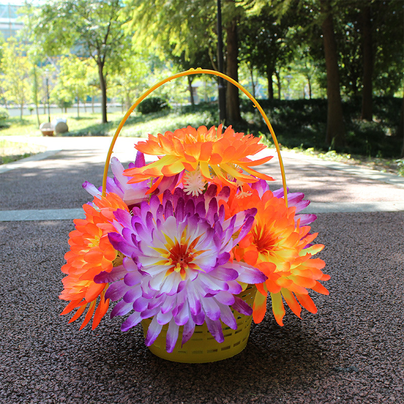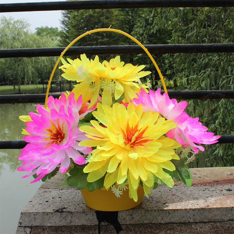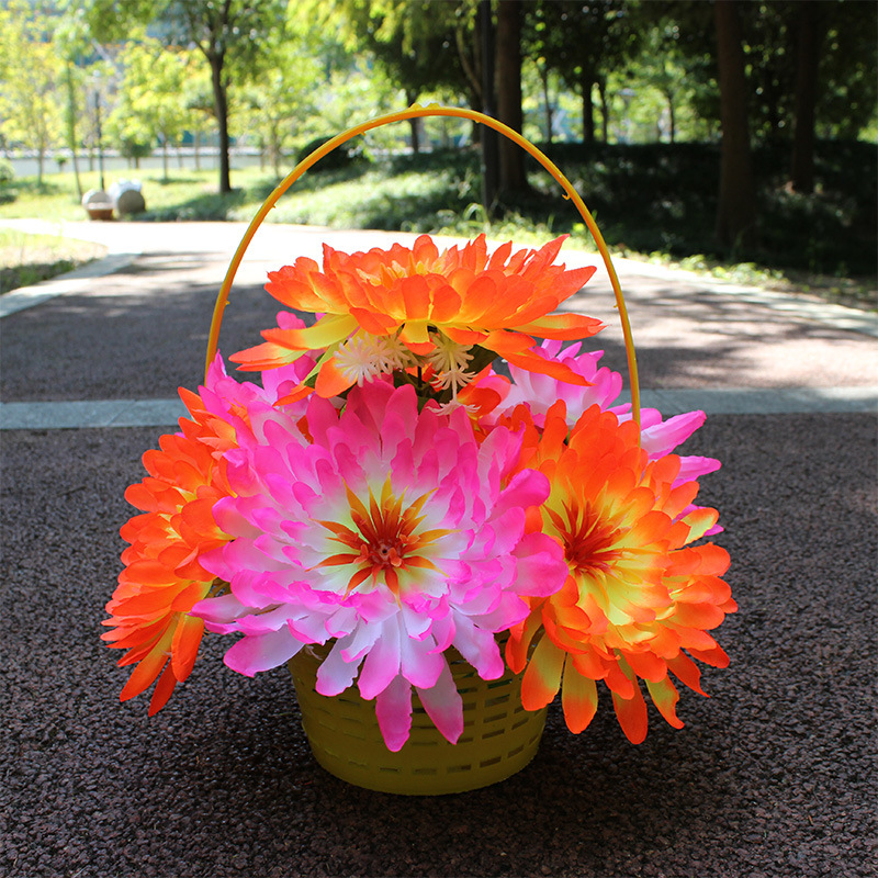 便宜绢花菊花篮清明花仿真花扫墓花假花篮祭祀花盘景花公墓装饰花