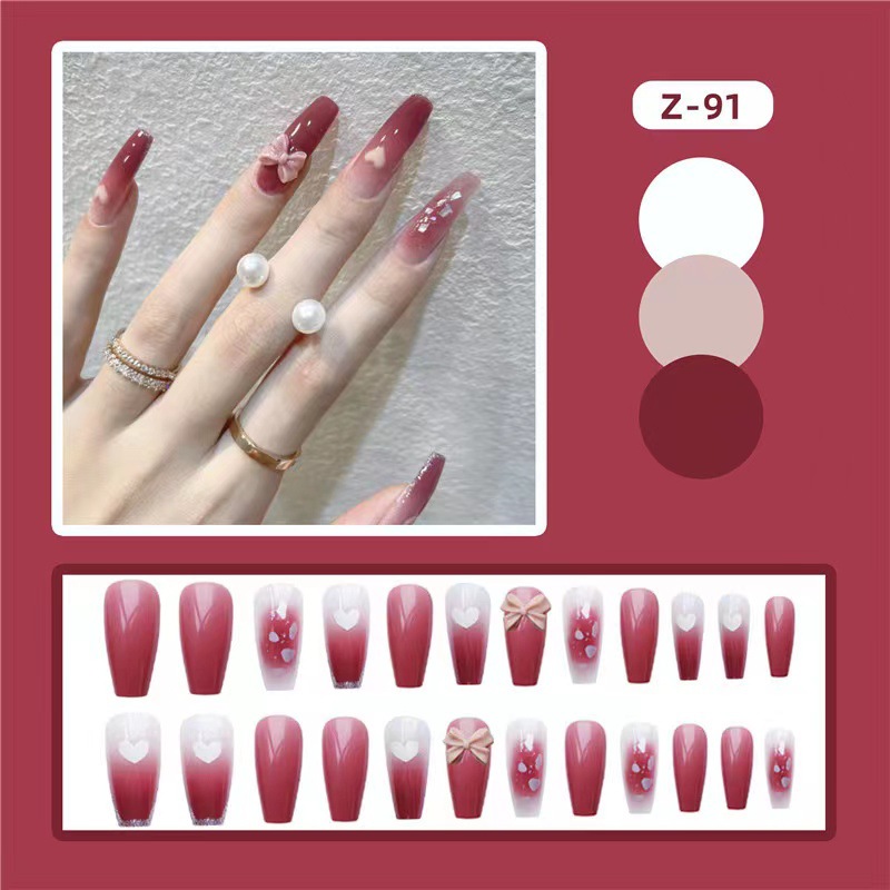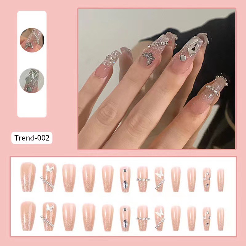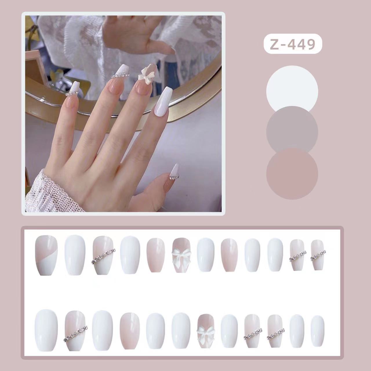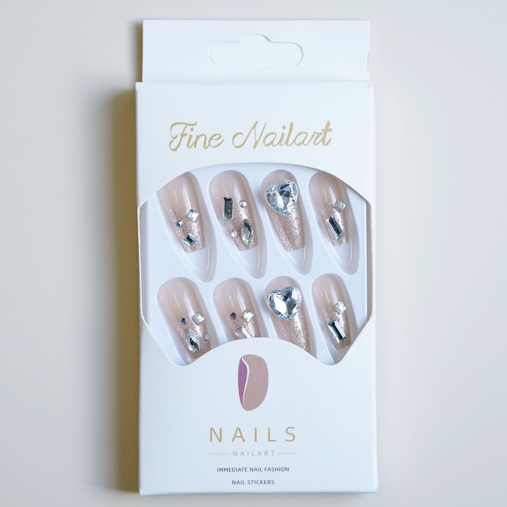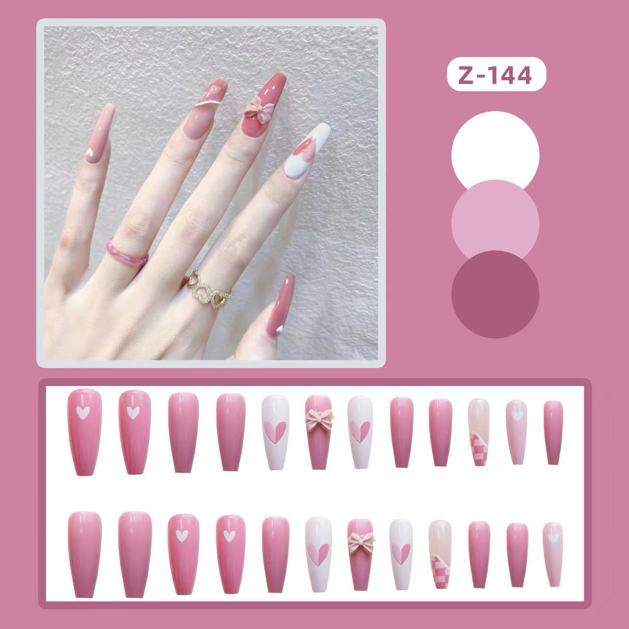 美甲组合裸色心碎假指甲跨境甲片美甲贴24片成品批发Fake Nails