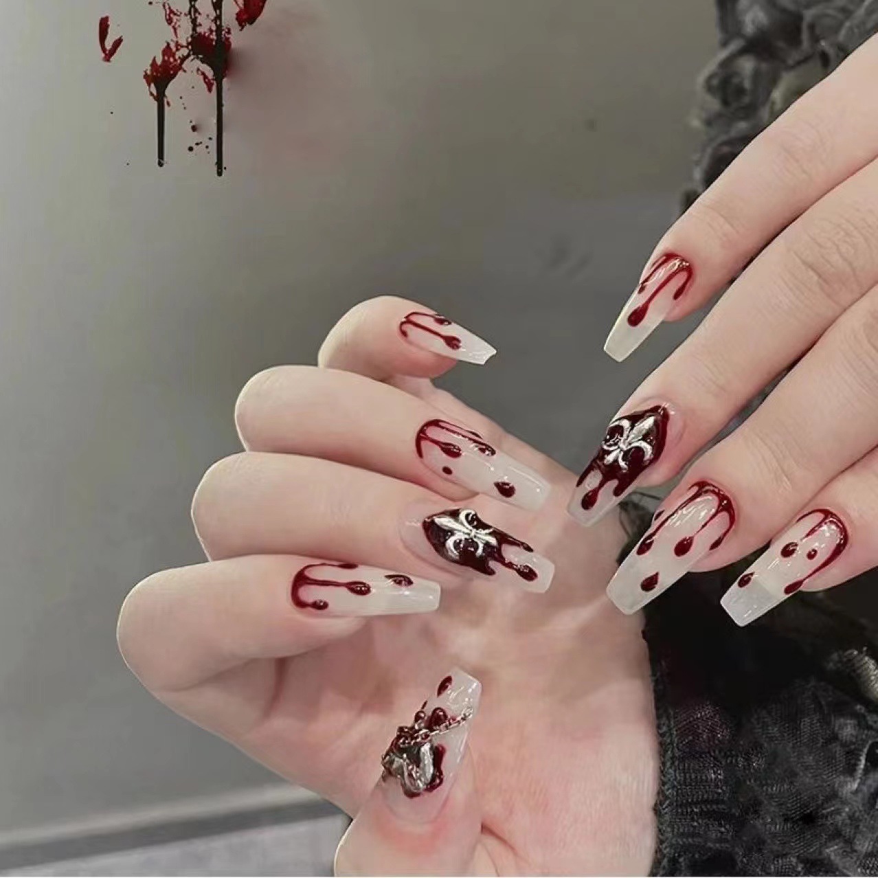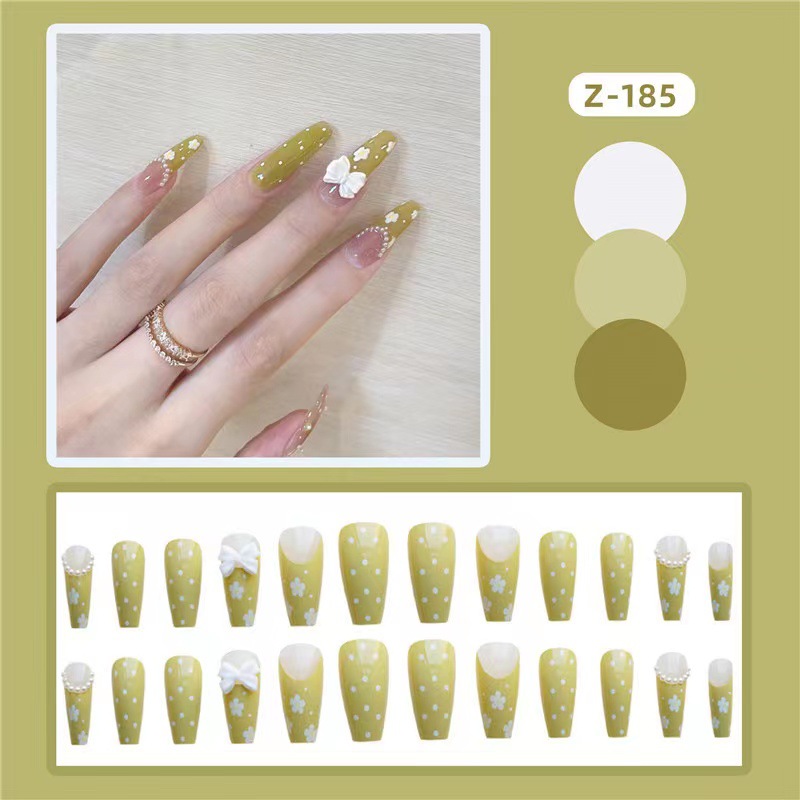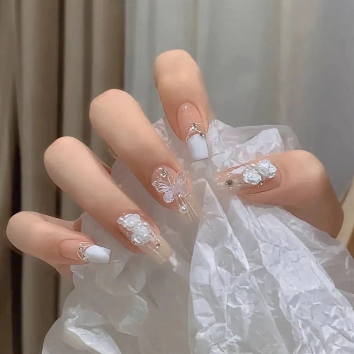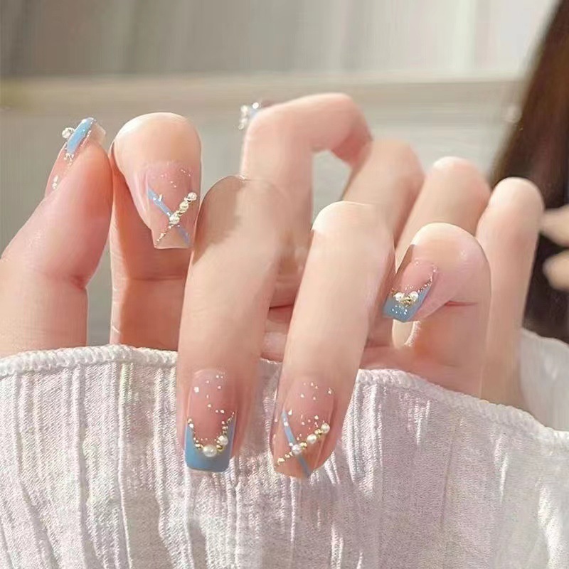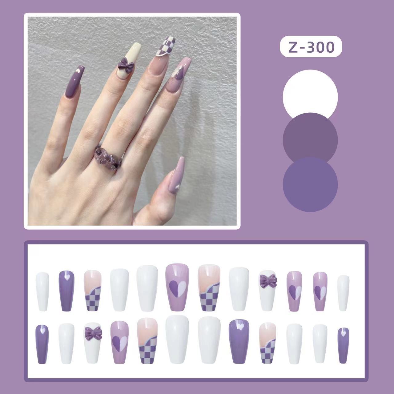 美甲组合裸色心碎假指甲跨境甲片美甲贴24片成品批发Fake Nails