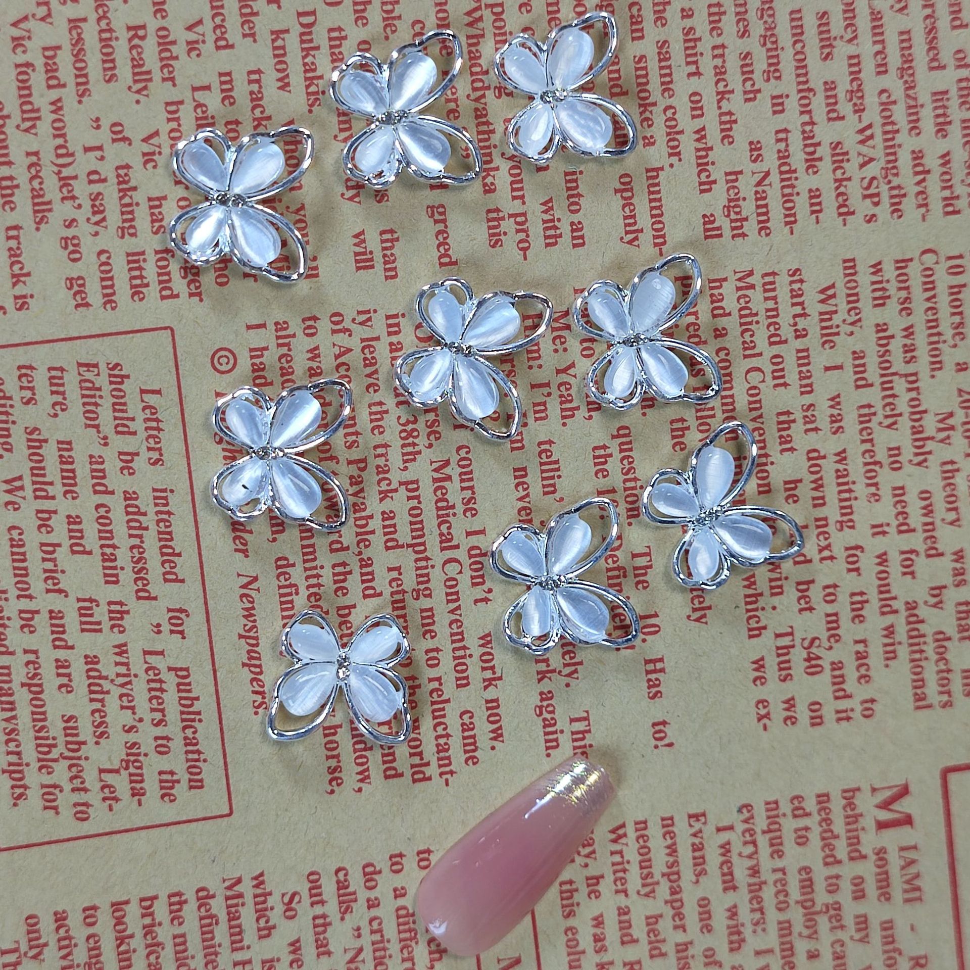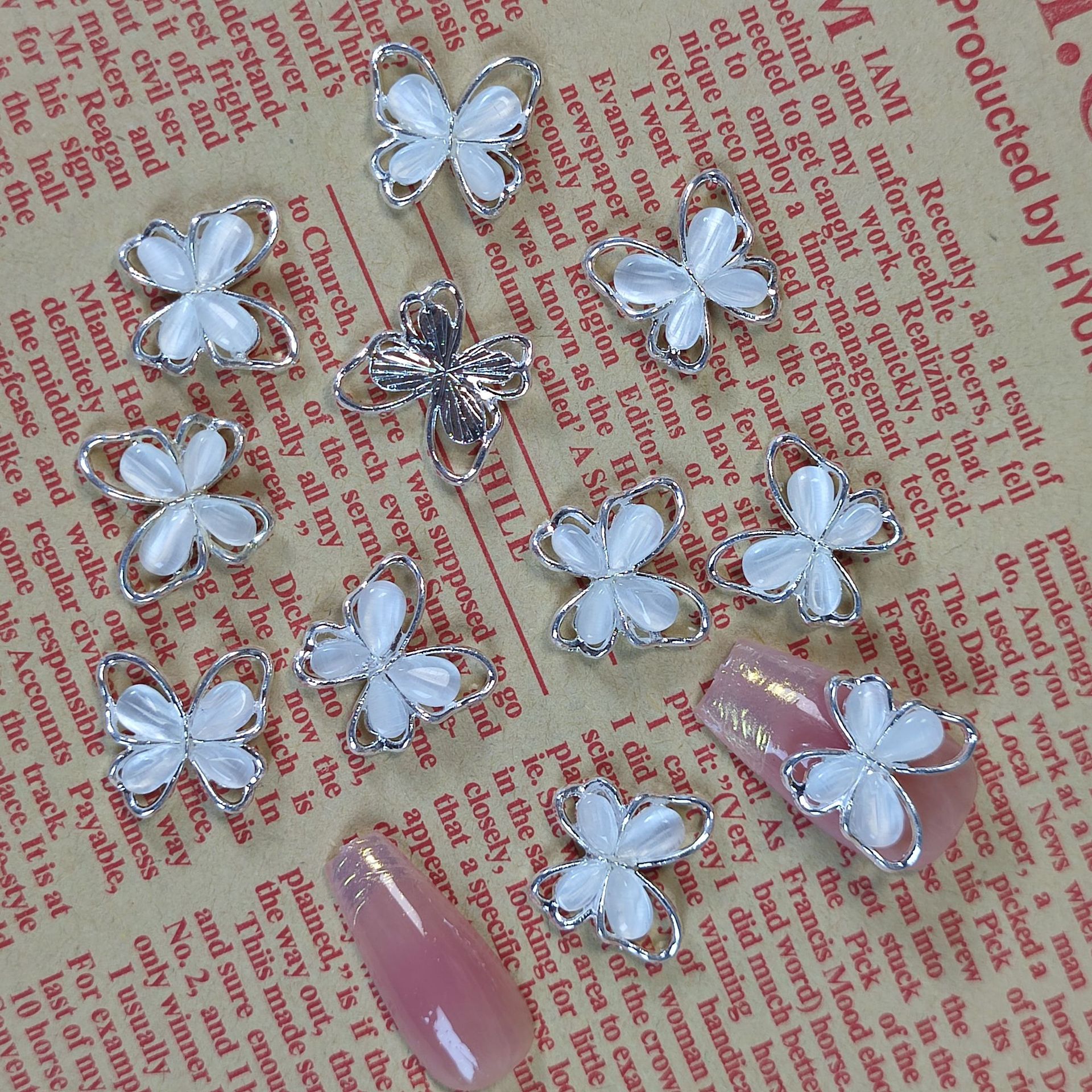 猫眼立体蝴蝶美甲饰品跨境热销指甲装配饰镂空银合金diy饰品批发