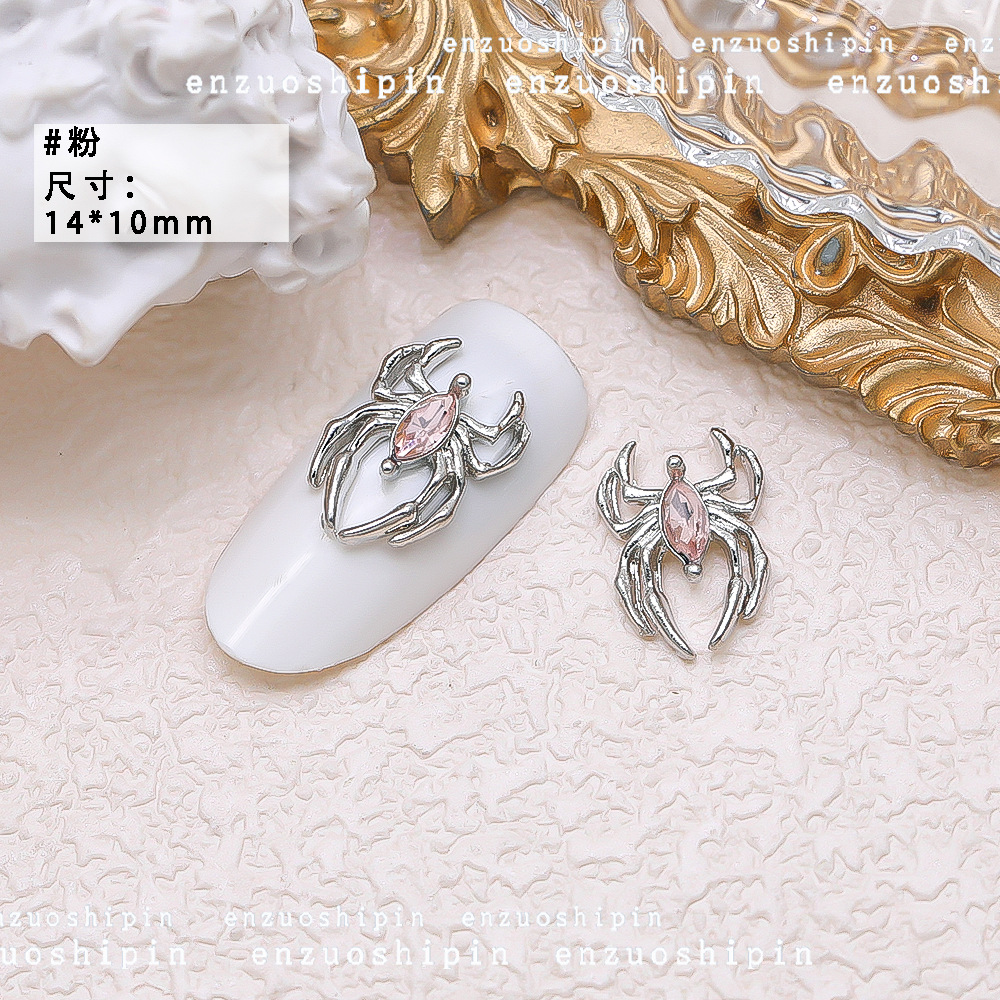 跨境直供蜘蛛金属血珠新款暗黑哥特风美甲饰品合金万圣节马眼蜘蛛