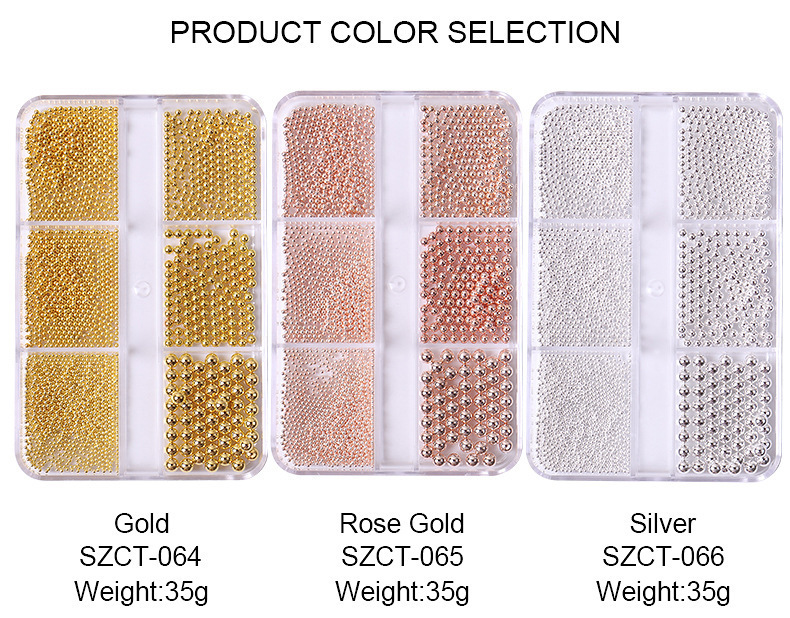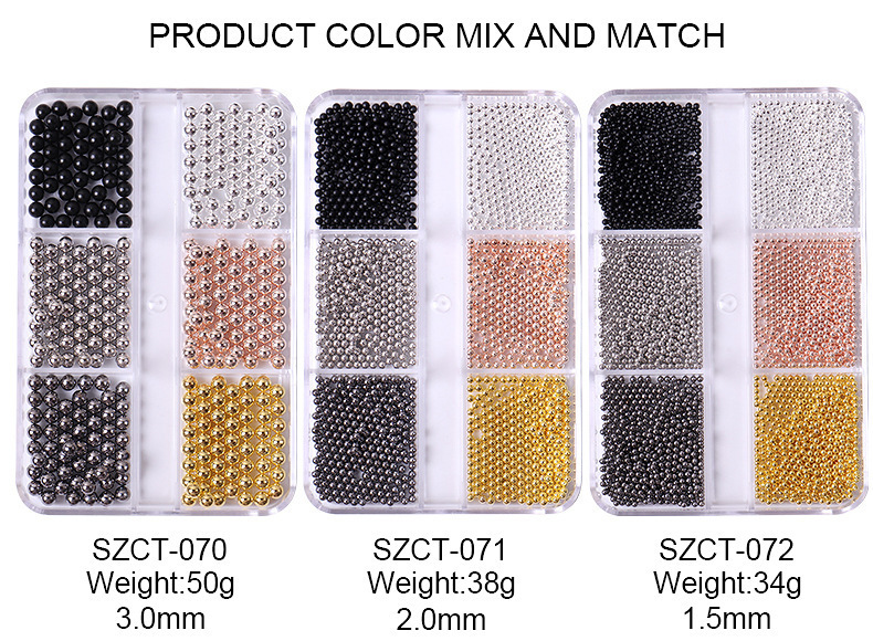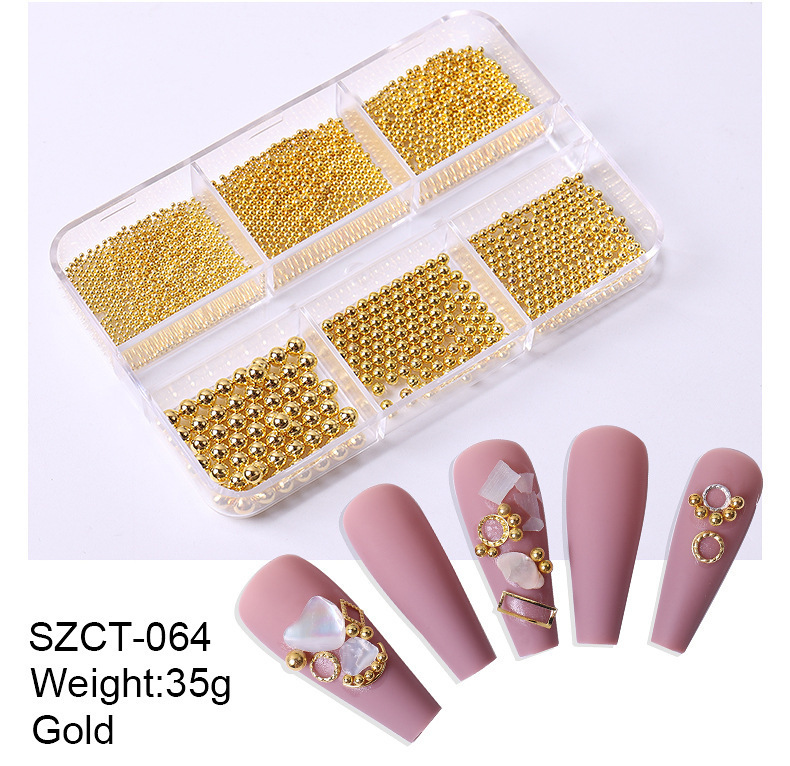 跨境美甲饰品合金美甲钢珠小号鱼子酱美甲金色小钢珠指甲饰品混装