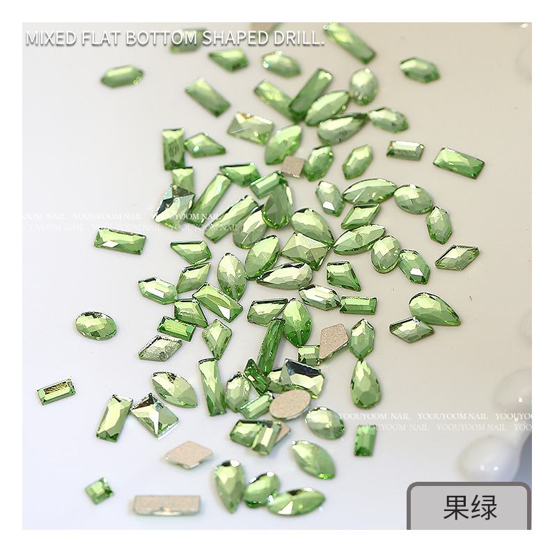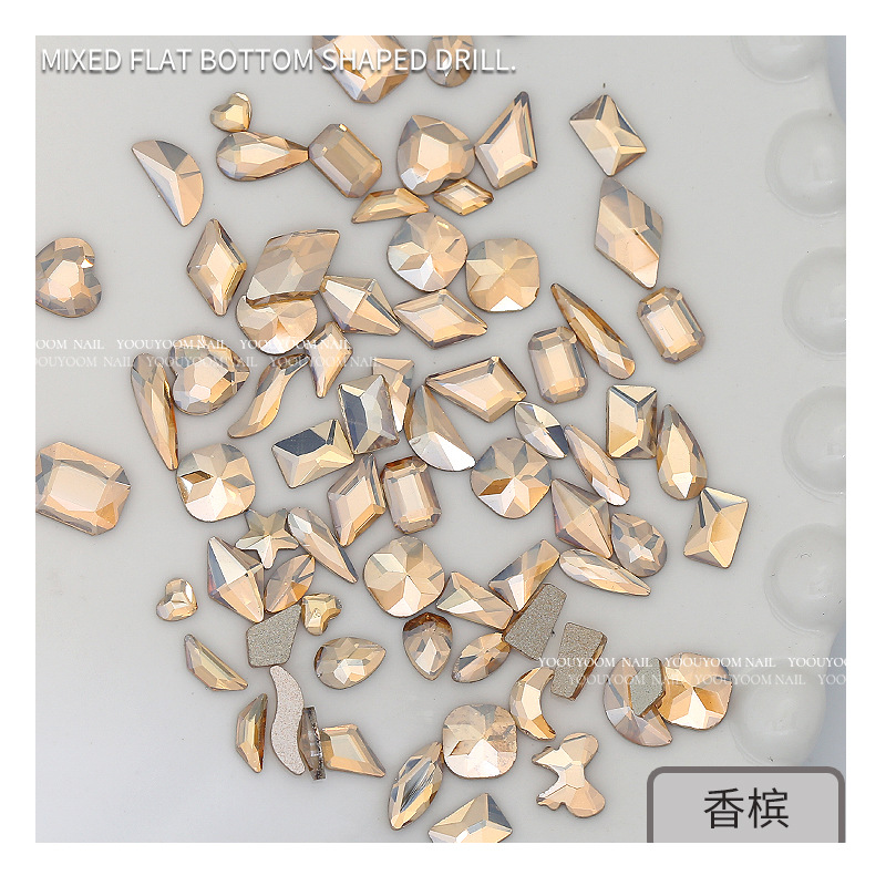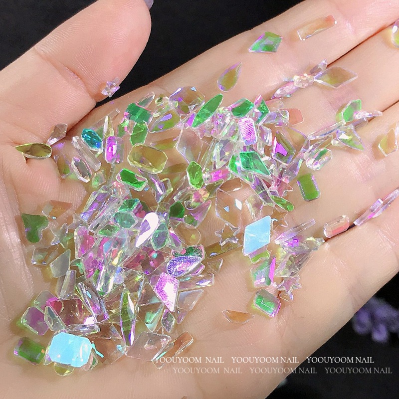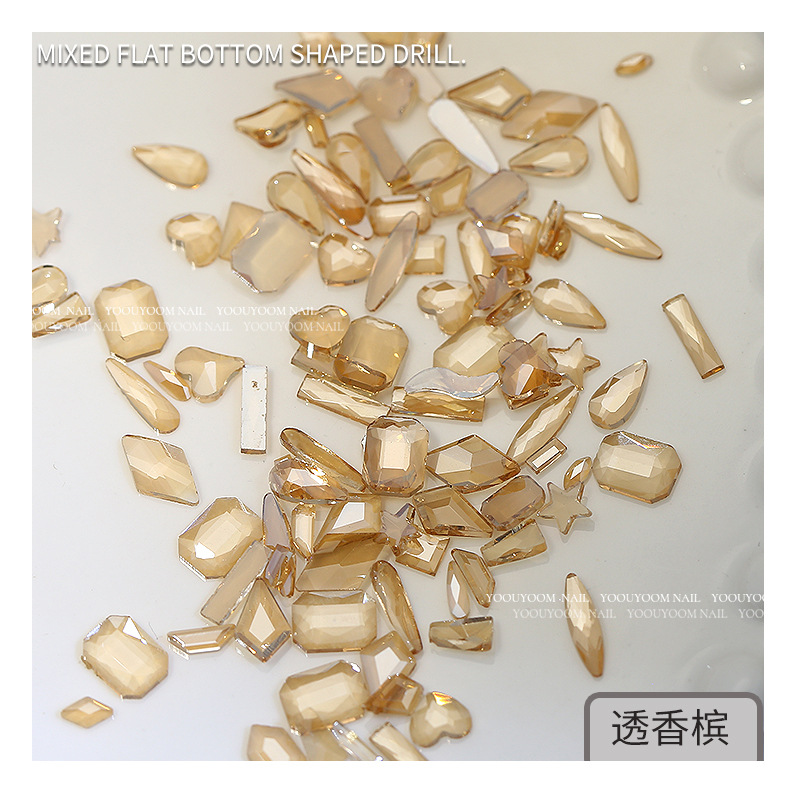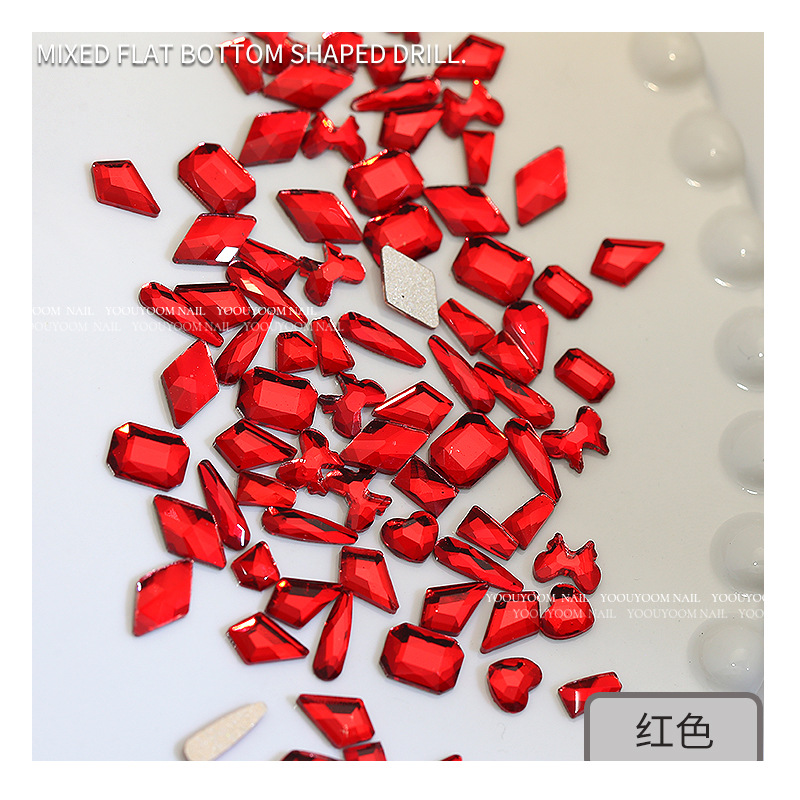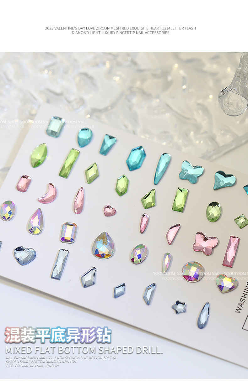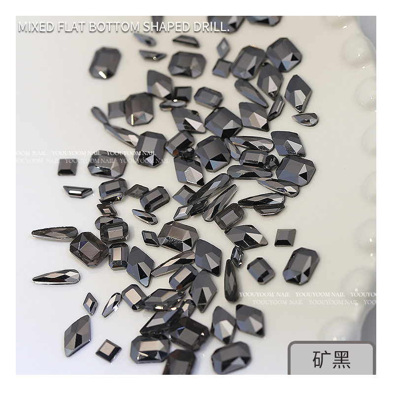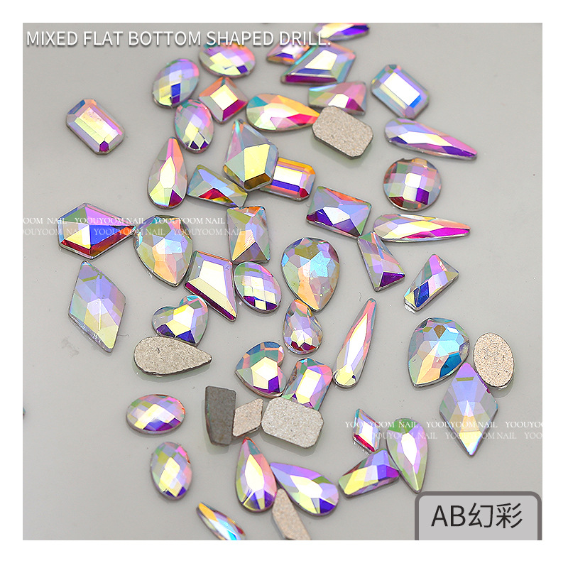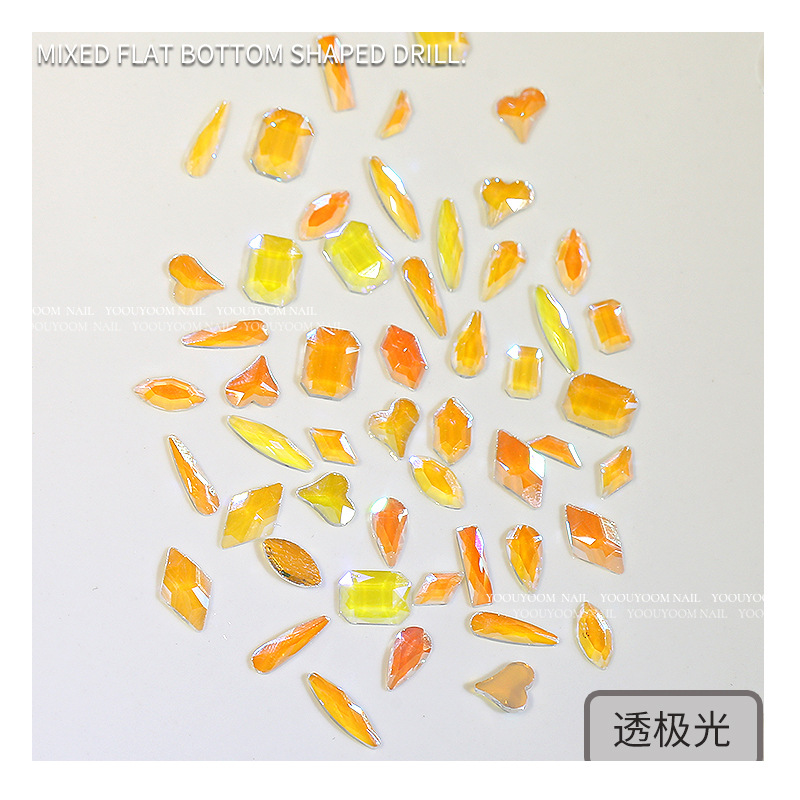 网红爆款彩色平底异形钻混装美甲饰品批发超闪极光幻彩冰透指甲钻
