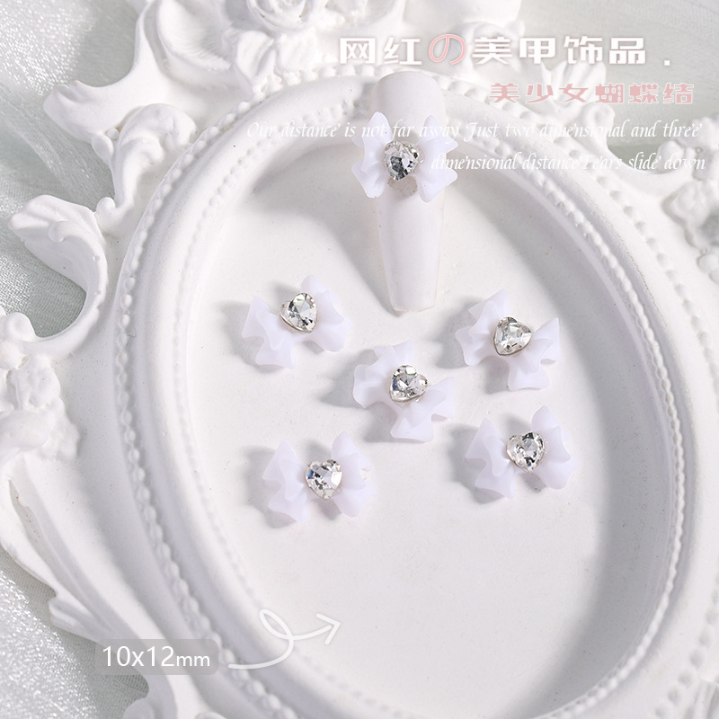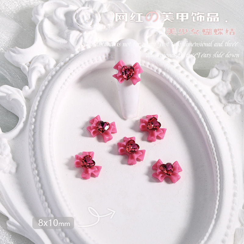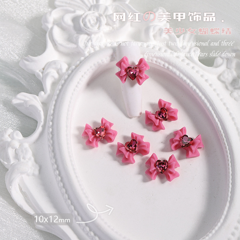 网红爆款龙心蝴蝶结美甲饰品甜心蝴蝶结粉嫩少女心指甲钻配饰批发