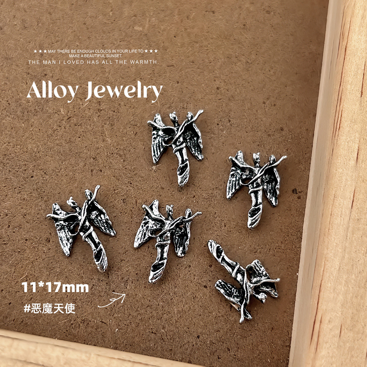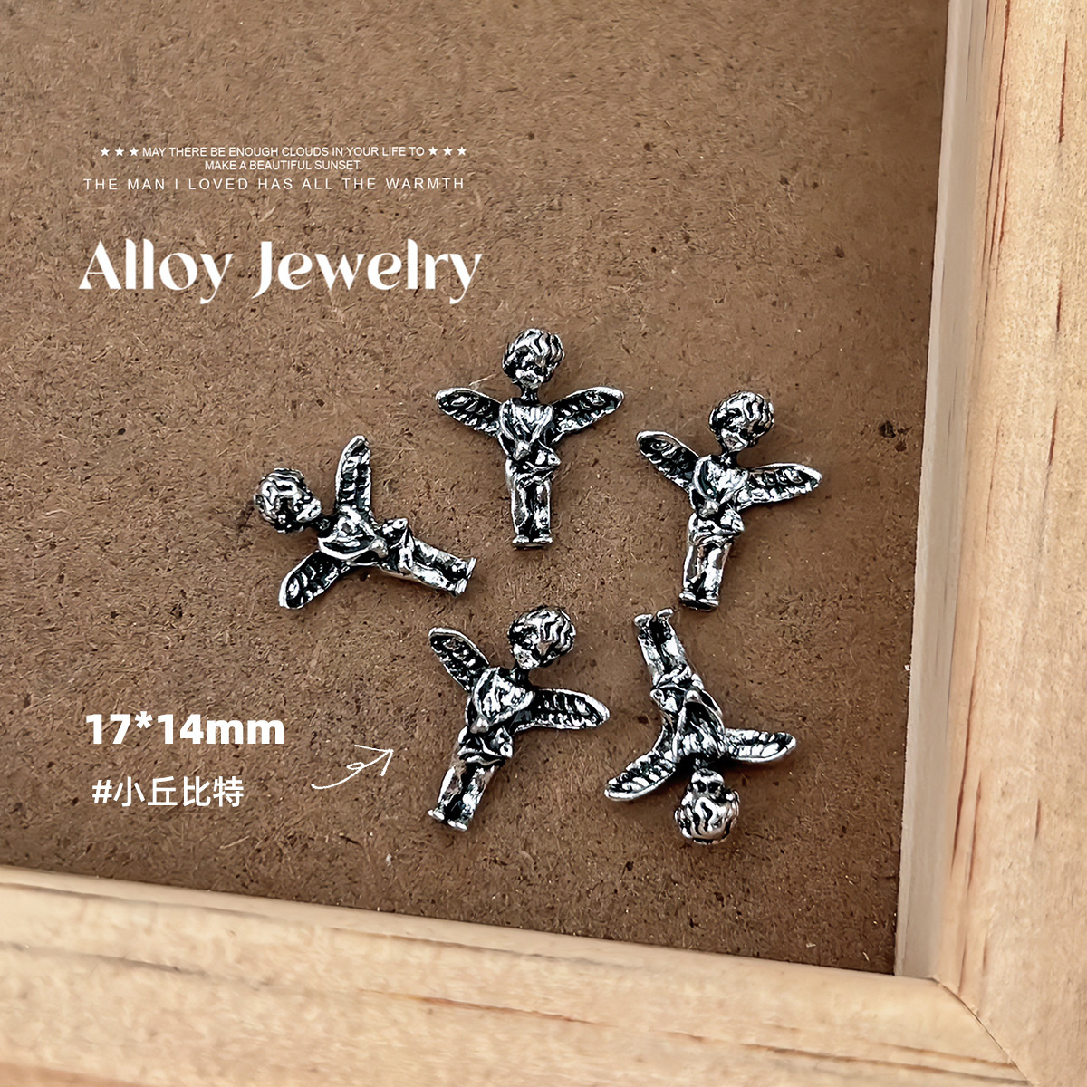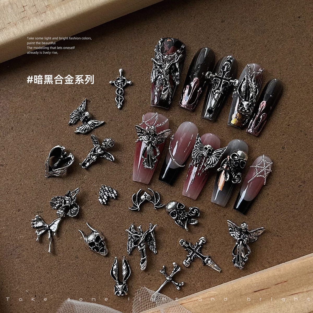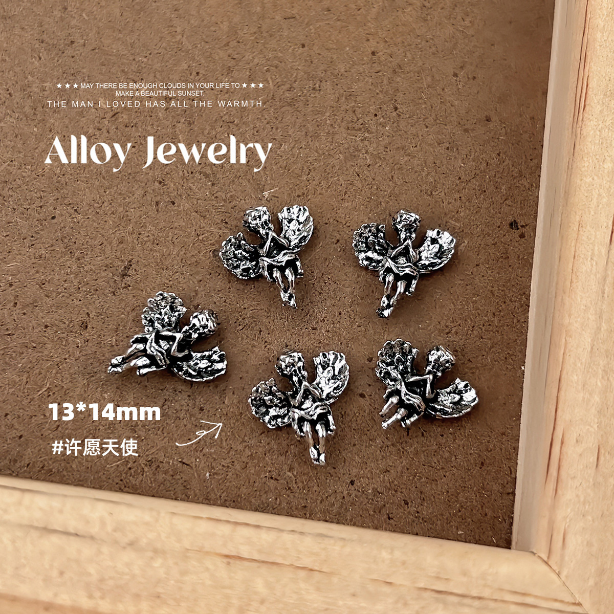 复古银色暗黑风美甲克罗星十字架骷髅许愿天使小丘比特蝴蝶饰品