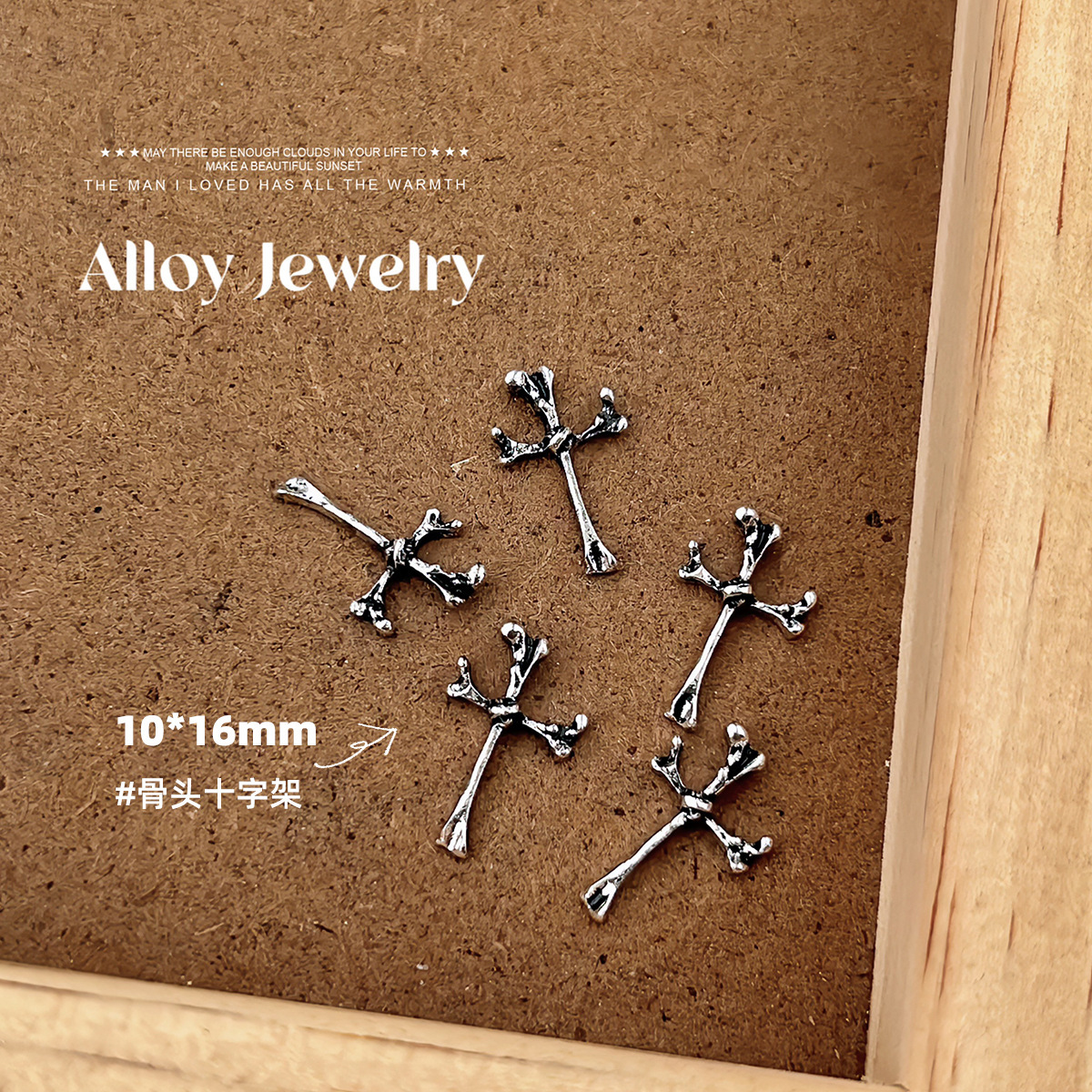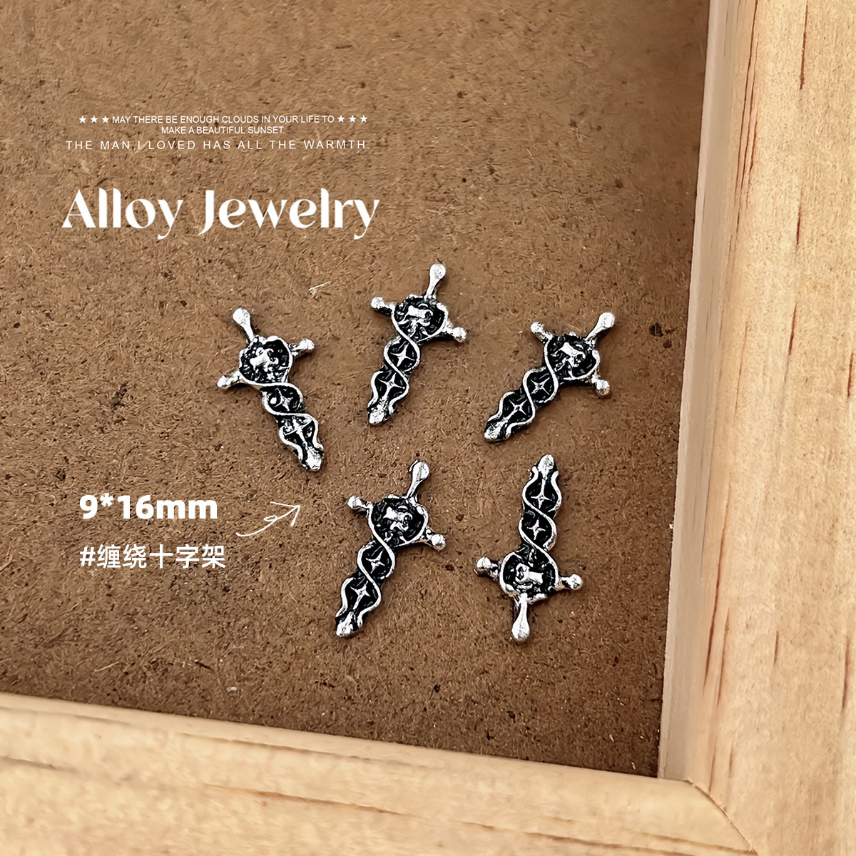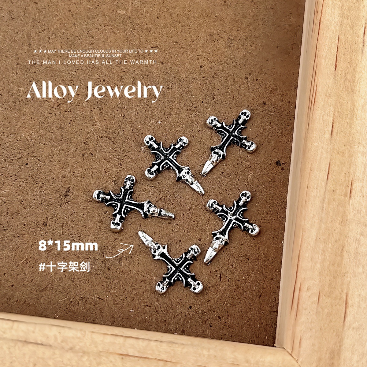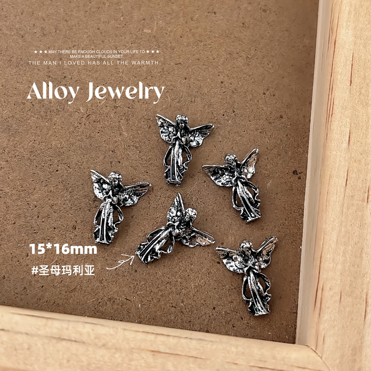复古银色暗黑风美甲克罗星十字架骷髅许愿天使小丘比特蝴蝶饰品