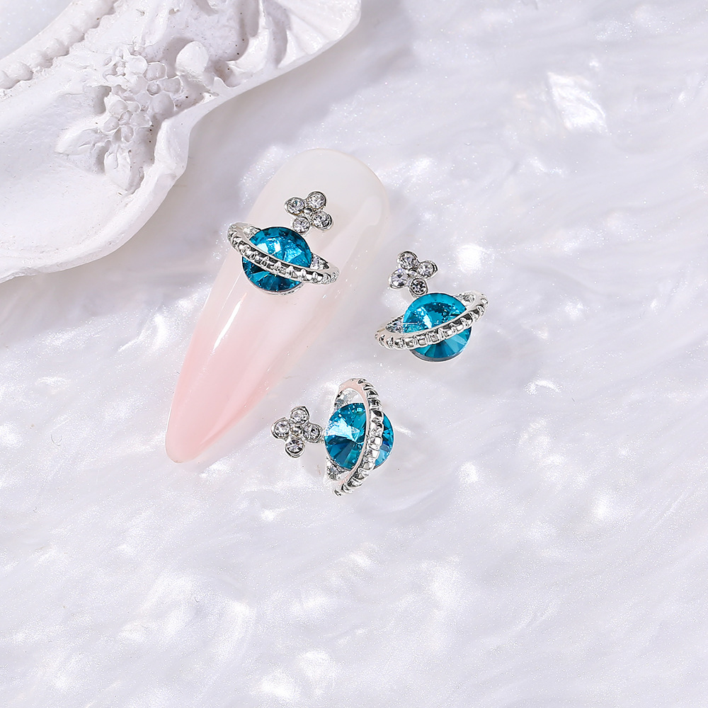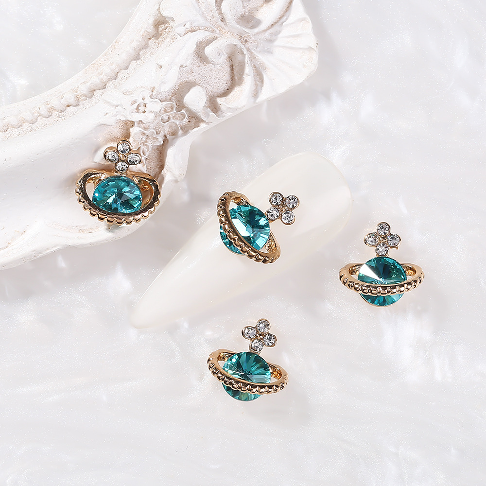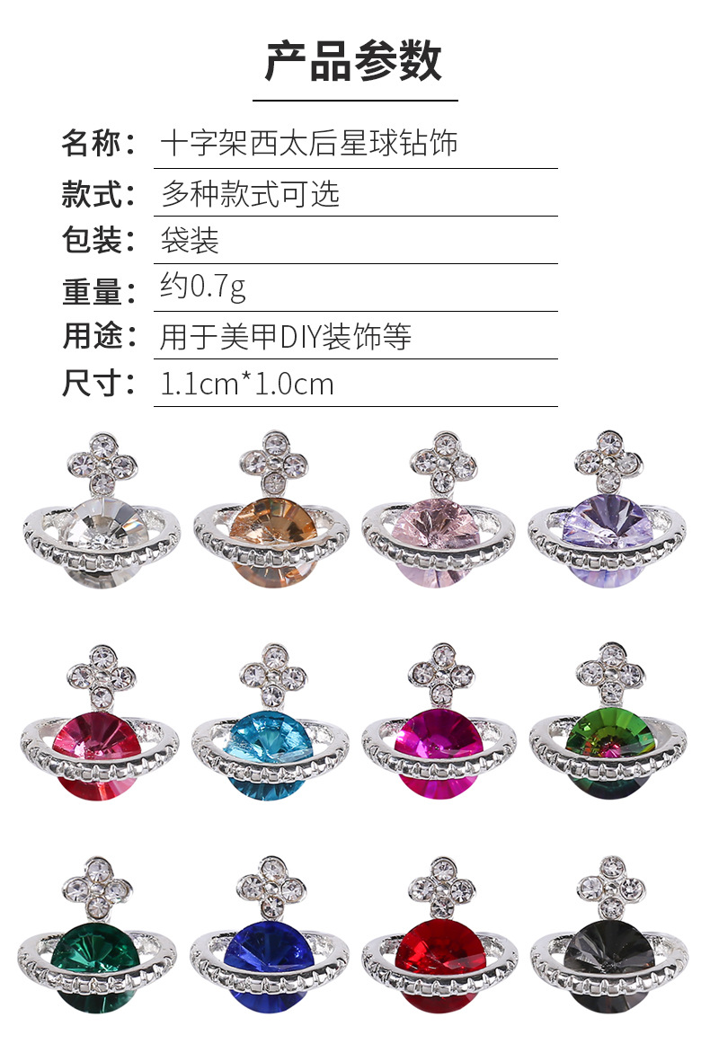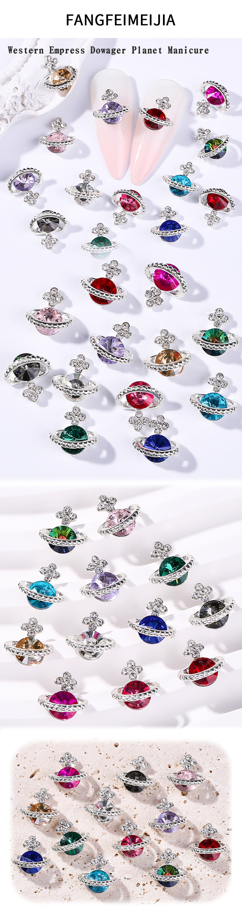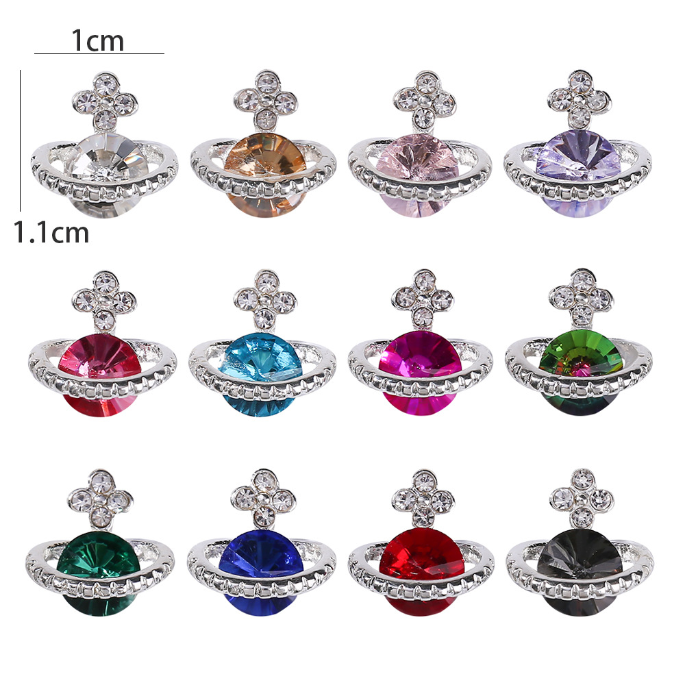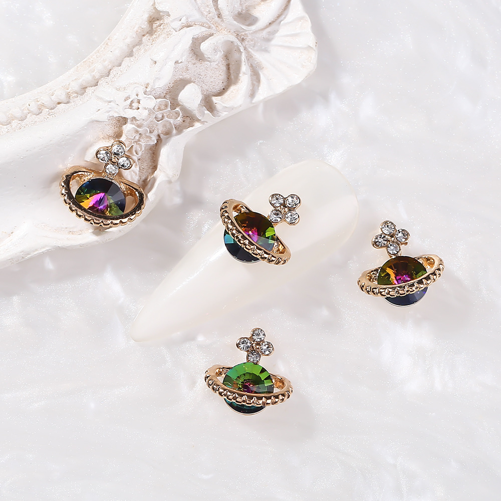 跨境爆款西太后星球美甲合金饰品闪亮多色轻奢镶钻土星指甲贴饰品