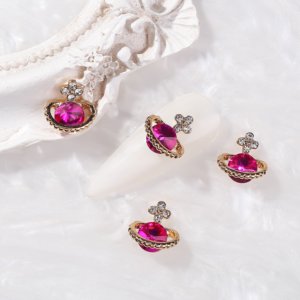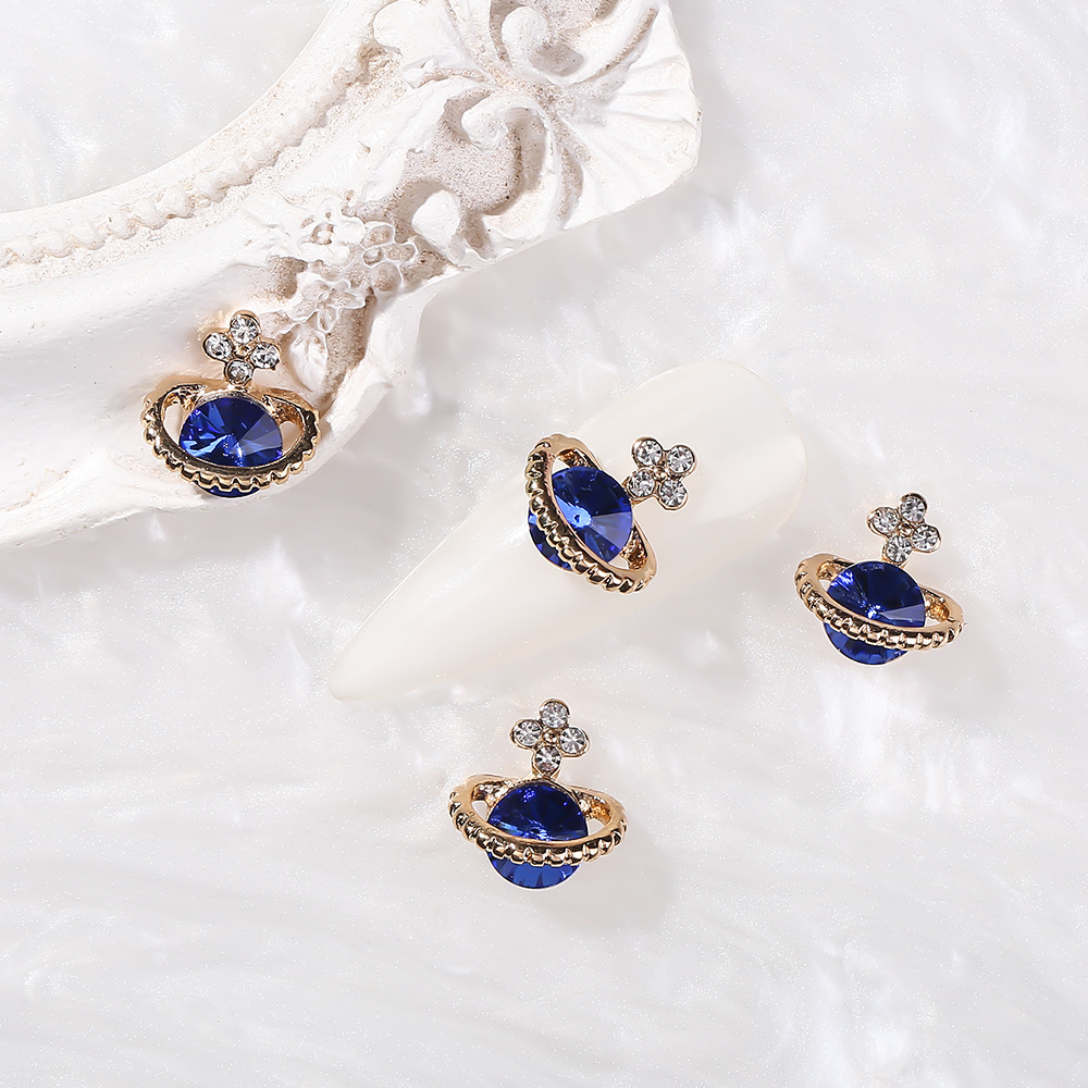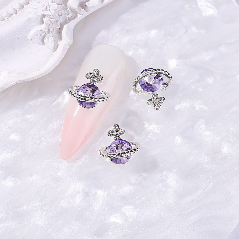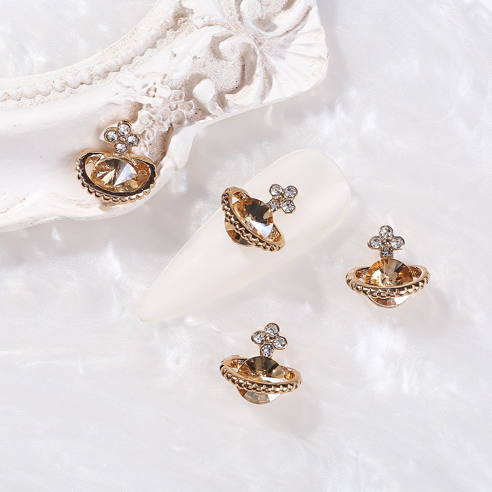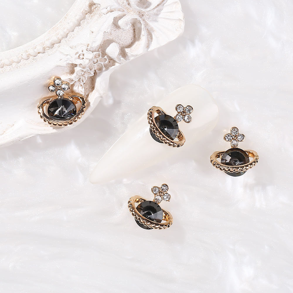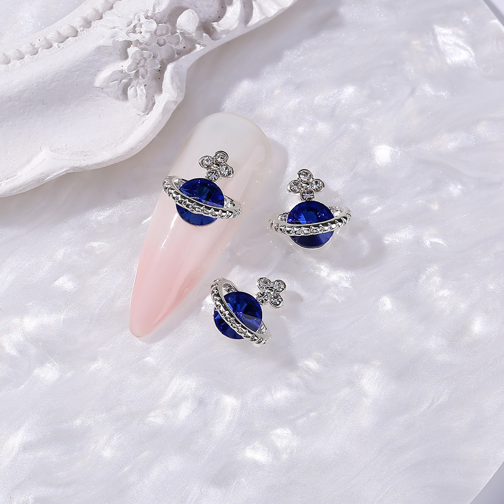 跨境爆款西太后星球美甲合金饰品闪亮多色轻奢镶钻土星指甲贴饰品