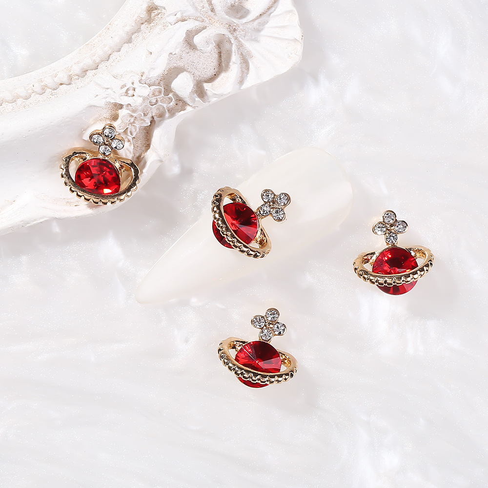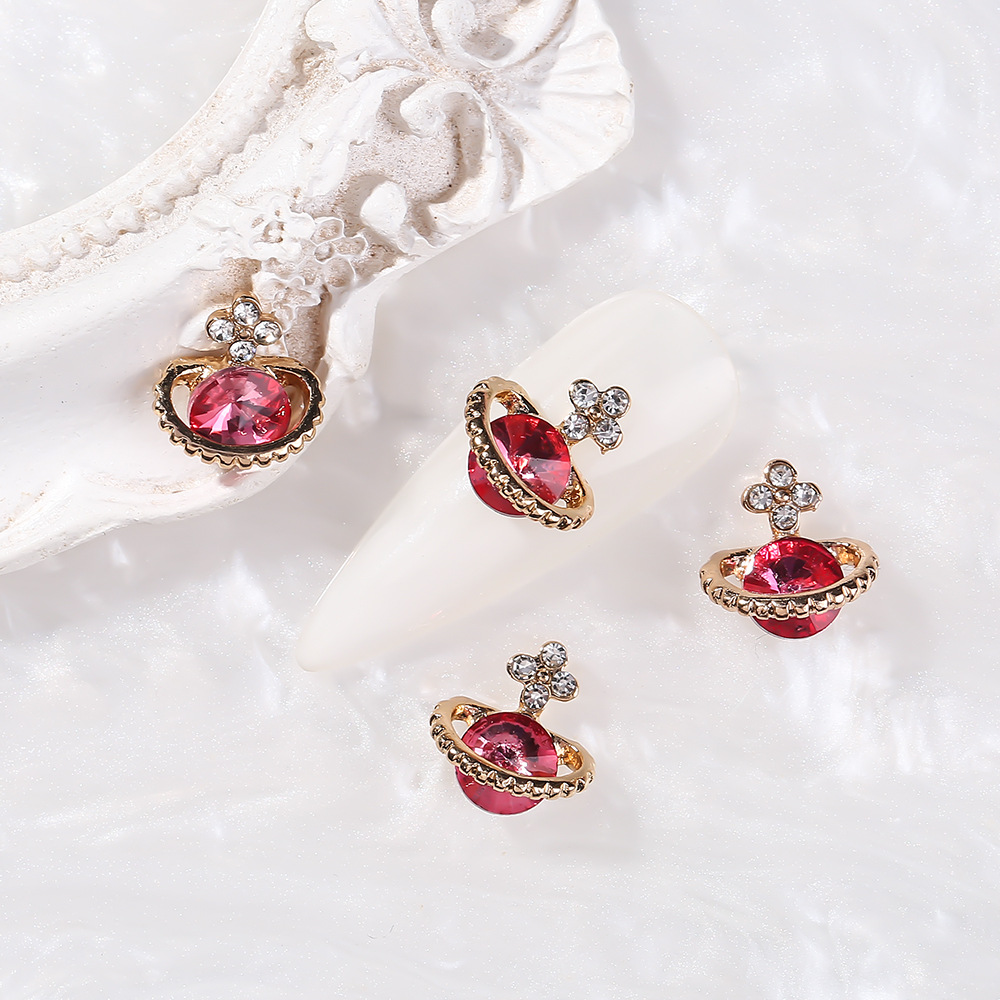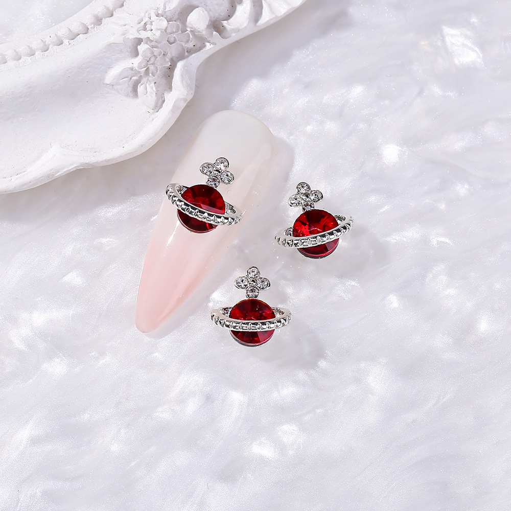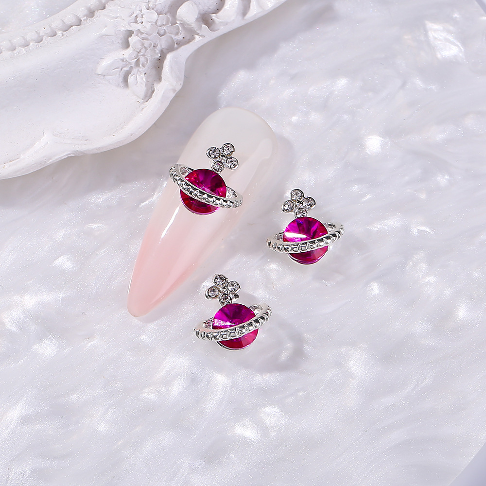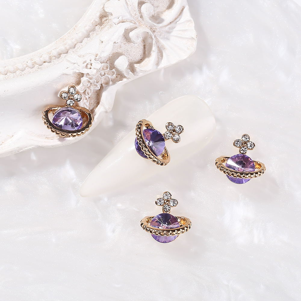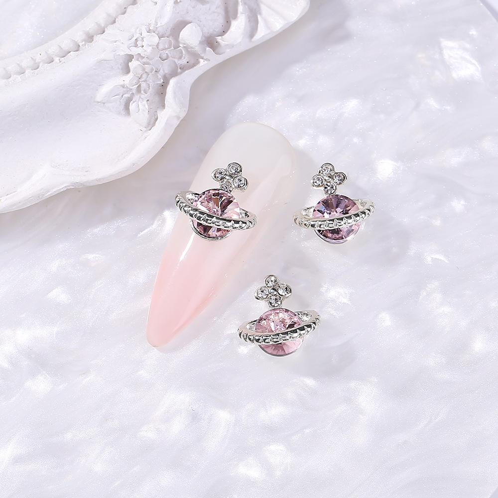 跨境爆款西太后星球美甲合金饰品闪亮多色轻奢镶钻土星指甲贴饰品