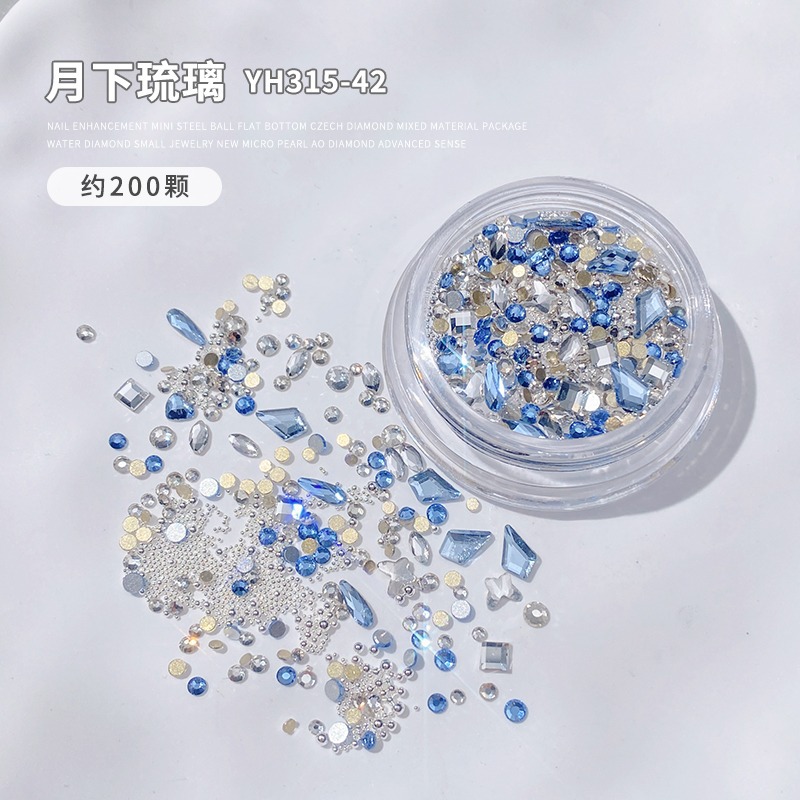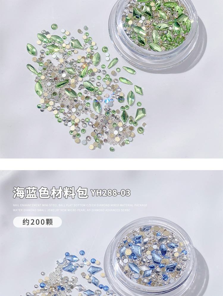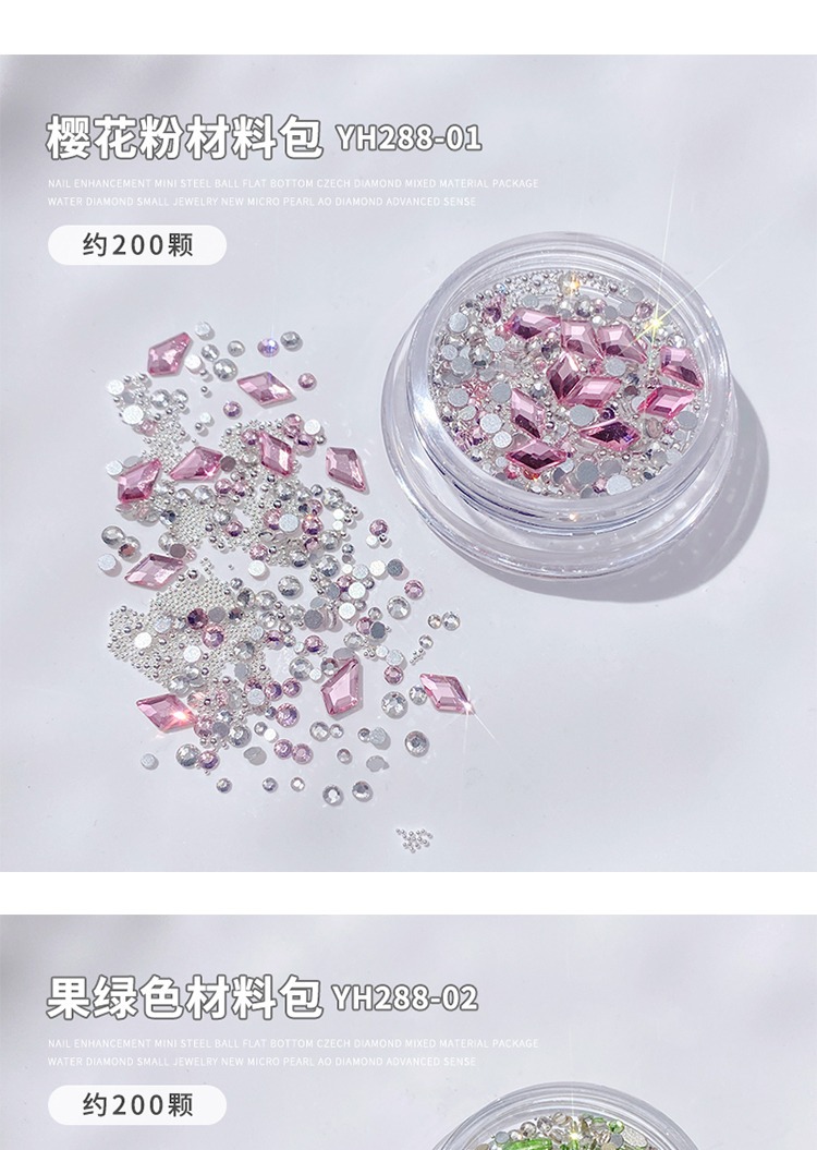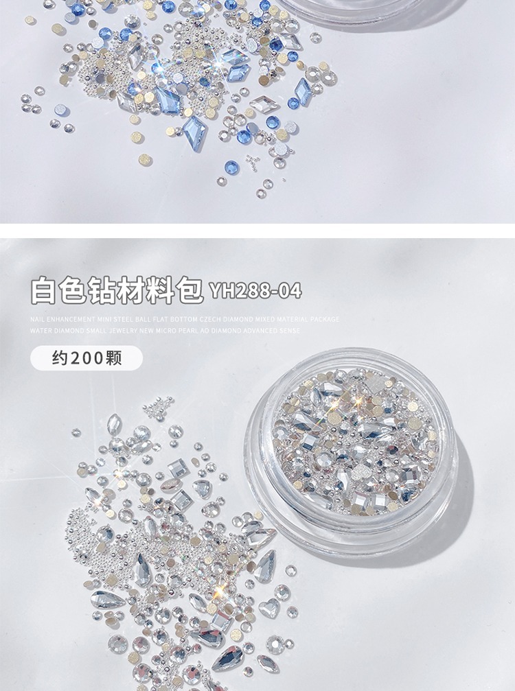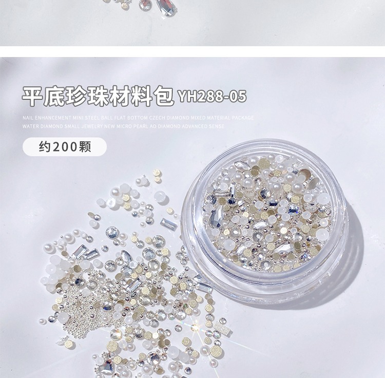 美甲混装饰品2024新款高级迷你珍珠平底捷克钻混装指甲装饰材料包