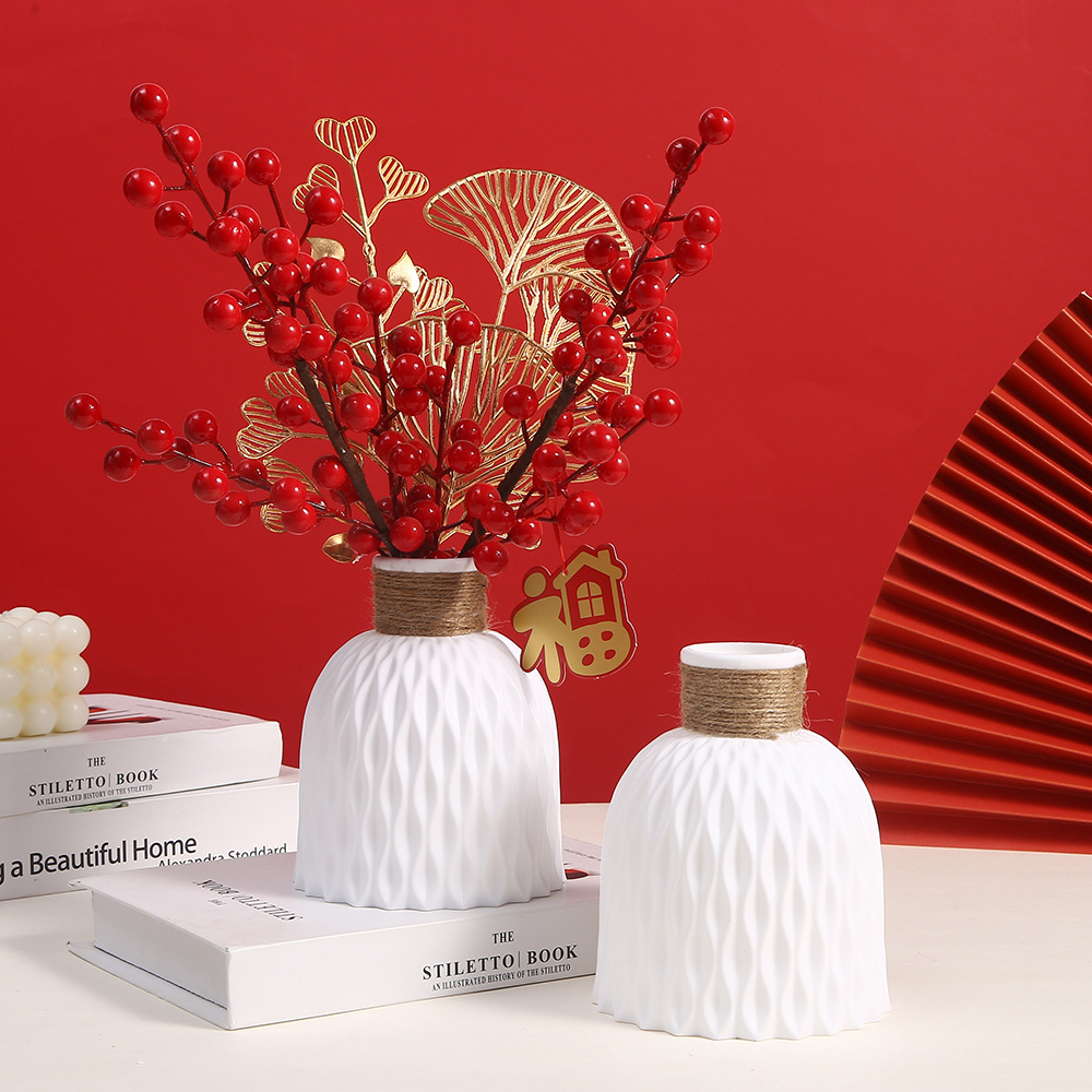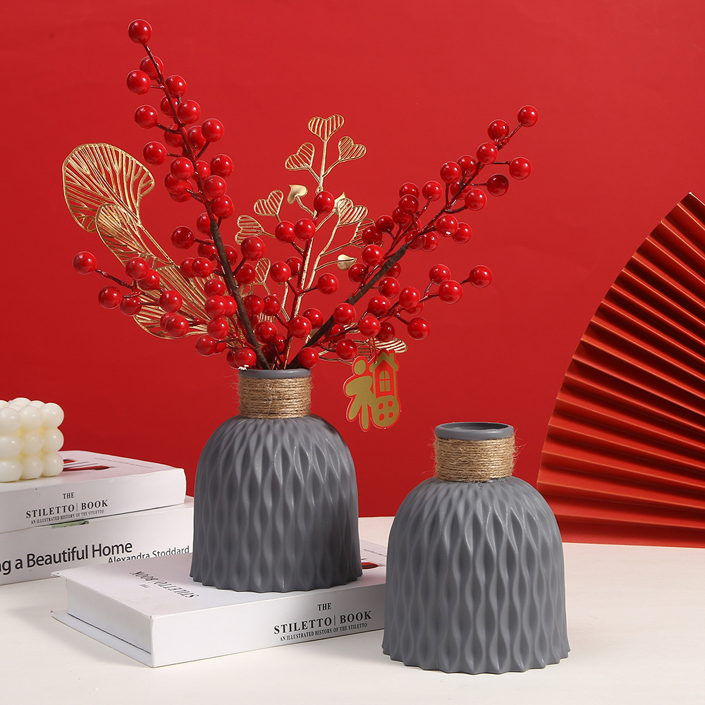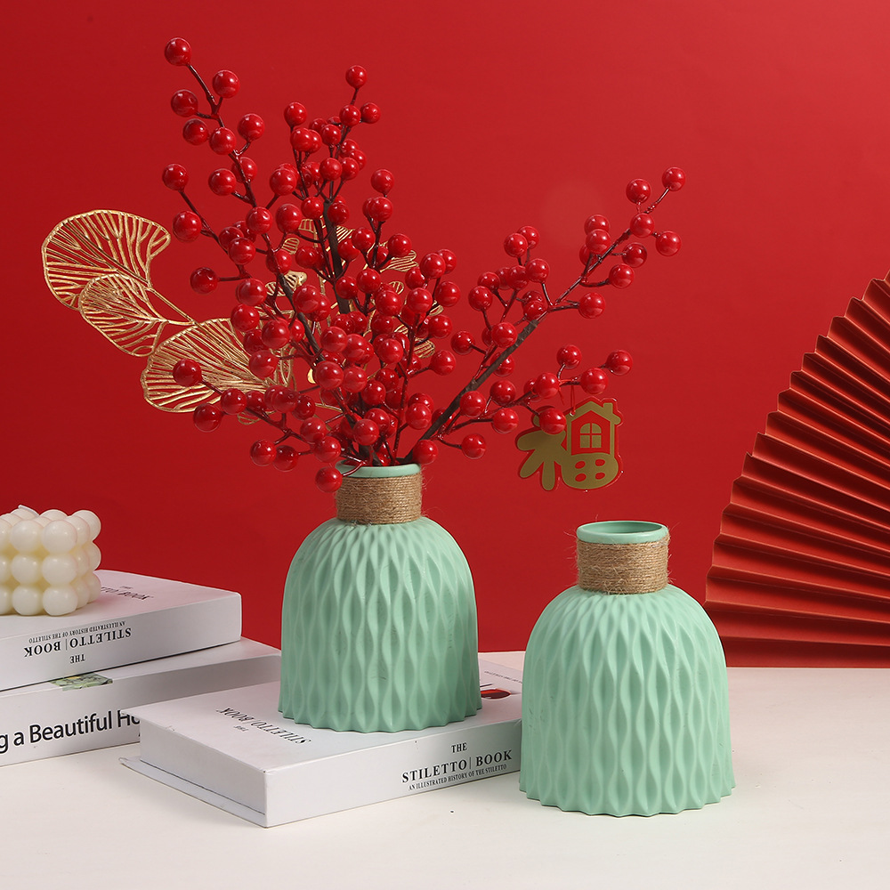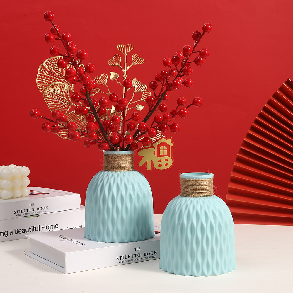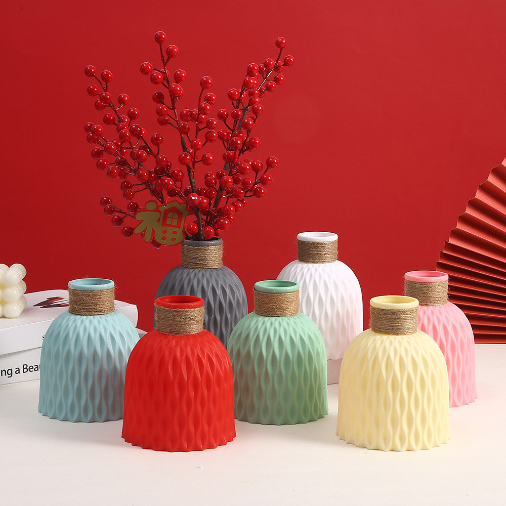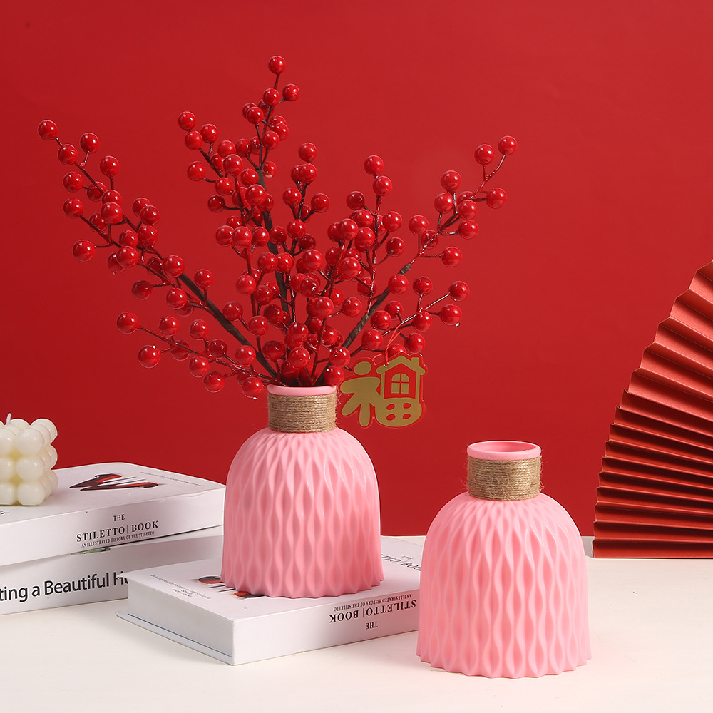 塑料花盆工厂手工扭扭棒花瓶时尚摆件仿真装饰乔迁红果摆件瓶子