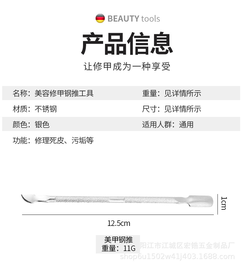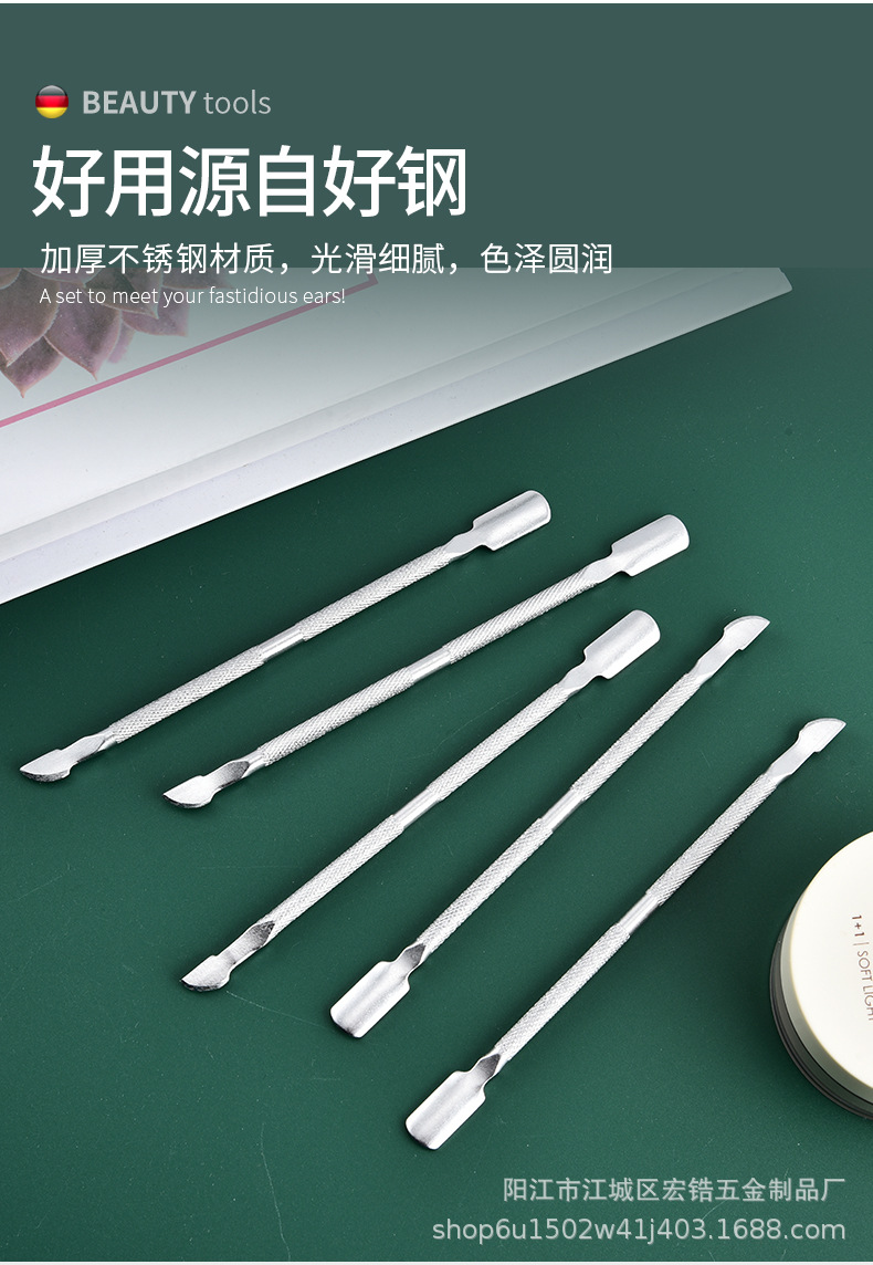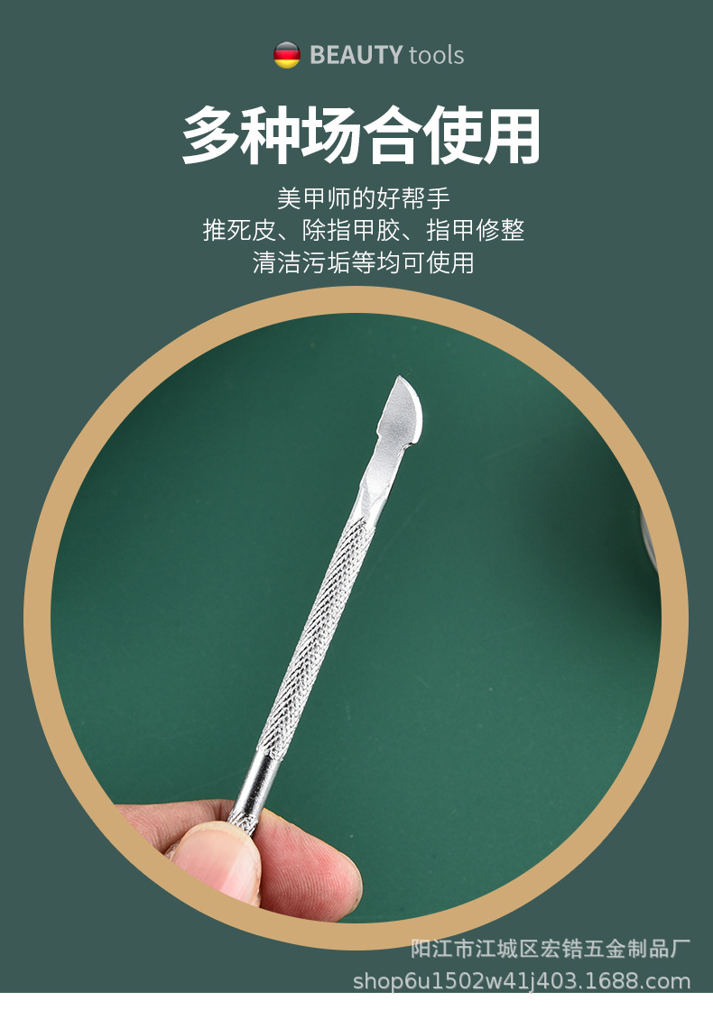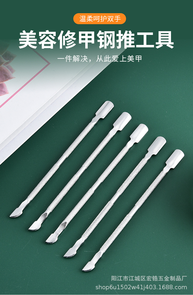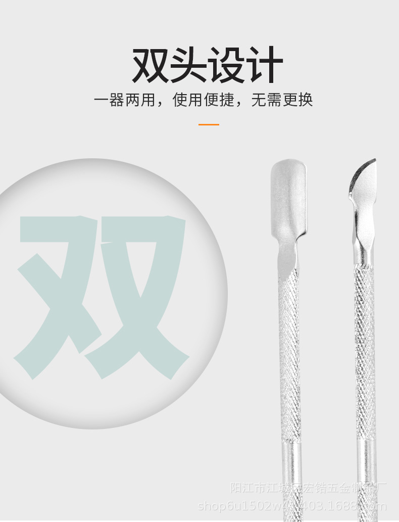 厂家现货不锈钢美甲死皮推 双头指甲推刨甲 卸甲家用钢推护理工具