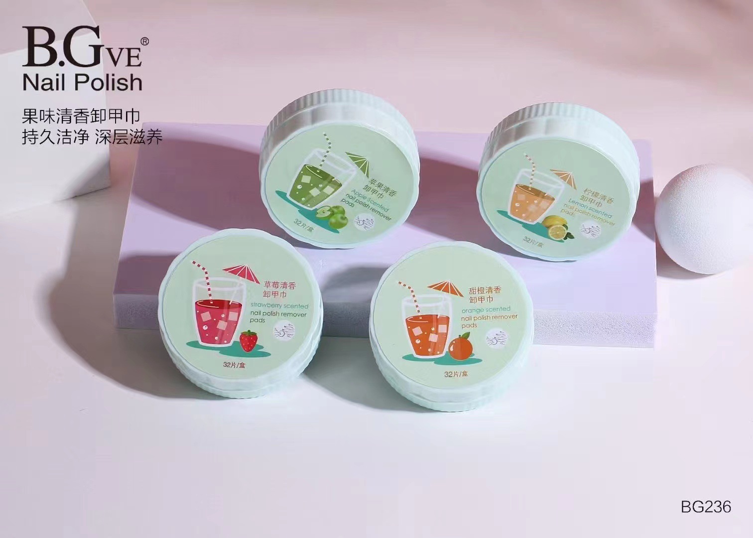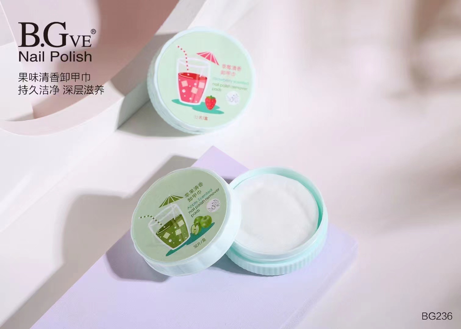 BGve洗甲水卸甲巾指甲油卸甲巾水果味32片装撕拉指甲油用品甲巾