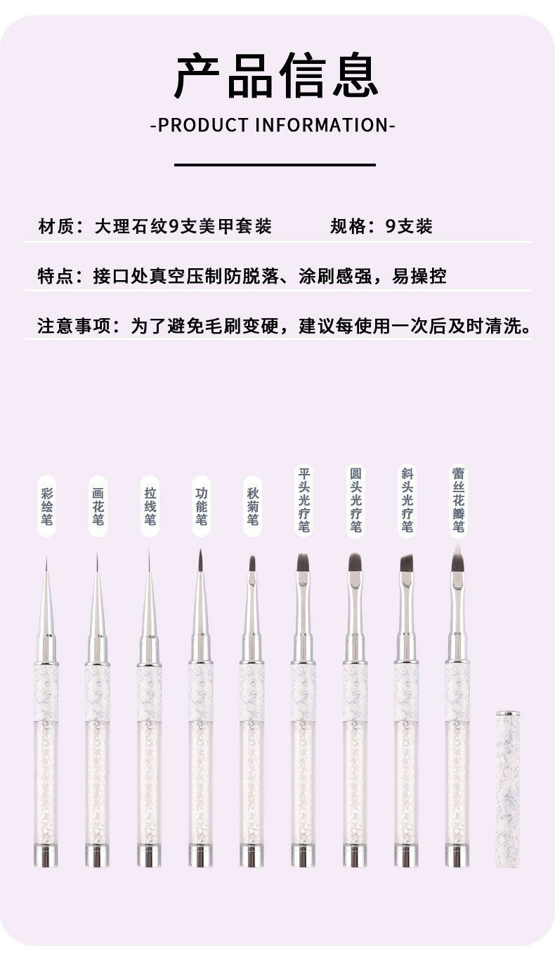美甲笔套装金属笔杆美甲刷子美甲专用极细光疗笔全套一件代发