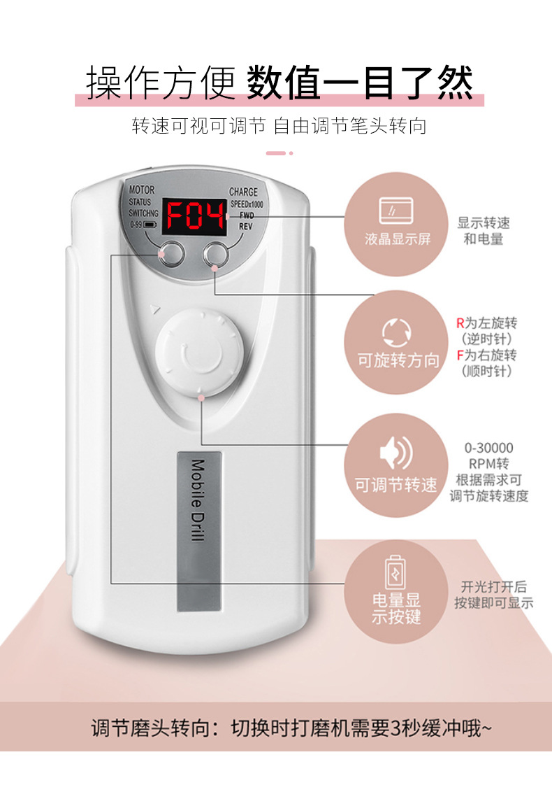 美甲打磨机电动便携式小型充电款专业卸指甲机器工具美甲店专用