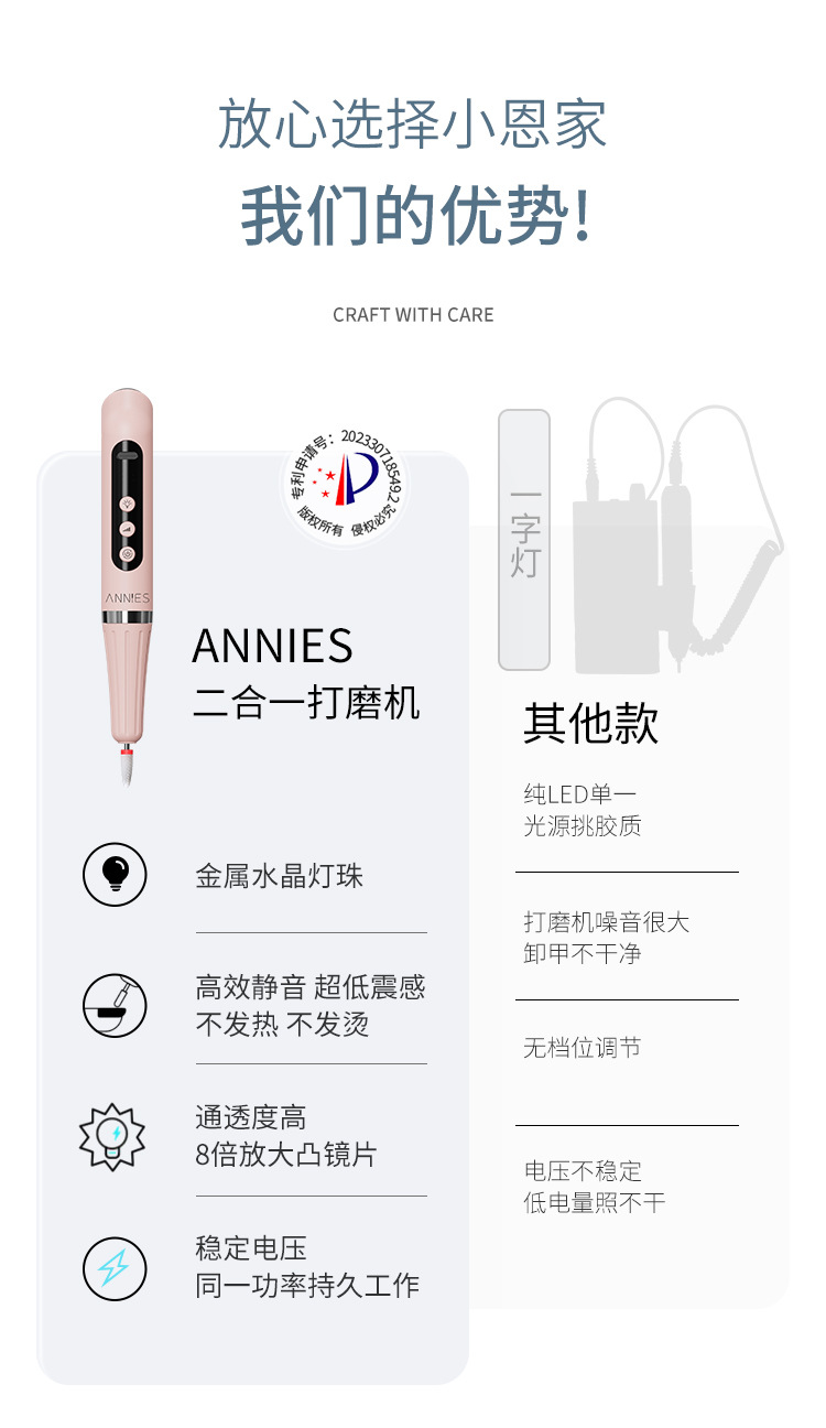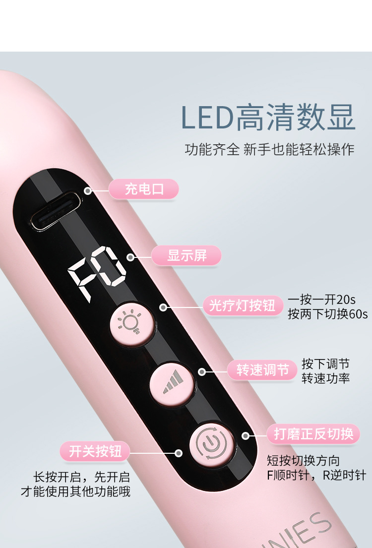 新款多功能二合一打磨笔一字灯美甲手持便携蓄电款光疗灯打磨机