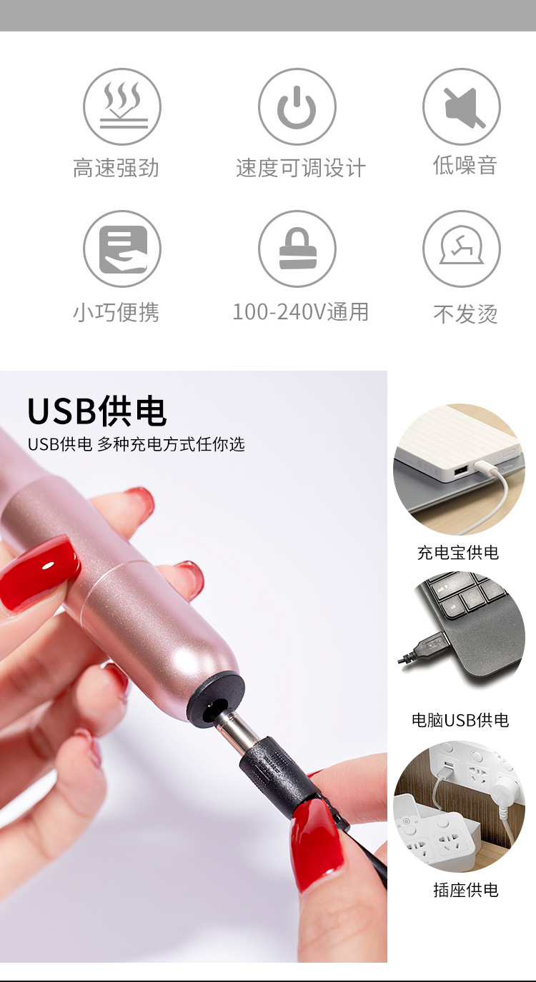 美甲打磨机专业电动机器充电小型便携笔式修卸指甲神器美甲店专用