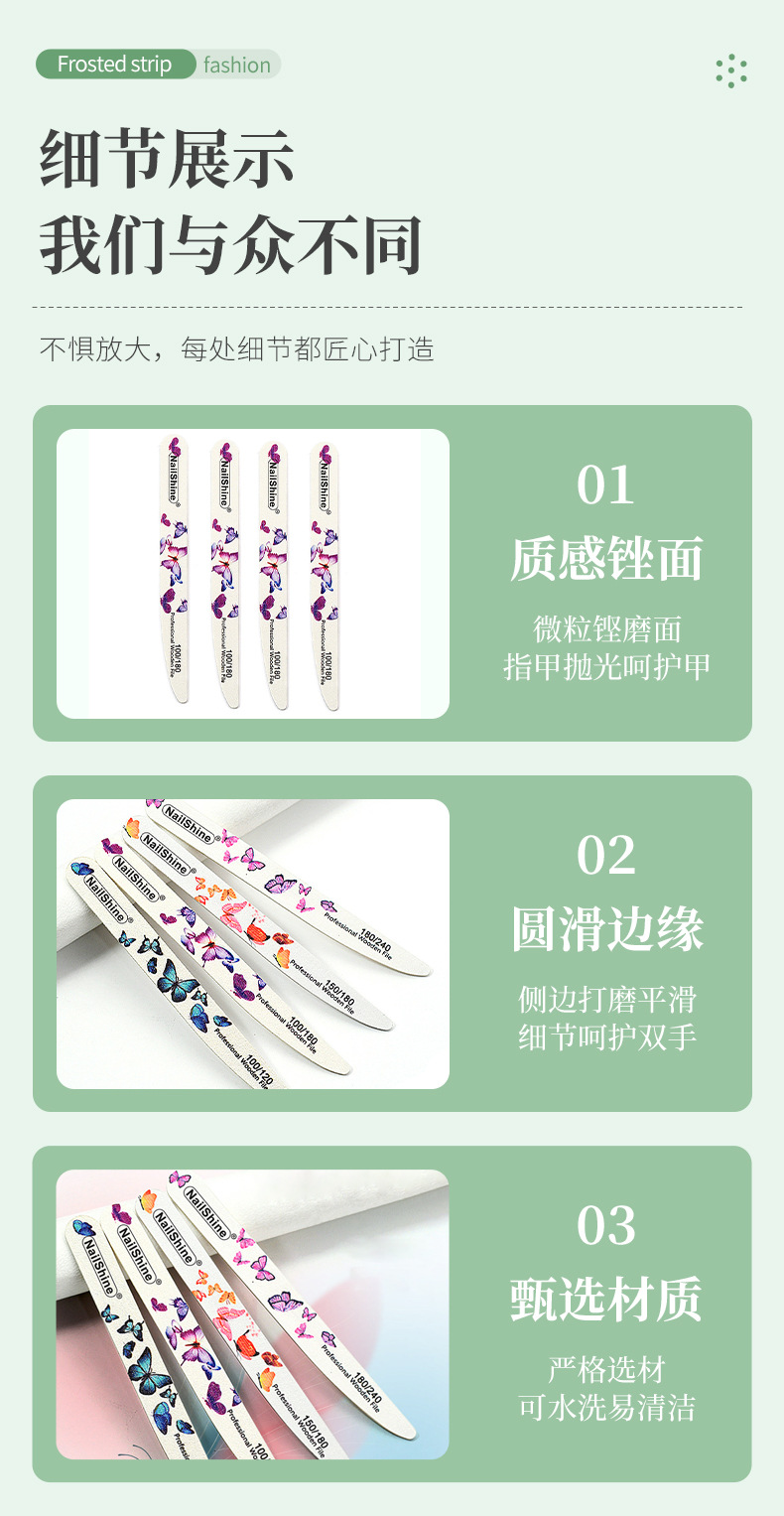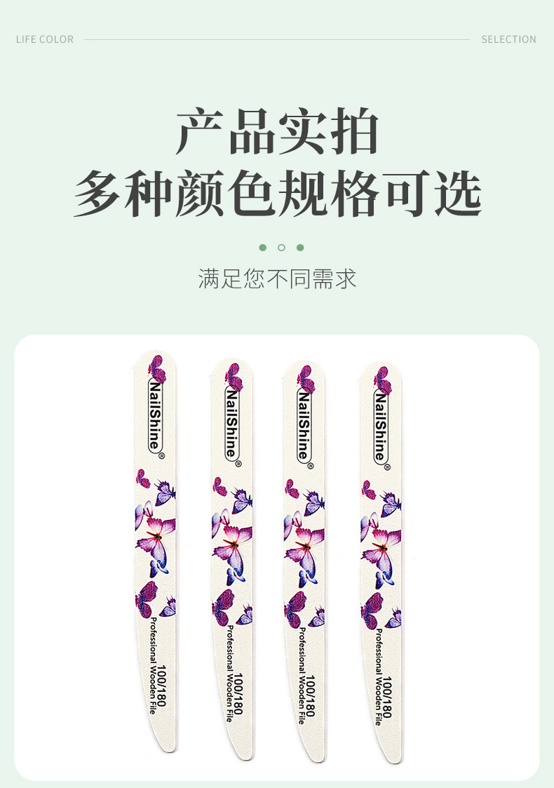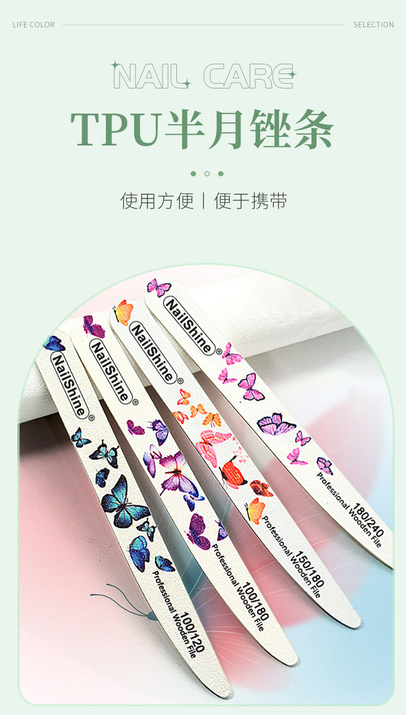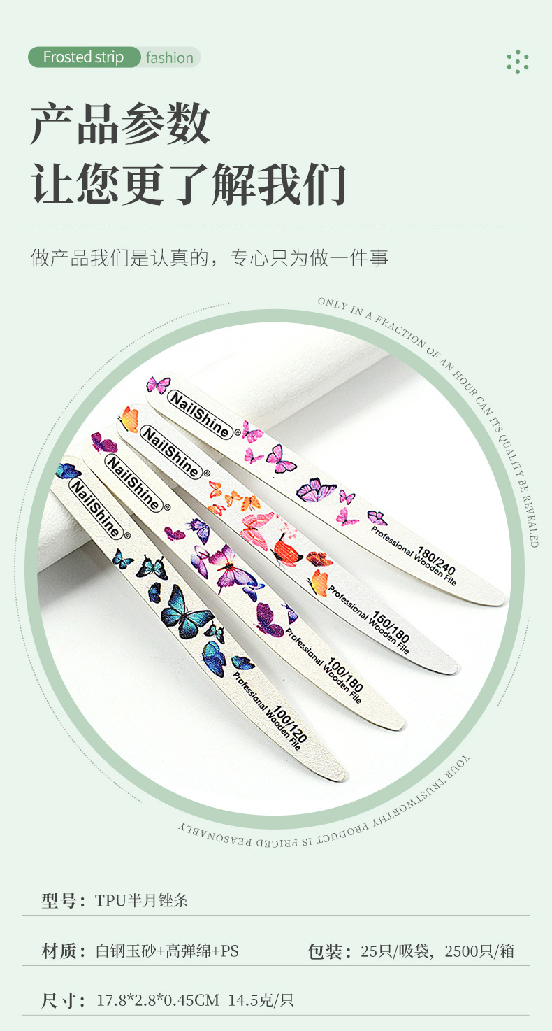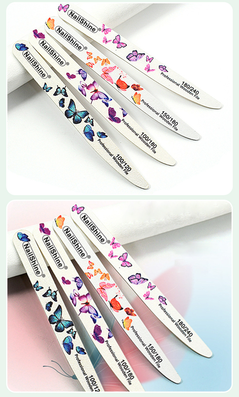 跨境现货蝴蝶刀型木片指甲锉薄款美甲打磨条修真甲双面修修型条
