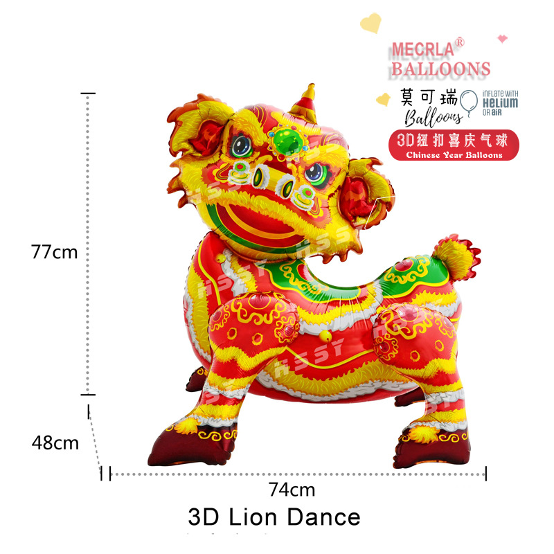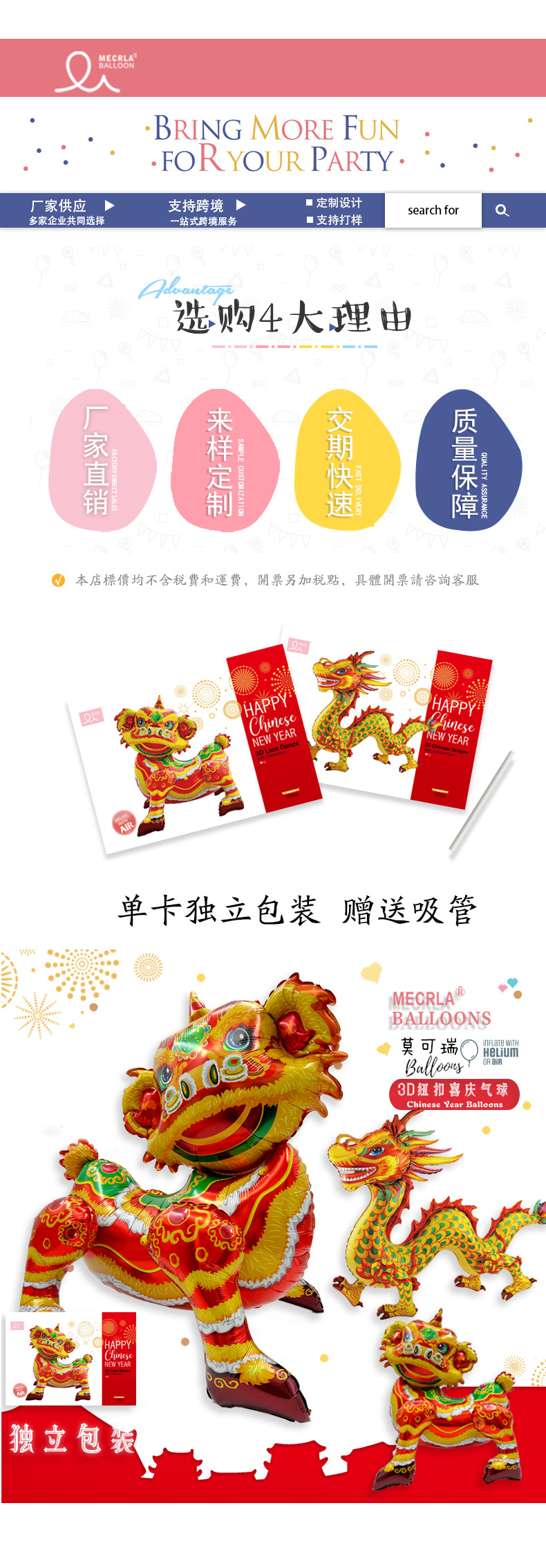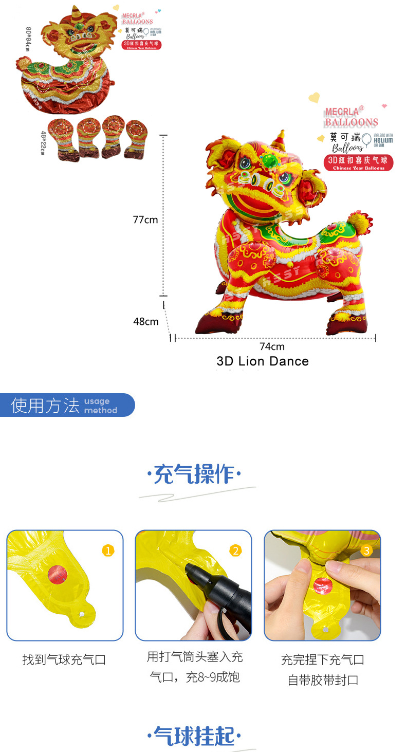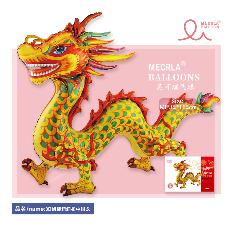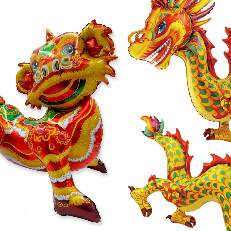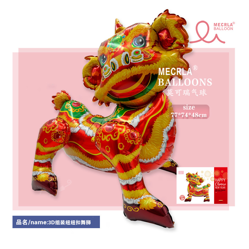 2024新年春节国潮醒狮中国龙采青开业3D纽扣组装站立铝膜气球装饰