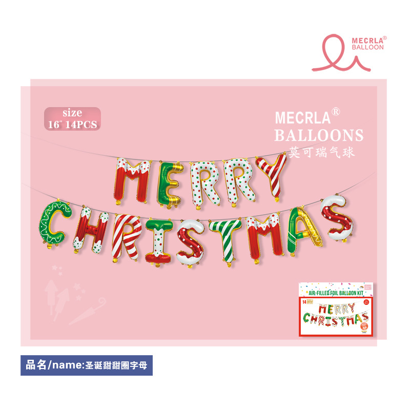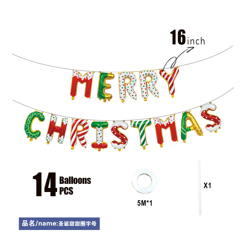 16寸英文字母套装跨境热销原创新品圣诞节快乐甜甜圈派对装饰布置