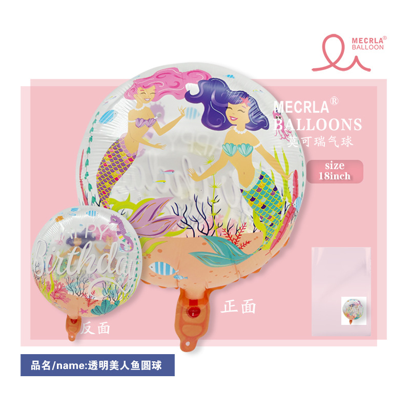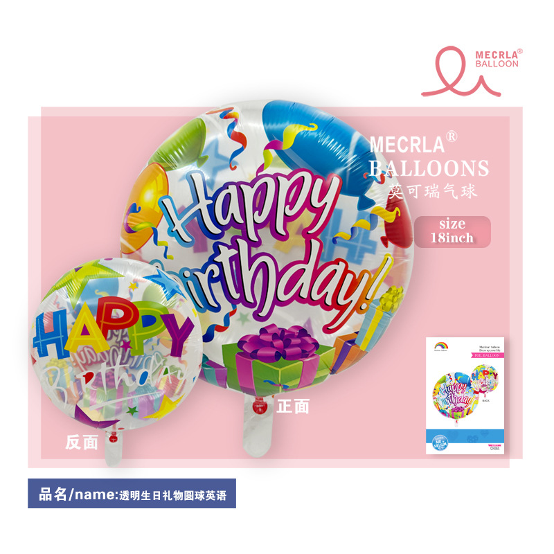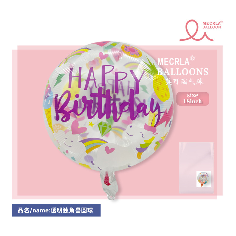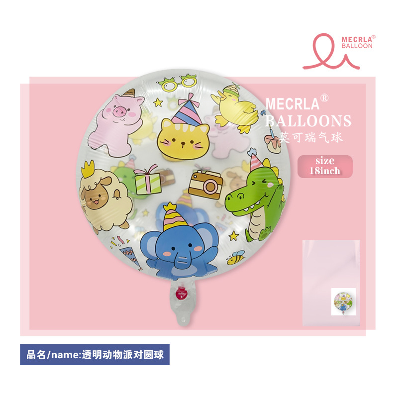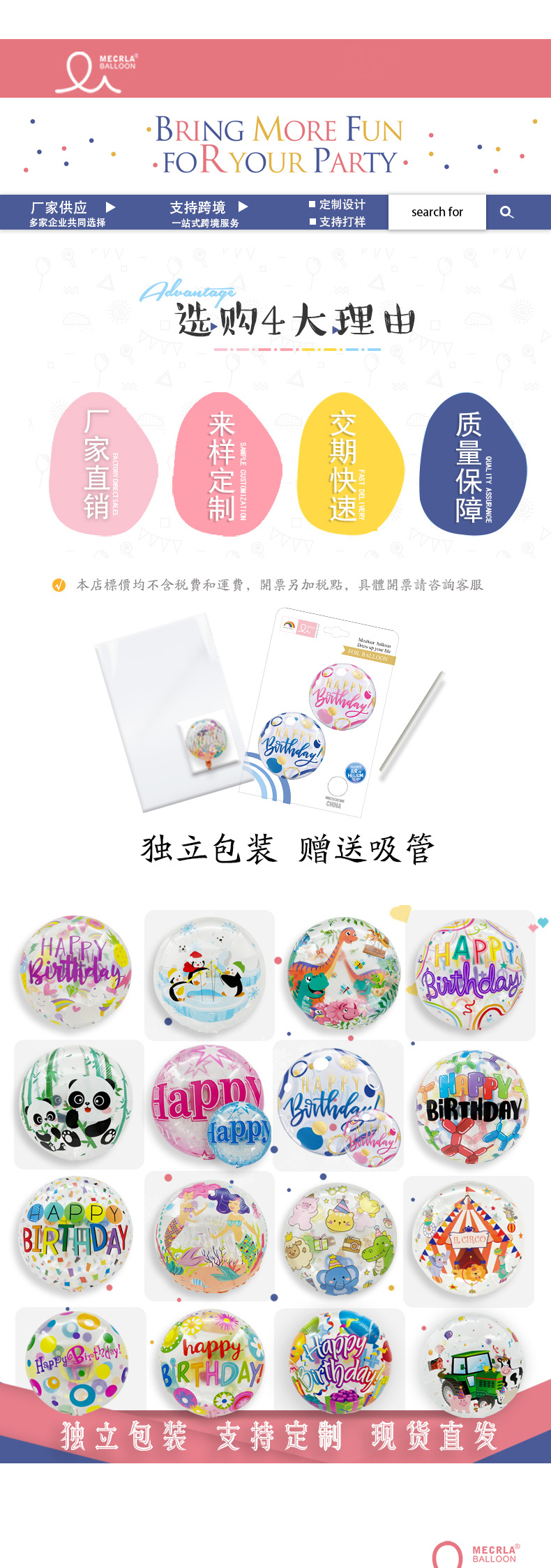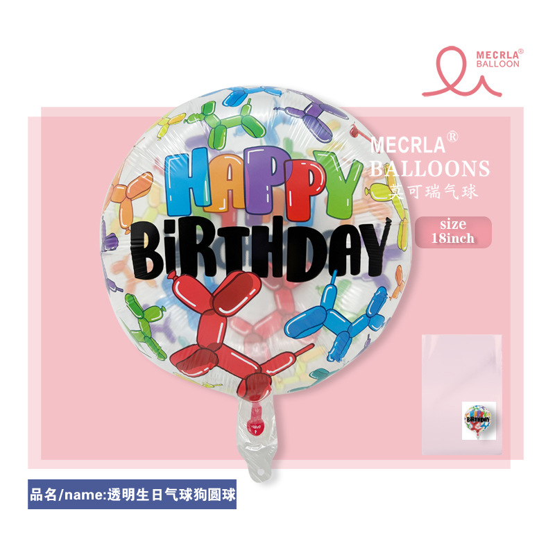 18寸透明英语西语生日快乐蛋糕美人鱼马戏团熊猫恐龙派对装饰圆球